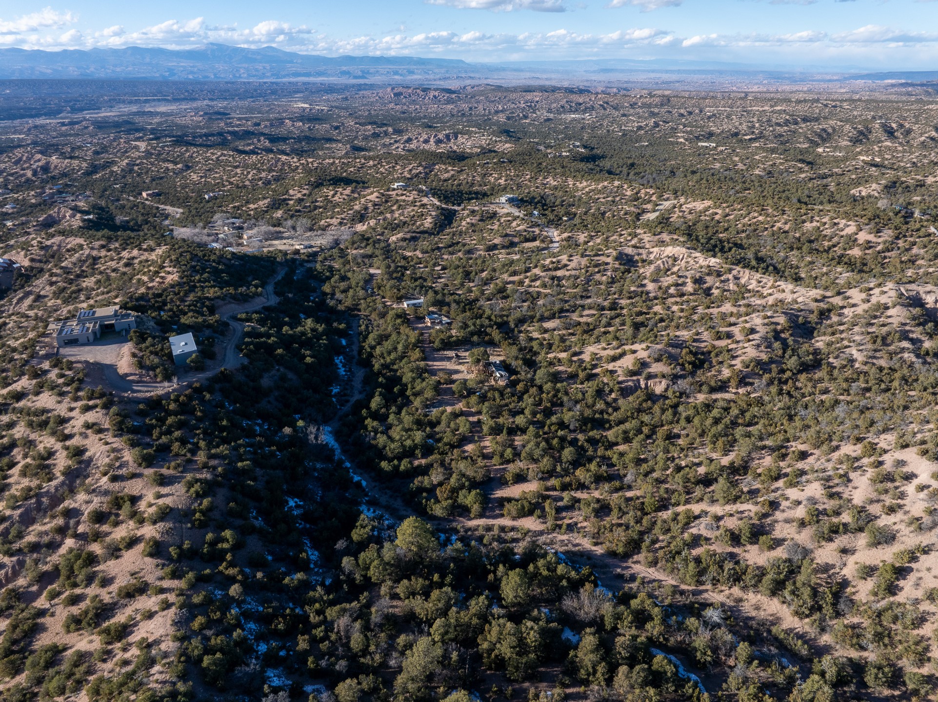 Nestled in the serene beauty of Tesuque, this remarkable property offers a unique opportunity for discerning developers. Comprising three separately deeded buildable lots, the expansive property spans a total of roughly 8.3 acres. A standout feature is the adjudicated well, which boasts 1-acre feet of pre-moratorium water rights, ensuring a valuable resource for future development. The property includes a 748-square-foot home, featuring 1 bedroom and 1 bathroom, ideal for a cozy retreat or future guest house. Positioned in the eastern hills of Tesuqe the property borders Tesuque Pueblo land, providing breathtaking views and a sense of tranquility. Whether you're looking to build your dream home or invest in a prime piece of land, this Tesuque property promises endless potential and a coveted location.