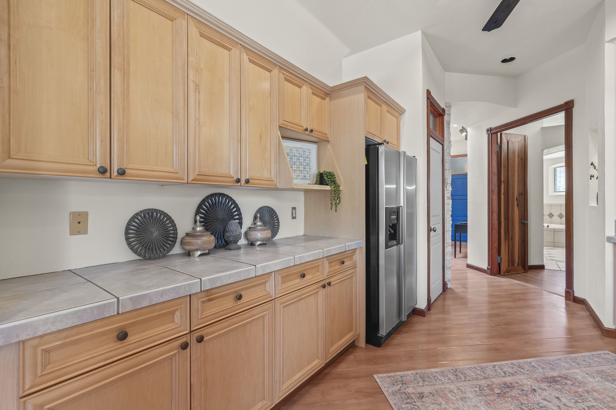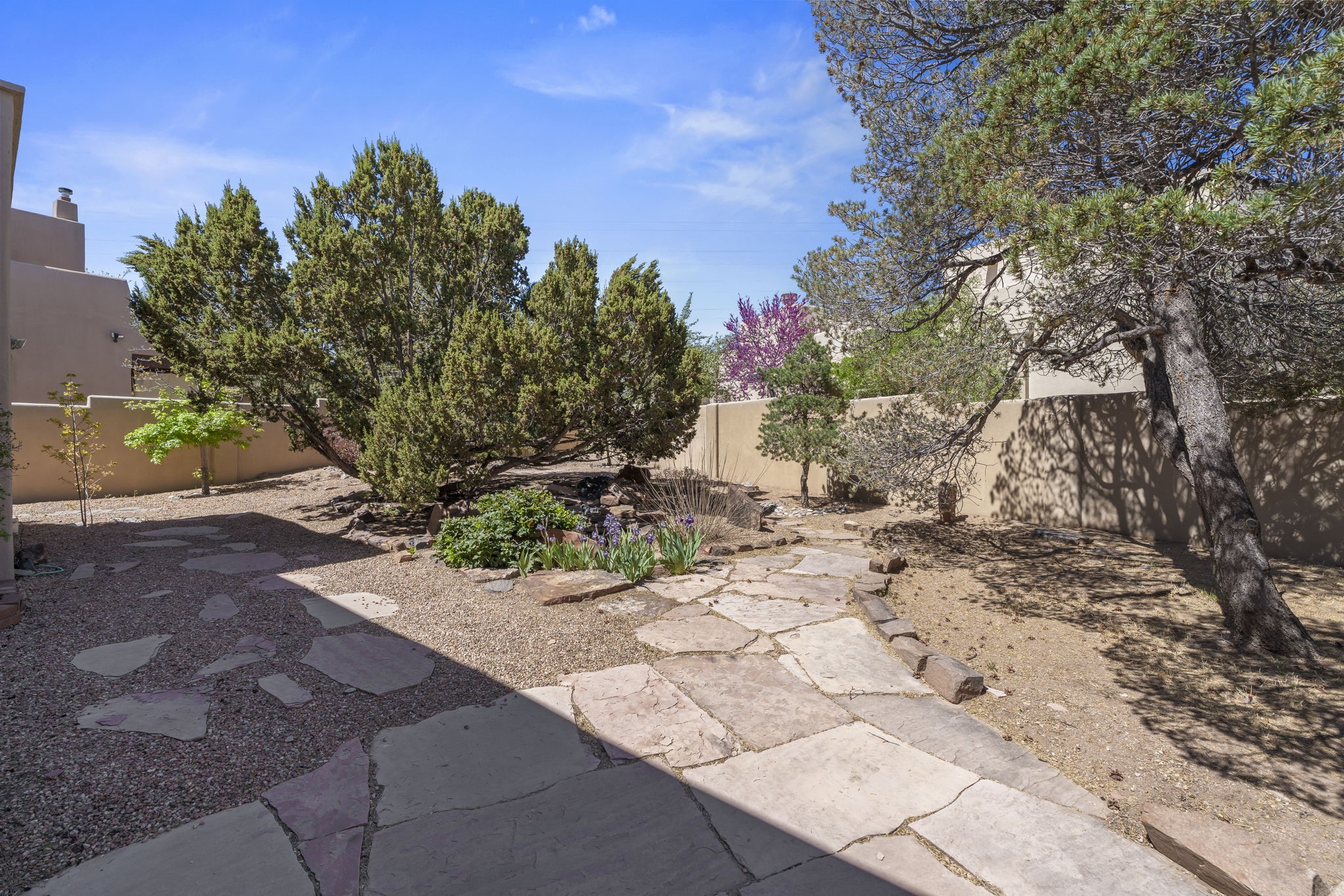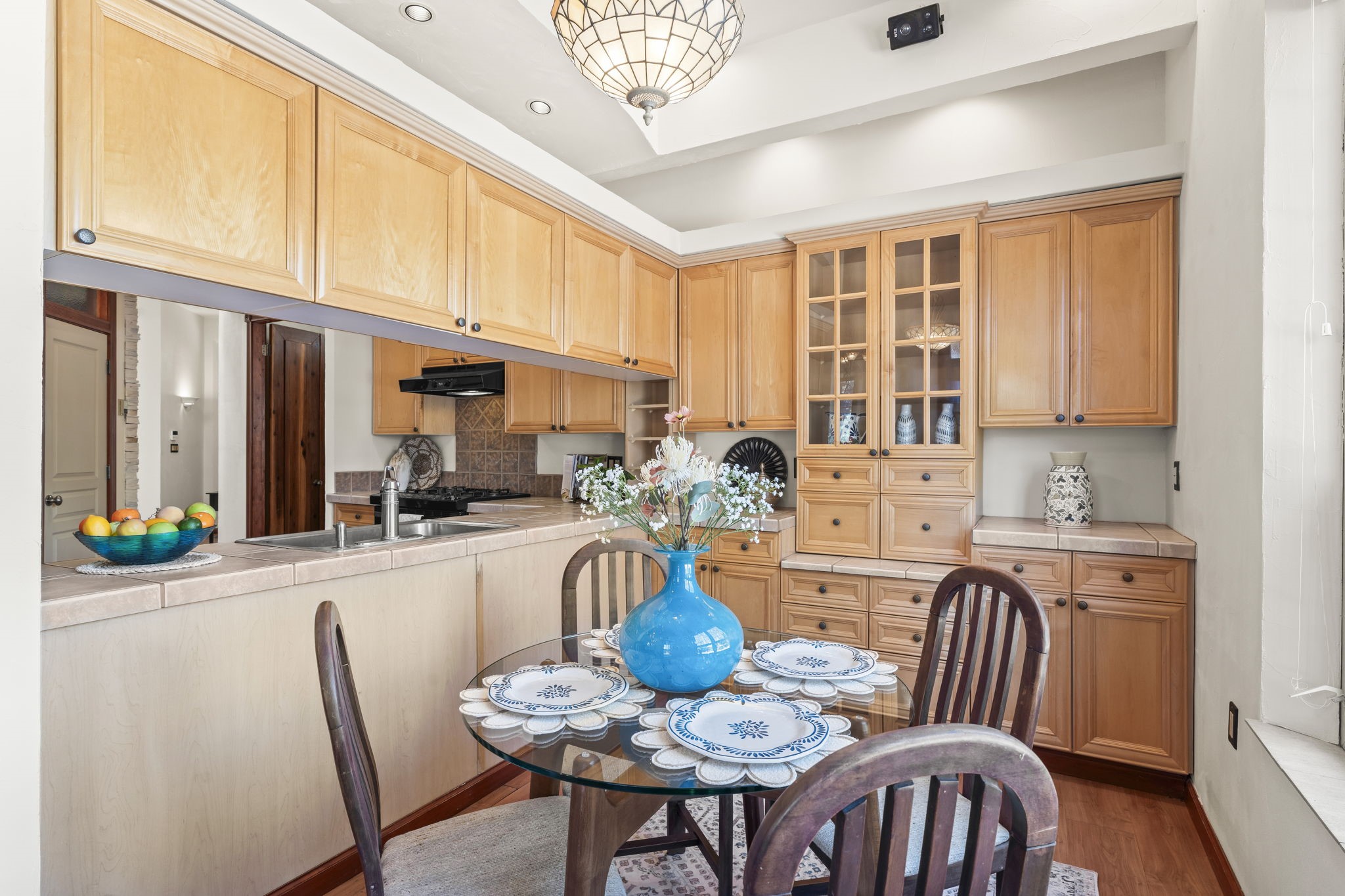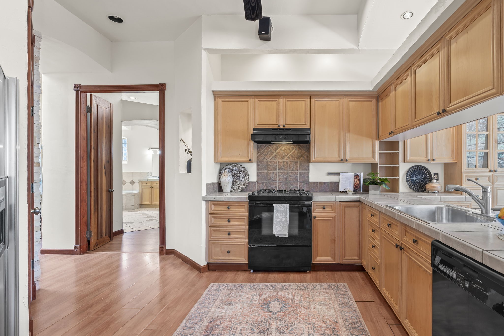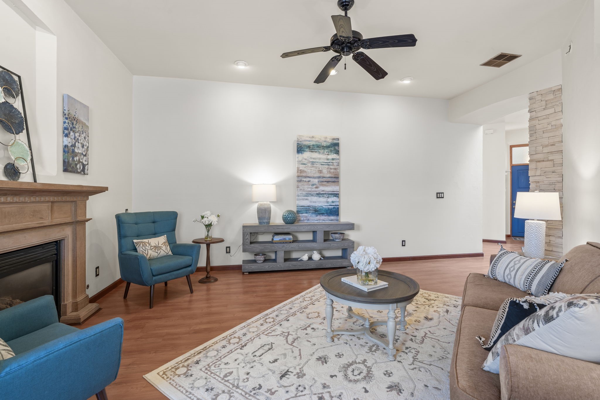 Welcome to this beautifully updated, single-story home, where comfort and style meet. With a freshly painted interior and a one-year-old roof with a ten-year warranty, this home offers peace of mind and modern elegance. The inviting floor plan features 3 spacious bedrooms, including a separate, luxurious primary suite that exudes warmth and charm. The primary bedroom boasts a stunning gas fireplace framed by a decorative rock wall, creating a cozy ambiance. Custom French doors lead to the tranquil retreat, while the expansive bath offers double sinks, a separate shower, a large triangular tub, and an organized, spacious closet.The heart of the home is its thoughtfully designed kitchen, equipped with updated features, instant hot water, ample cabinetry, and a generous pantry. The adjoining breakfast area showcases a beautiful built-in sideboard and China cupboard, with a door that opens to a large flagstone patio, perfect for outdoor entertaining in your private, landscaped, enclosed backyard with its new drip irrigation system for easy maintenance.The Living Room features a charming wooden mantle over a gas fireplace, creating a welcoming atmosphere that flows effortlessly into the dining room. Inset lighting throughout highlights the home's spacious and bright rooms. Practicality is not forgotten, with a well-appointed laundry room featuring a sink and extra shelf space. The attached two-car garage adds even more ease of living. Located on a desirable corner lot, this home offers style and functionality, making it a perfect haven for relaxation and entertainment. With an inviting layout, ample storage, and quality finishes, it's a must-see!