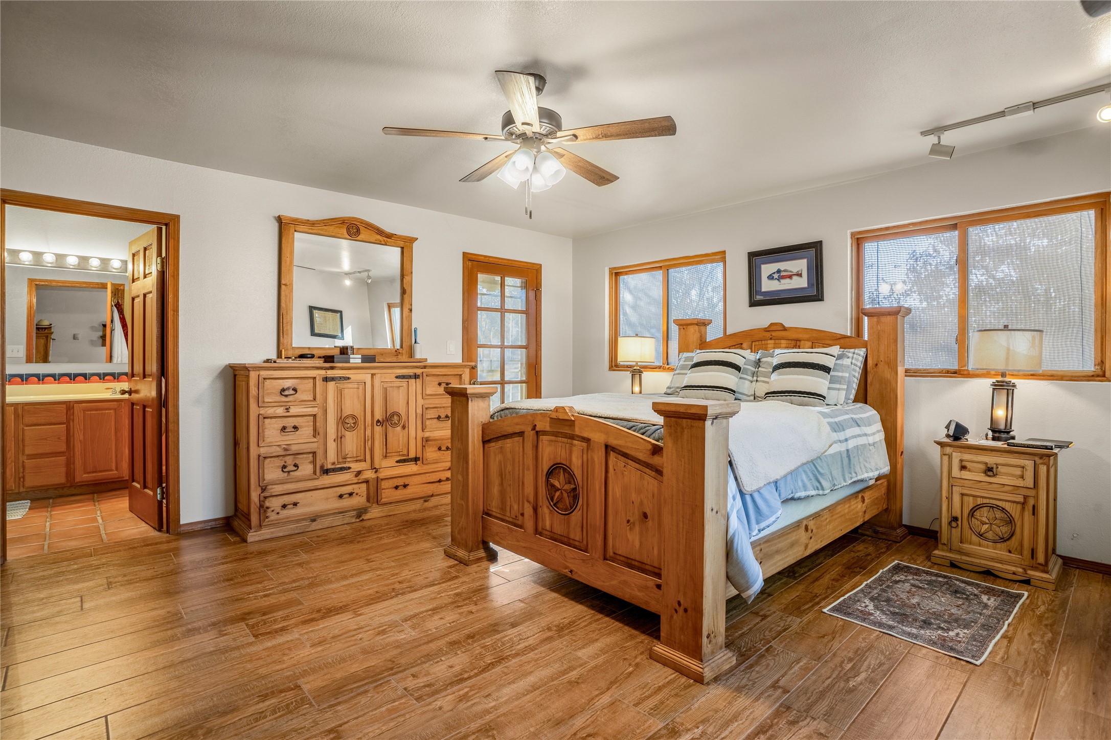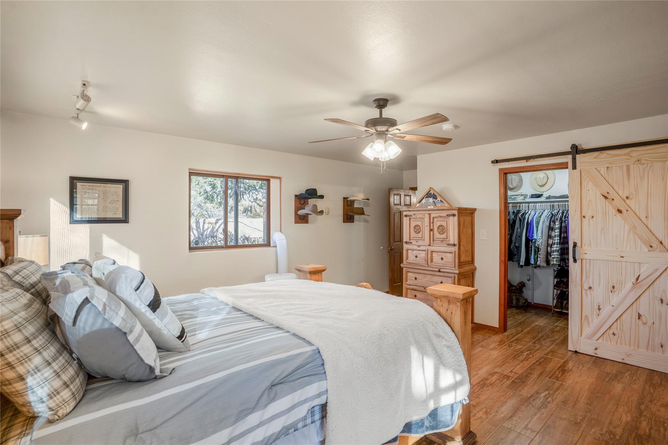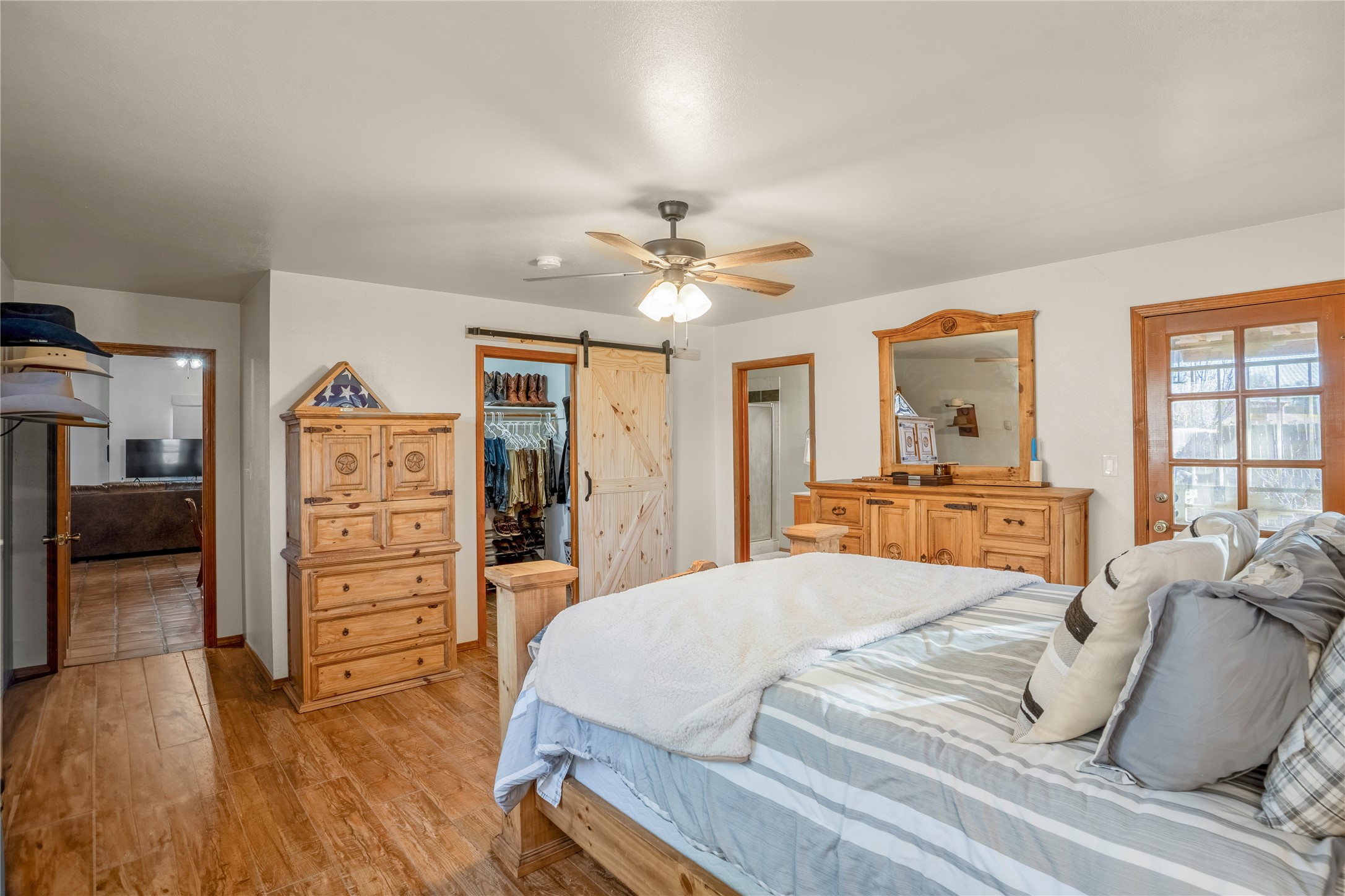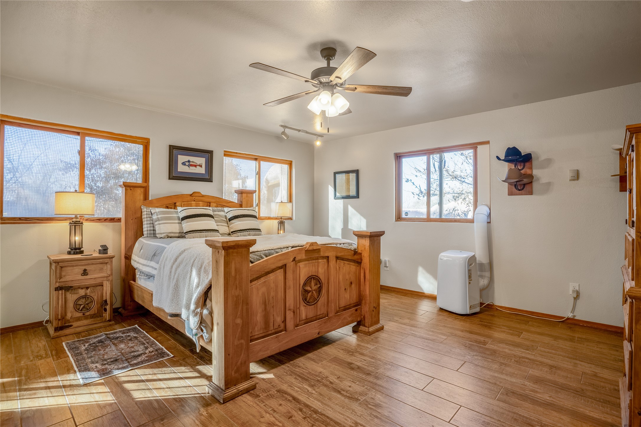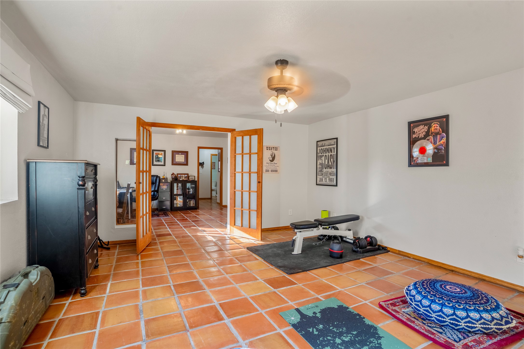 *Price Improvement* This charming New Mexico pueblo-style home is nestled on a private 0.75-acre setting at the end of a quiet, tree-lined private drive in La Mesilla. A stunning curved privacy wall surrounds the property, leading to a beautifully landscaped courtyard with established trees, flower beds, a lawn, drip irrigation, sprinklers, and even a small water featrure--perfect for relaxation and outdoor enjoyment. The home's spacious fenced backyard features, a gazebo, a back porch, and shade trees, ideal for entertaining or unwinding. Inside, the airy and bright open-concept layout boasts tall rustic beams, high ceilings, built-in bookshelves, saltillo tile, and wood grain ceramic flooring throughout. The living room, anchored by a wood-burning kiva fireplace with banco seating, flows seamlessly into the dining area and fully equipped kitchen, featuring stainless steel appliances, granite countertops, and a large pantry. The layout offers excellent bedroom separation, with the inviting primary suite on one side and two guest bedrooms, a spacious office, and a full bathroom on the other. Additional highlights include a large laundry room with cabinetry, an oversized two-car garage with ample storage, and surface water rights through the La Mesilla Community Ditch. Conveniently located approximately 25 miles from the Los Alamos and Santa Fe, this home offers peaceful rural living with modern amenities. Come experience the tranquility and beauty of this exceptional property!