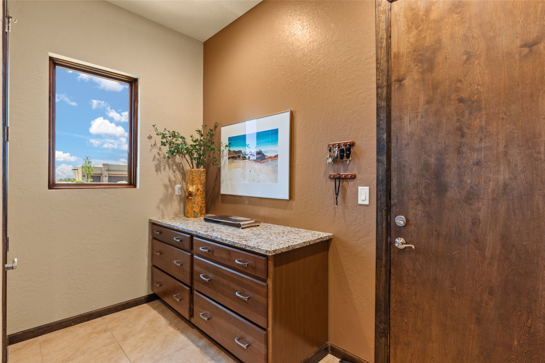 This immaculate, semi-custom Las Campanas home offers a wonderful blend of privacy, space, and mountain views. Set on a desirable corner lot, the outdoor living spaces are superb. Beautifully landscaped brick and stone areas flow from the interior for seamless al fresco living. Thoughtfully designed, this home balances traditional Santa Fe elements with a contemporary finish. A welcoming courtyard sets the tone and leads to a spacious floor plan ideal for relaxation, entertainment, or hosting out-of-town guests. The 5 bed/5 bath plan contains ample space for all aspects of life. Abundant light streams through the large east windows in the primary bedroom, great room, and sunroom. With smart-home functionality, stone walls, high arches, tray ceilings, and elegant finishes, this home stands apart. Extensive upgrades include a 5-foot linear gas fireplace with double wood mantels, a deep portal with kiva-inspired wood-burning fireplace and an integrated outdoor gas kitchen. The living room's 4 panel sliding doors enable fluid indoor-outdoor entertainment. Indulge culinary explorations in the Chef's kitchen with top-tier appliances,12x6 ft. granite island, wine cooler and walk-in pantry. The dining room easily seats 8-10 guests. The primary suite offers an oversized bedroom, spa-like soaking tub, extra-large walk-in shower, and double closet. 3 additional bedrooms surround a spacious hub perfect for hobbies, media, meditation, or workout. The casita offers flexibility as an office or serene guest quarters. 3 green belts surround the home and frame the Sangre de Cristo and Jemez mountains with sunrises and sunsets. Evergreens and xeriscaping provide year-round beauty and a forum for birdwatching in this Audubon Sanctuary neighborhood. Minutes from The Club at Las Campanas, enjoy convenient access to resort amenities in Santa Fe's only gated golf course community. *Seller has identified personal property available as a separate Bill-of-Sale for a move-in-ready transaction.