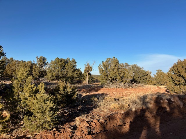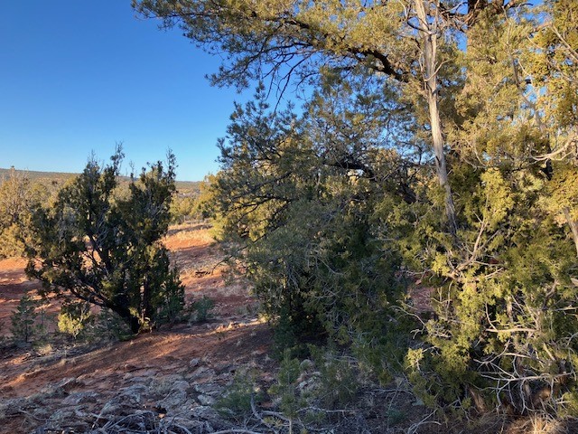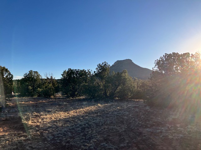 Pinon and juniper wooded acreage with no HOA or covenants, no utilities, but wonderful close up views of Starvation Peak. Good places to build. Good dirt road to property, only about a mile from the paved frontage road. Electricity is at the lot line with the neighboring property. Fenced on two sides.