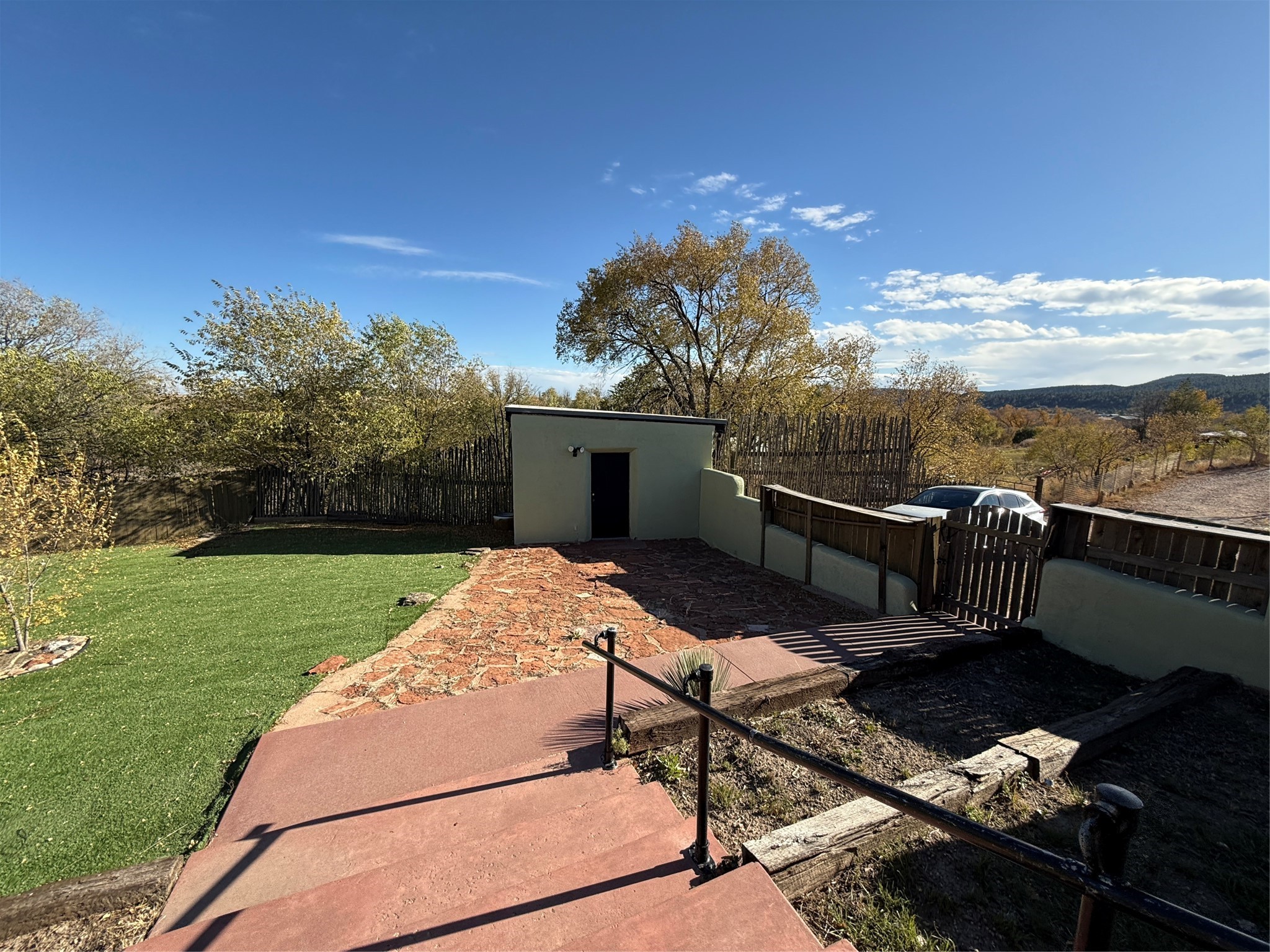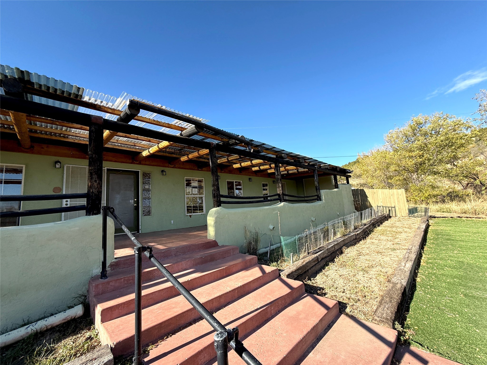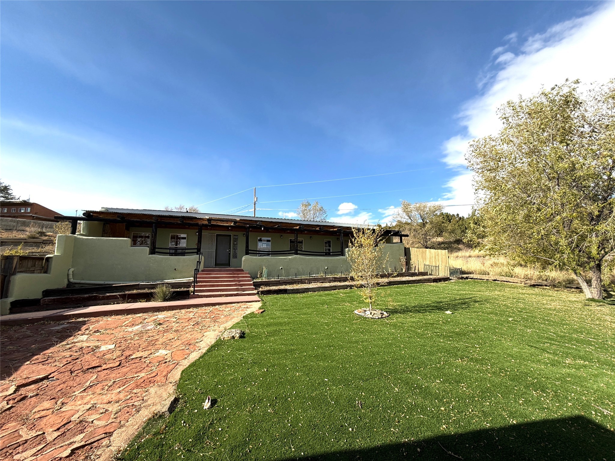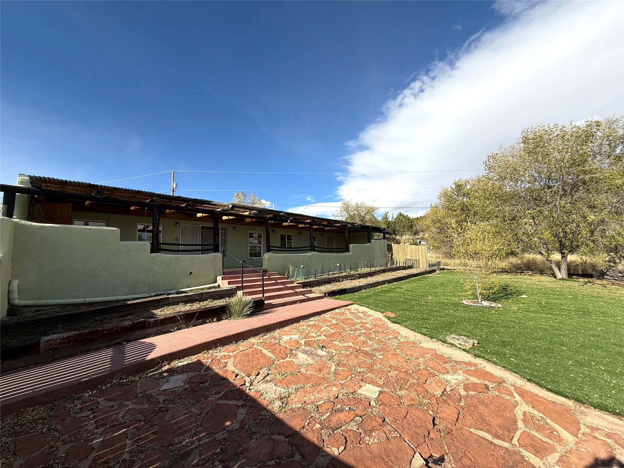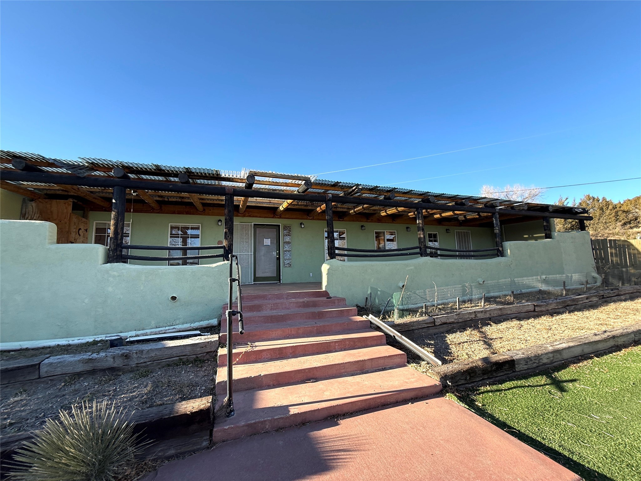 PRICE REDUCED Discover this spacious eco-friendly home built with sustainable materials, including Rastra blocks and radiant heating. The open-concept living area and kitchen are filled with natural light from numerous windows, creating a warm and inviting atmosphere. The bedrooms are thoughtfully elevated, providing a sense of separation from the living, dining, and kitchen spaces. The primary suite boasts double closets, a private entrance, and a luxurious en-suite bathroom with double sinks and a walk-in bathtub. Outside, you'll find a large covered patio, a workshop, and a detached two-car garage with ample driveway space. Located just minutes from Las Vegas, yet nestled in a peaceful rural setting, this home offers the perfect balance of convenience and tranquility.