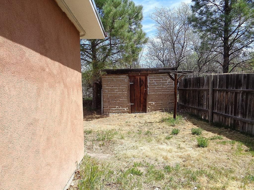 Two homes,ideally located in Velarde, NM were built in 1986. The two-story home features 2 bedrooms / 1 bath and the manufactured 3 bedrooms/2 bath. Each has a large covered porch. The main house also has a large exterior deck. Totalscreened porches and deck=1120 sq '. The property is fenced with orchard, pasture/garden area and shed with attached workshop.There are 3 additional smaller storage sheds, one metal,one adobe,(once the pumphouse)and one woodframe attached to guesthouse. The 2-stall carport/workshop is centrally located. Rio Grande is 300' away for fishing and birding.The property has Water Right bordering the Acequia.a goldmmine There are two 250 gallon propane tanks owned. propane heat and wood stove. LOCATED 1/2 WAY-30 min. between Santa Fe and Taos and 10 min to Commercial Ctr. at Espanola. The manufactured has cathedral ceilings, while the guesthouse has 360 view of the mesas and massive rivertrees with its 360 surround windows.