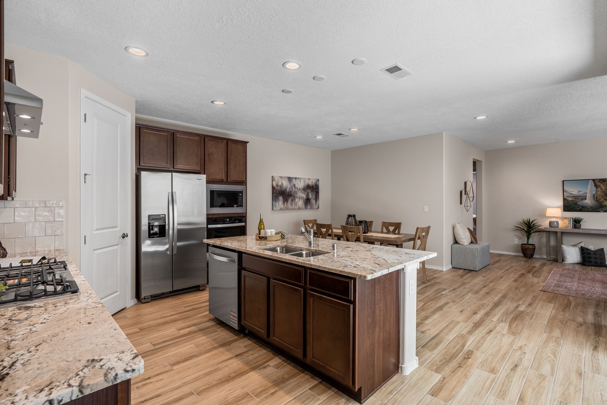 Ready July 2025! Step into this beautiful single-story home featuring a modern open-concept layout perfect for today's lifestyle. The heart of the home is an expansive kitchen with a huge island, ideal for cooking, entertaining, and gathering. The luxury owner's bath offers a spa-like retreat, complete with premium finishes. With 2 spacious bedrooms and a versatile open space, this home provides ample room for both relaxation and productivity. Enjoy seamless indoor/outdoor living on the large patio, perfect for entertaining or unwinding. The full 2-car garage offers plenty of space for vehicles and storage. This home is a true gem, and you won't want to miss it!