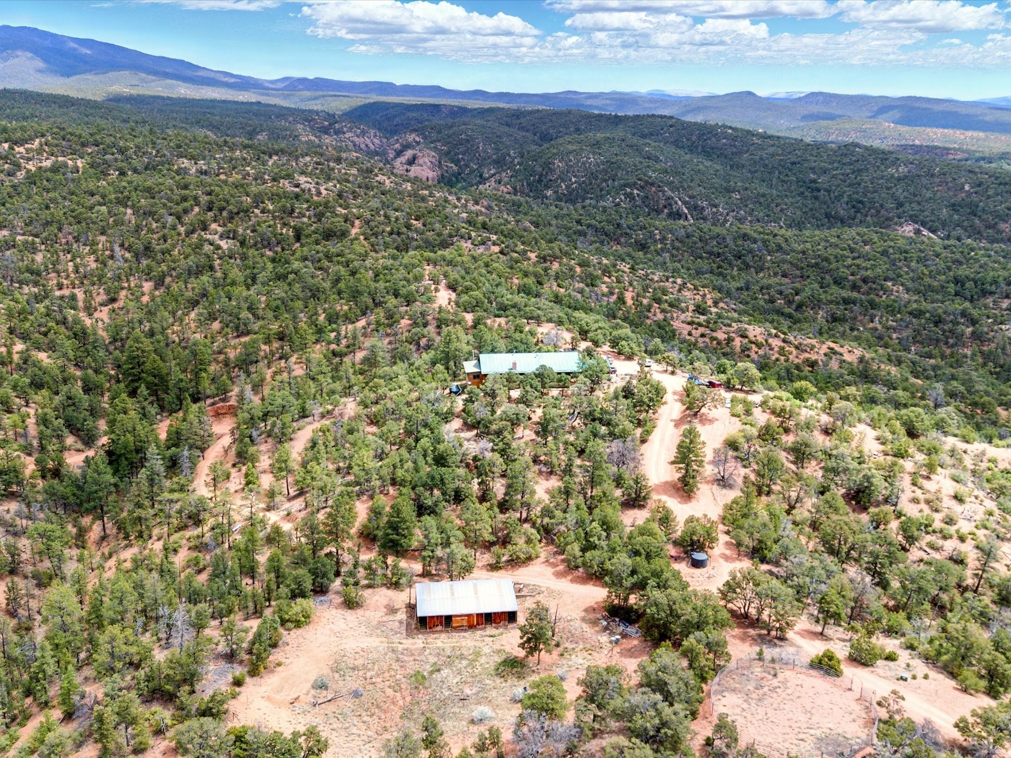 Escape to a 2-bed, 2-bath, 25-acre horse-ready retreat with forest access, rustic charm, and serene mountain views.Tucked away in the high mountains just minutes from Santa Fe, this private 25-acre retreat offers the perfect blend of rustic charm and Southwestern style. With direct access to national forest land, it's a rare opportunity for outdoor enthusiasts and horse lovers alike.The home features Saltillo tile floors, warm wood accents, and a cozy cabin feel, blending seamlessly with its natural surroundings. Equestrian-ready, the property includes a 4-stall stable with water and electric, plus a round pen--all set within expansive, usable land.Enjoy true serenity with no HOA, big skies, and endless trails, all within easy reach of town.