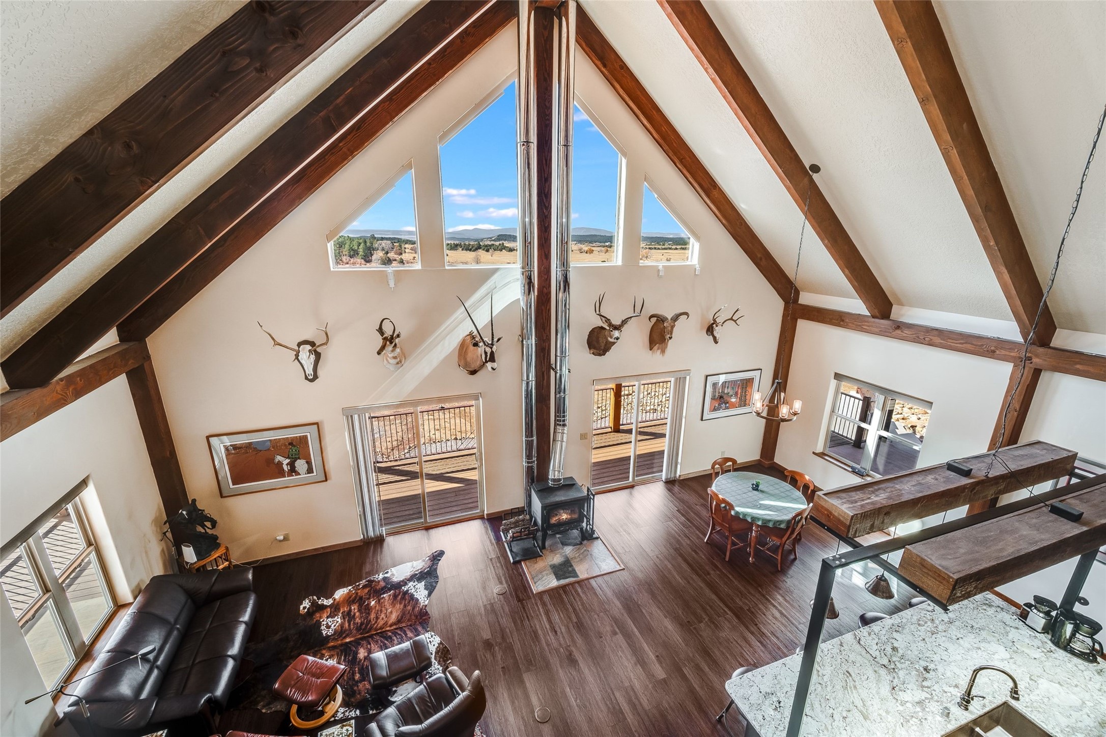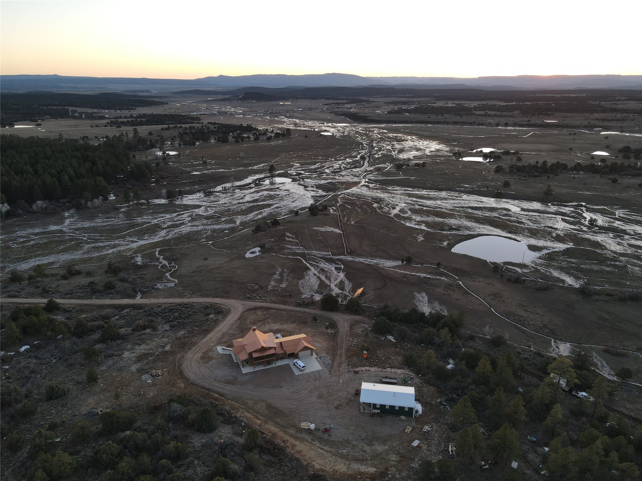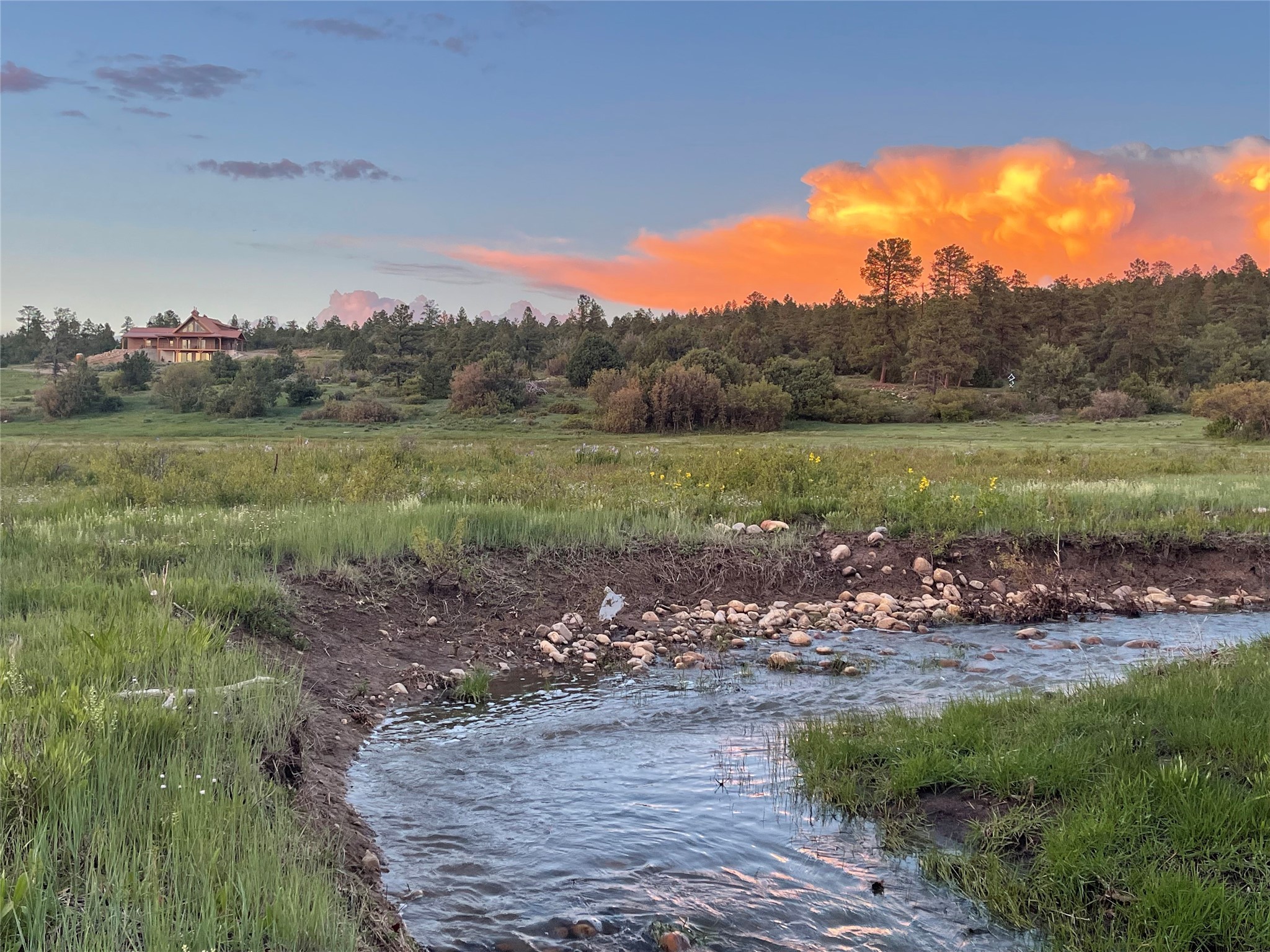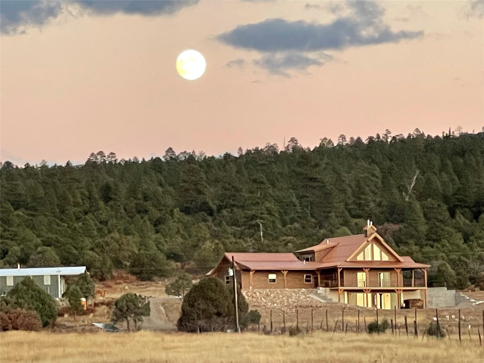 Beautiful 3360 sqft custom mountain home on 143 acres boarding the Carson National Forest with 110 acres of ponderosa, pinion, juniper and oak and 33 acres of pasture, 23 acres of which have senior water rights. The property comes with an elk tag and a landowner deer tag can be purchased over the counter. This unique property could be a horse property, a micro ranch and an outdoor sport paradise. It is 30 minutes from five fishing and recreational lakes and provides instant access to hiking, hunting, snowmobiling and cross-country skiing. Wildlife abounds with mule deer and elk, and turkeys and eagles. The house was built in 2022 of structurally insulated panels, mortise and tenon heavy timber and insulated concrete forms. The architectural spiral stairs connect the main floor, loft and finished walkout basement. There is a bedroom, bath and office in the loft. On the main floor is the great room, kitchen, master bedroom, master bath and laundry/arts and crafts room. The basement is a flexible, recreational space with a bathroom and the potential for a third bedroom. Osburn wood burning stoves in the basement and on the main floor provide abundant heat during classical winter days and nights. The bathrooms and laundry/arts and crafts room have in floor electric radiant heat. There is a utility well (not potable) with domestic water provided by 6000 gallons of rainwater collection and storage. There is an attached, 3-car finished garage with 8' tall garage doors. The porches, patios and decks on three sides of the house provide stellar views. The decks have steel railings and Trex decking. The 1200 sqft insulated Mueller building shop is loaded with 220v 30A and 40A outlets and has an equipment cover on the side. There is RV parking with electrical and sewer connections. Property is 1.5 miles from US 84, near Cebolla, NM. 25 miles to Chama, 53 miles to Espanola, about 80 miles to Santa Fe.