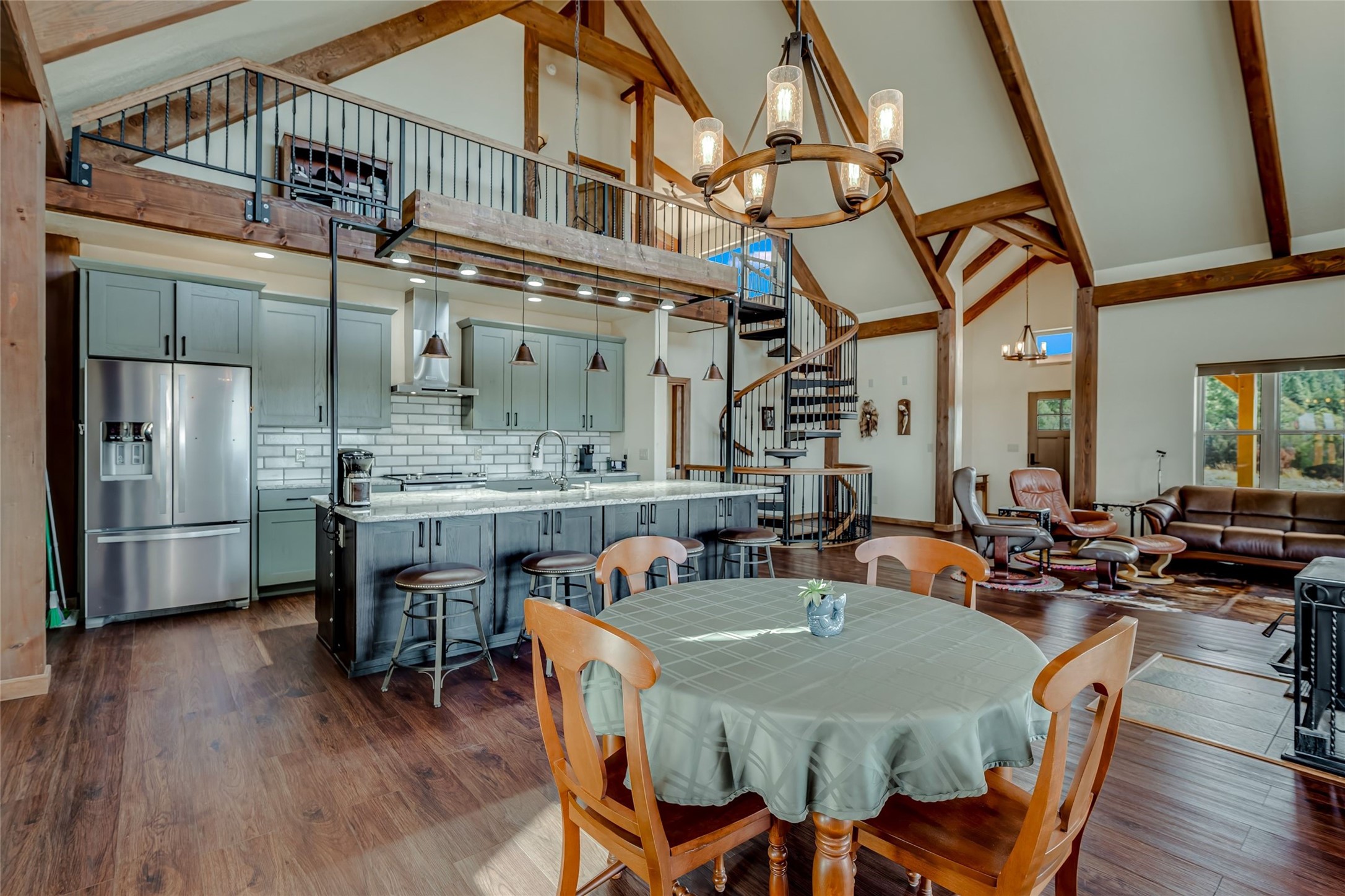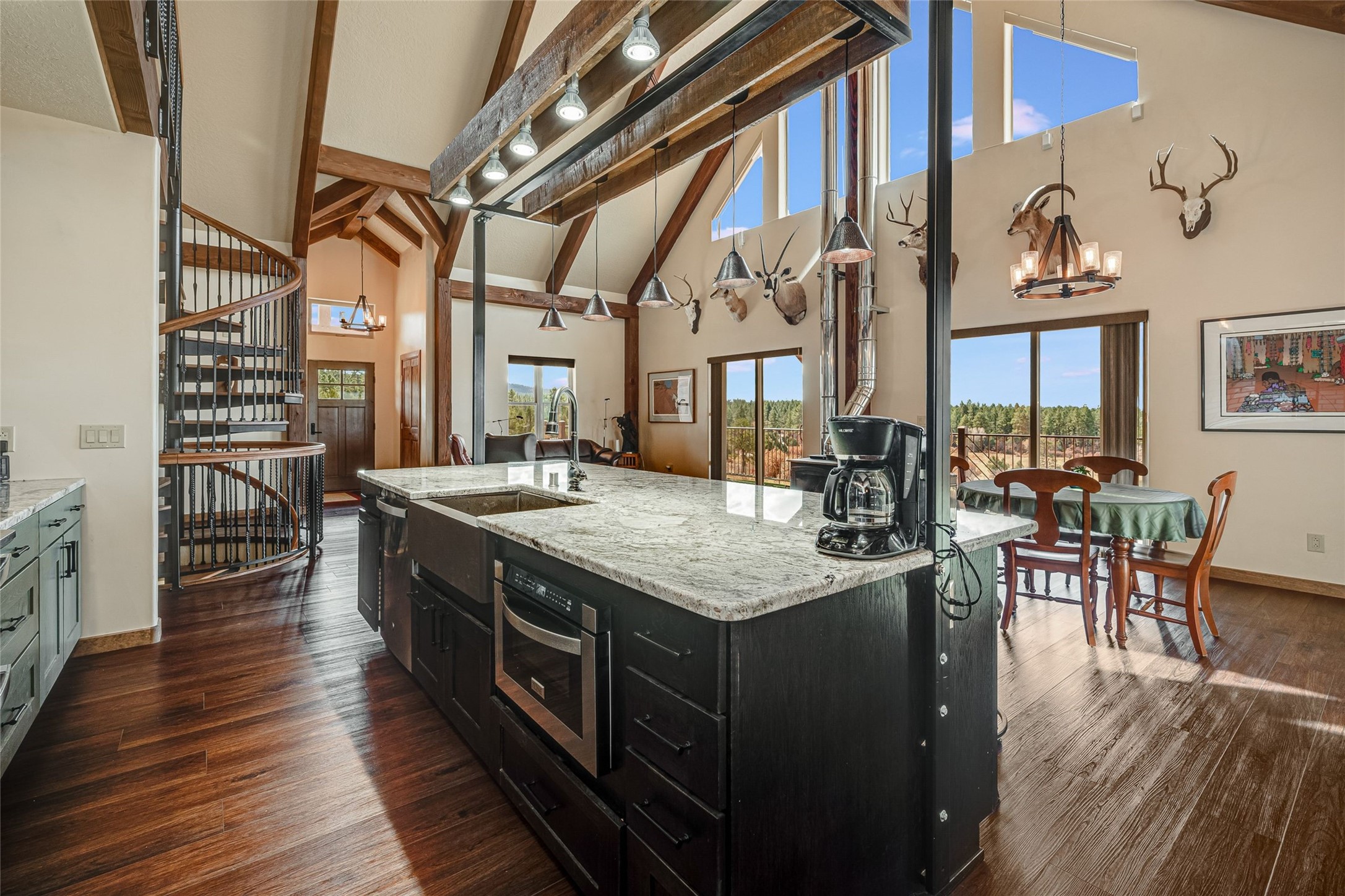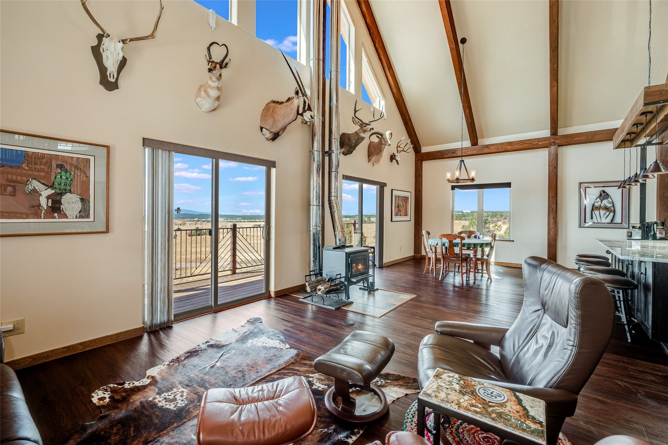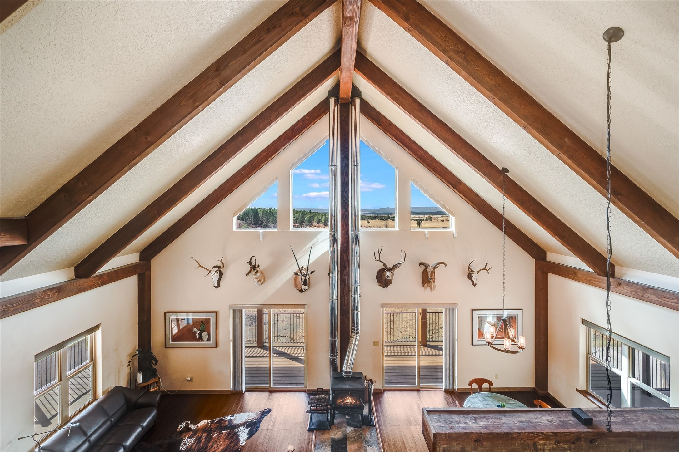 Beautiful 3360 sqft custom mountain home on 143 acres boarding the Carson National Forest with 110 acres of ponderosa, pinion, juniper and oak and 33 acres of pasture, 23 acres of which have senior water rights. The property comes with an elk tag and a landowner deer tag can be purchased over the counter. This unique property could be a horse property, a micro ranch and an outdoor sport paradise. It is 30 minutes from five fishing and recreational lakes and provides instant access to hiking, hunting, snowmobiling and cross-country skiing. Wildlife abounds with mule deer and elk, and turkeys and eagles. The house was built in 2022 of structurally insulated panels, mortise and tenon heavy timber and insulated concrete forms. The architectural spiral stairs connect the main floor, loft and finished walkout basement. There is a bedroom, bath and office in the loft. On the main floor is the great room, kitchen, master bedroom, master bath and laundry/arts and crafts room. The basement is a flexible, recreational space with a bathroom and the potential for a third bedroom. Osburn wood burning stoves in the basement and on the main floor provide abundant heat during classical winter days and nights. The bathrooms and laundry/arts and crafts room have in floor electric radiant heat. There is a utility well (not potable) with domestic water provided by 6000 gallons of rainwater collection and storage. There is an attached, 3-car finished garage with 8' tall garage doors. The porches, patios and decks on three sides of the house provide stellar views. The decks have steel railings and Trex decking. The 1200 sqft insulated Mueller building shop is loaded with 220v 30A and 40A outlets and has an equipment cover on the side. There is RV parking with electrical and sewer connections. Property is 1.5 miles from US 84, near Cebolla, NM. 25 miles to Chama, 53 miles to Espanola, about 80 miles to Santa Fe.