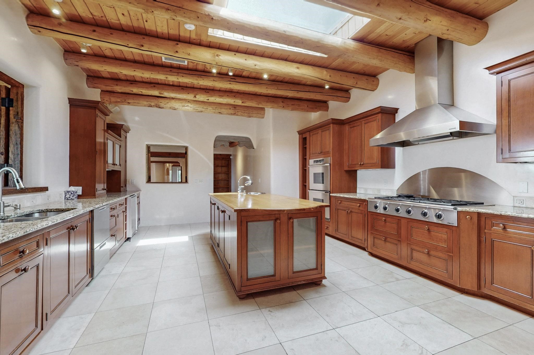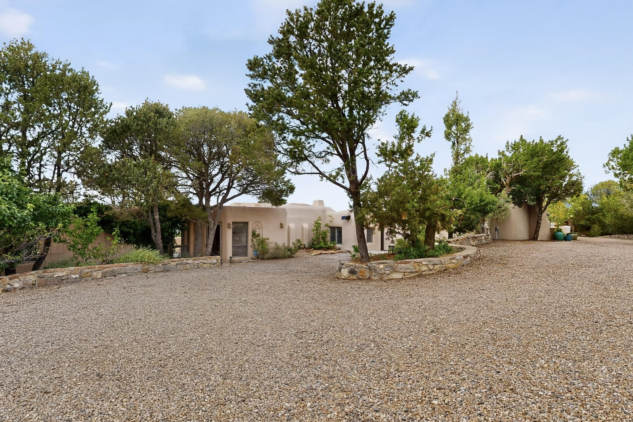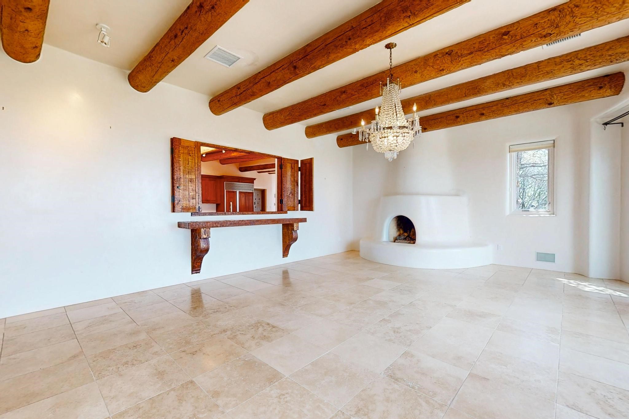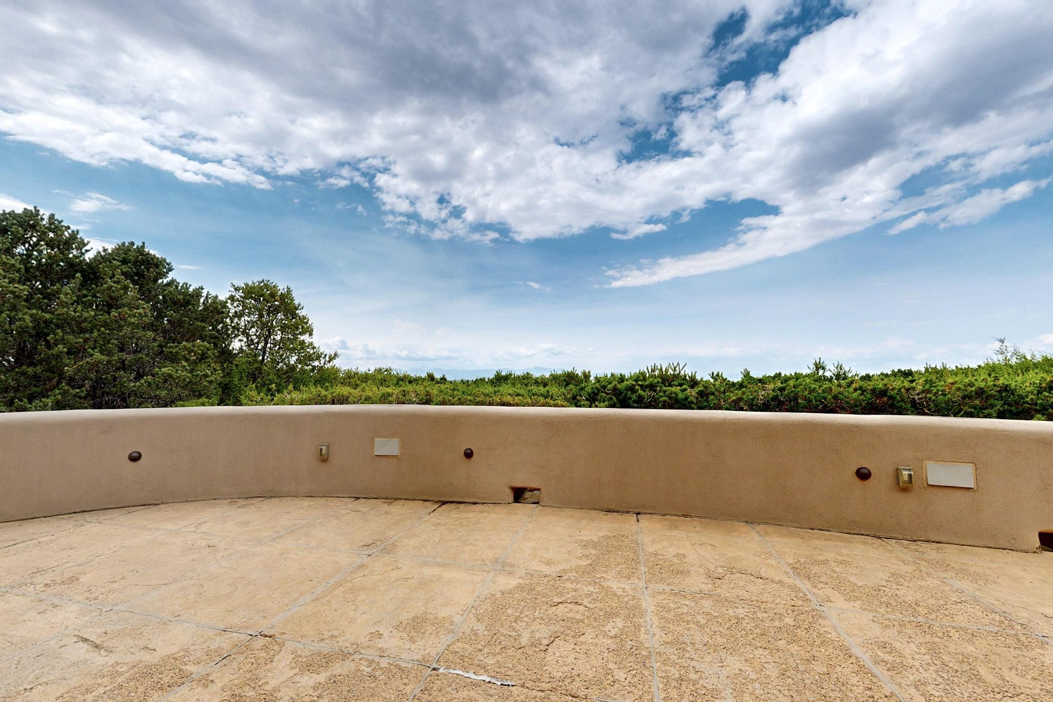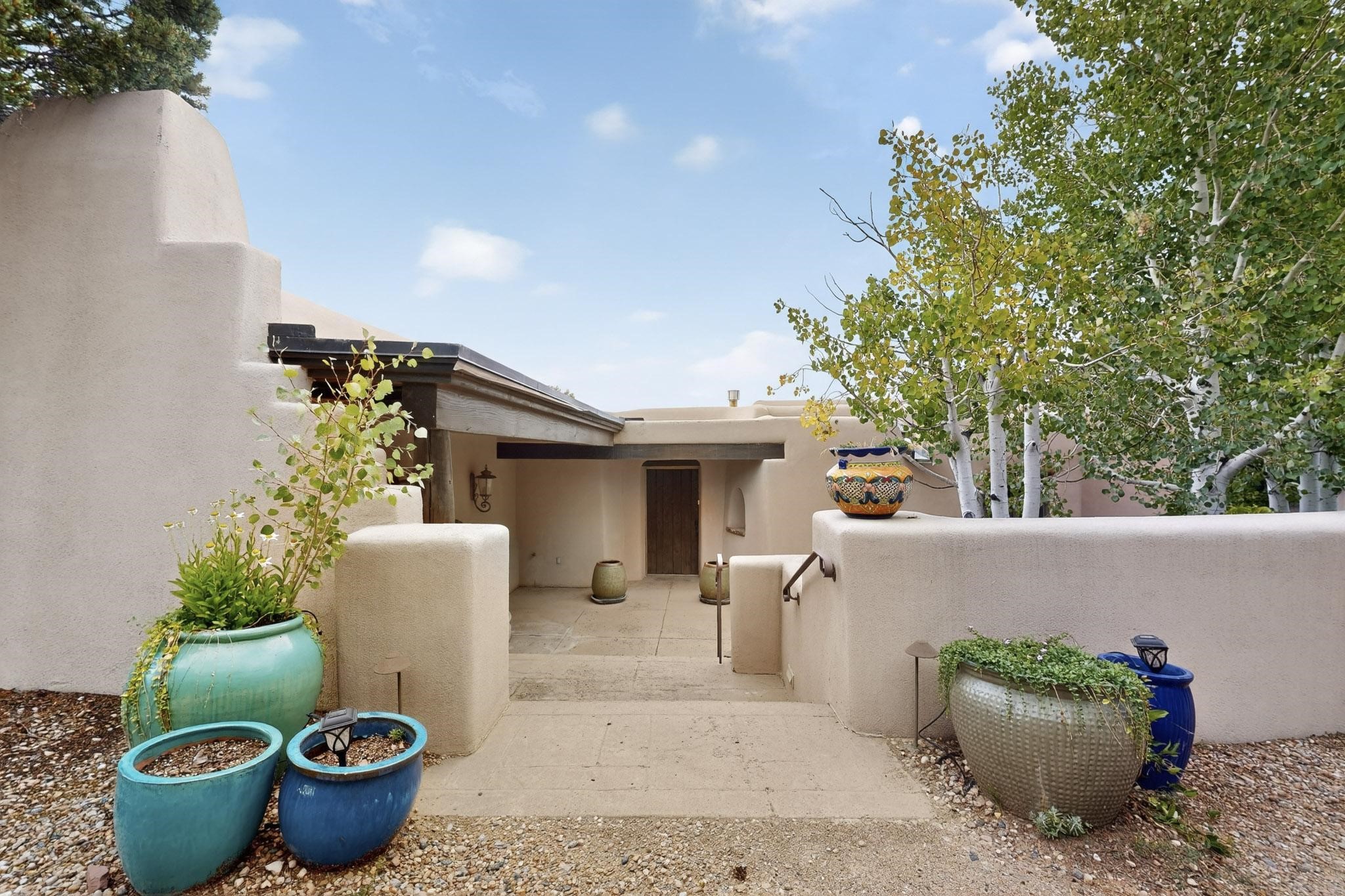 Approximately 5801 square foot main residence with an attached 1068 square foot guest house and 594 square foot studio, located on one of the best view sites on prestigious Circle Drive. Long considered to be one of the best areas in Santa Fe because of its marvelous views to the city, northern badlands, western Jemez Mountain range and the Sangre de Cristos, as well as its proximity to The Plaza and The Santa Fe Opera. Resting on 1.93 acres with a private security gate, this traditional Pueblo masterpiece is partial adobe, beautiful latillas, extensive portals, 9 fireplaces, 5 bedrooms, 5 1/2 baths and a very large formal dining room with beautiful light and views. It also features 4 garages, cherry wood cabinets in the kitchen & stainless steel appliances. This home was recently appraised for over $3.2 million. The home will require some work to bring it up to its former glory. It is being offered in its current condition at a price of $2.7M. Photos are virtually staged.