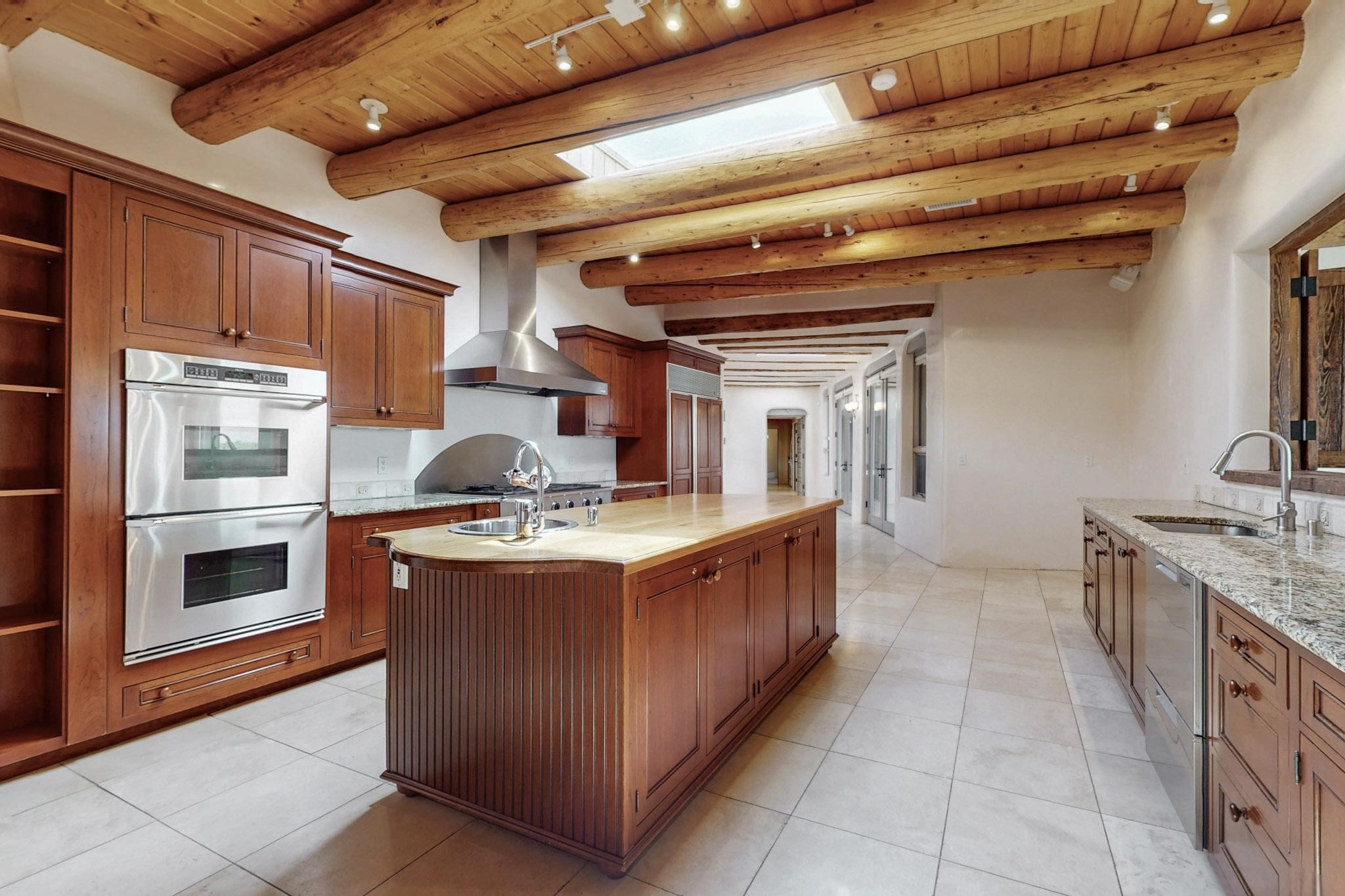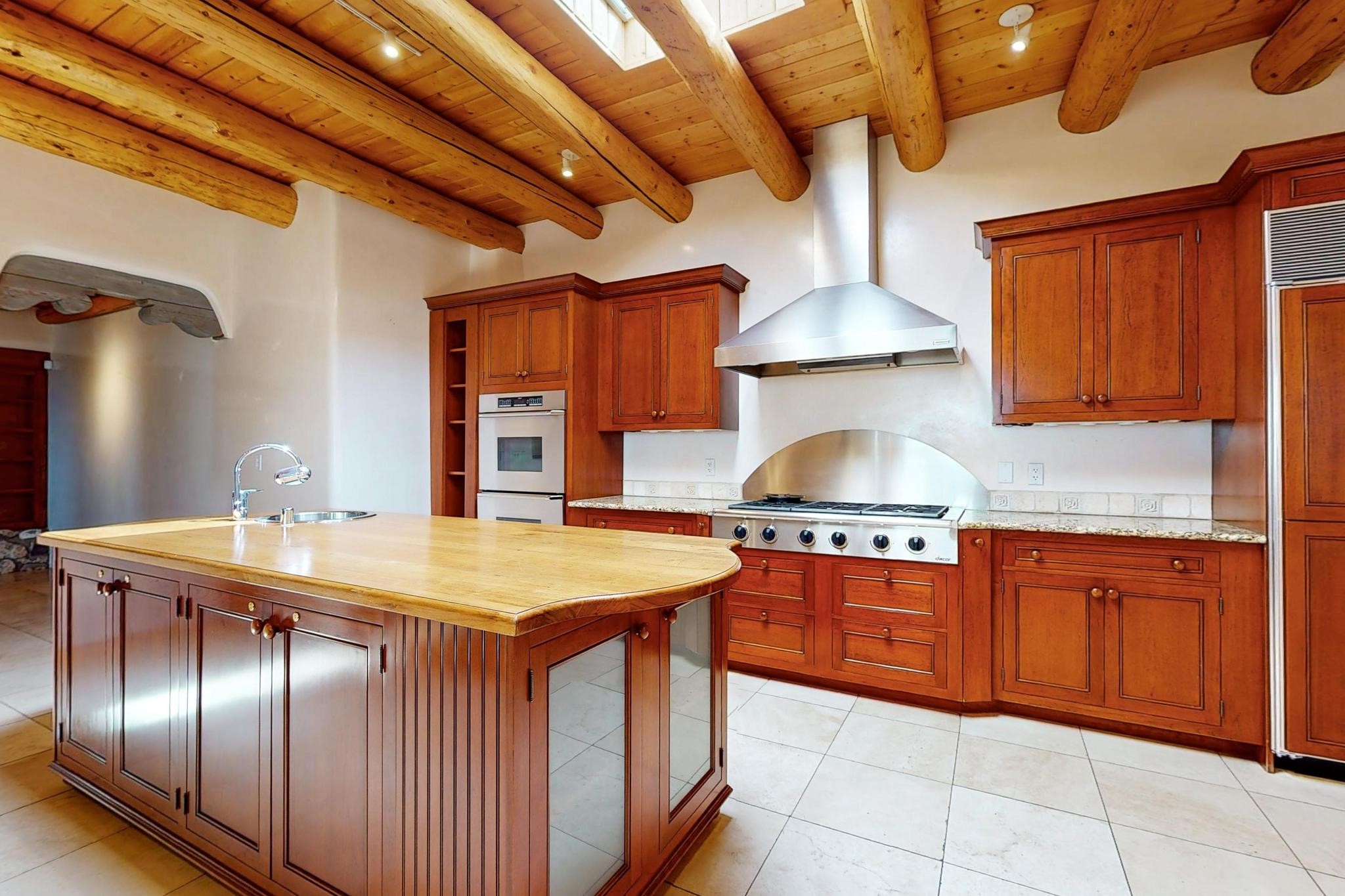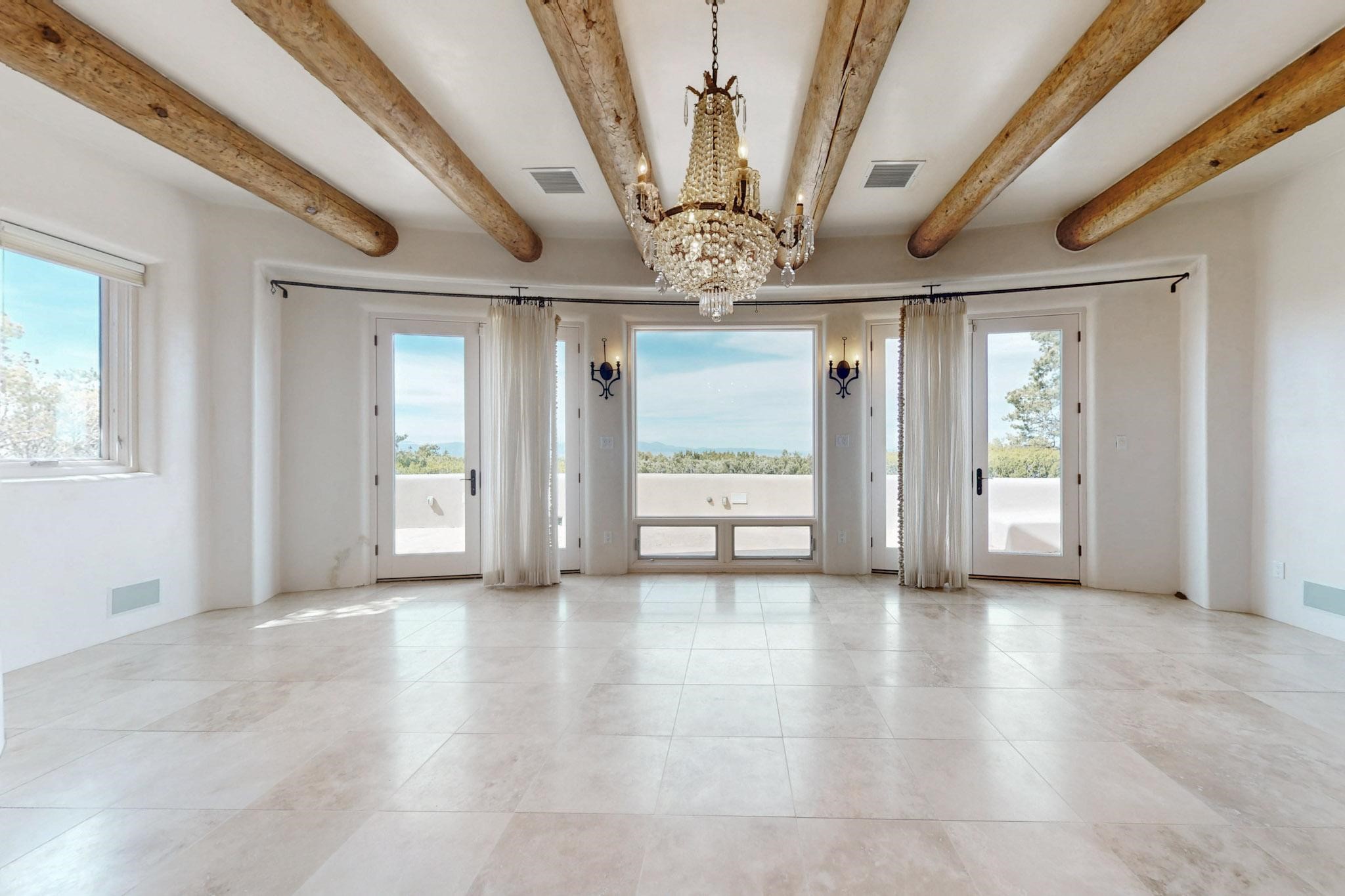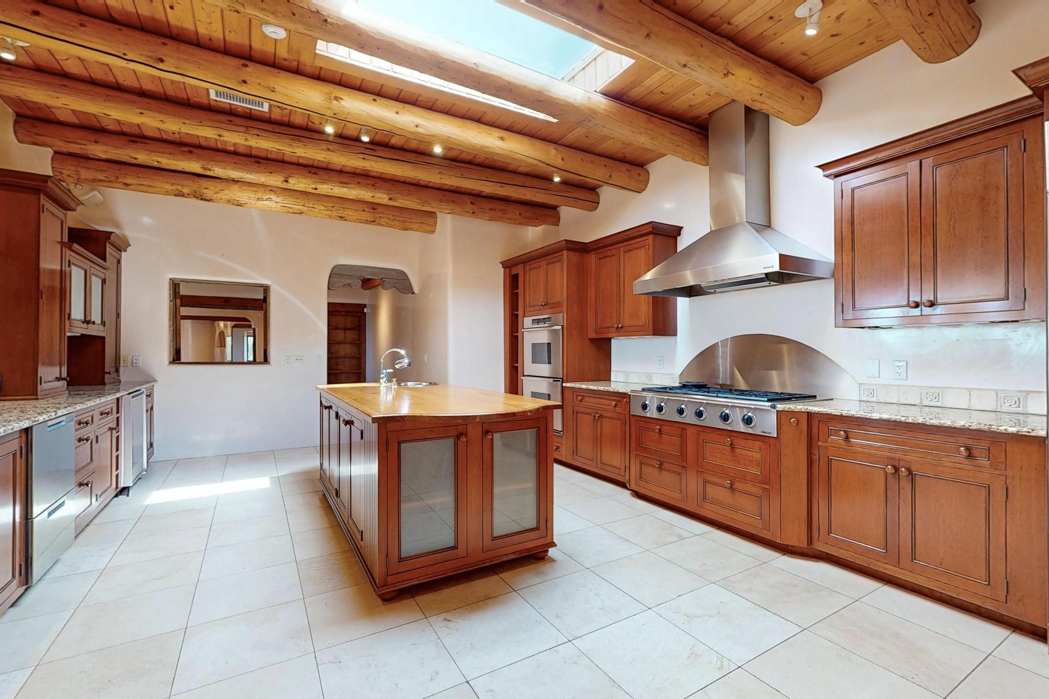 Approximately 5801 square foot main residence with an attached 1068 square foot guest house and 594 square foot studio, located on one of the best view sites on prestigious Circle Drive. Long considered to be one of the best areas in Santa Fe because of its marvelous views to the city, northern badlands, western Jemez Mountain range and the Sangre de Cristos, as well as its proximity to The Plaza and The Santa Fe Opera. Resting on 1.93 acres with a private security gate, this traditional Pueblo masterpiece is partial adobe, beautiful latillas, extensive portals, 9 fireplaces, 5 bedrooms, 5 1/2 baths and a very large formal dining room with beautiful light and views. It also features 4 garages, cherry wood cabinets in the kitchen & stainless steel appliances. This home was recently appraised for over $3.2 million. The home will require some work to bring it up to its former glory. It is being offered in its current condition at a price of $2.7M. Photos are virtually staged.