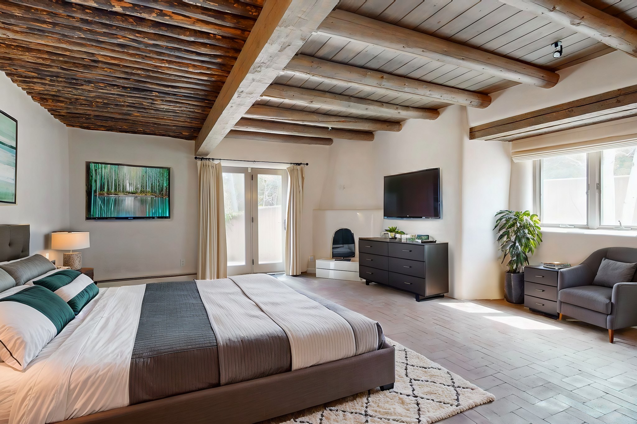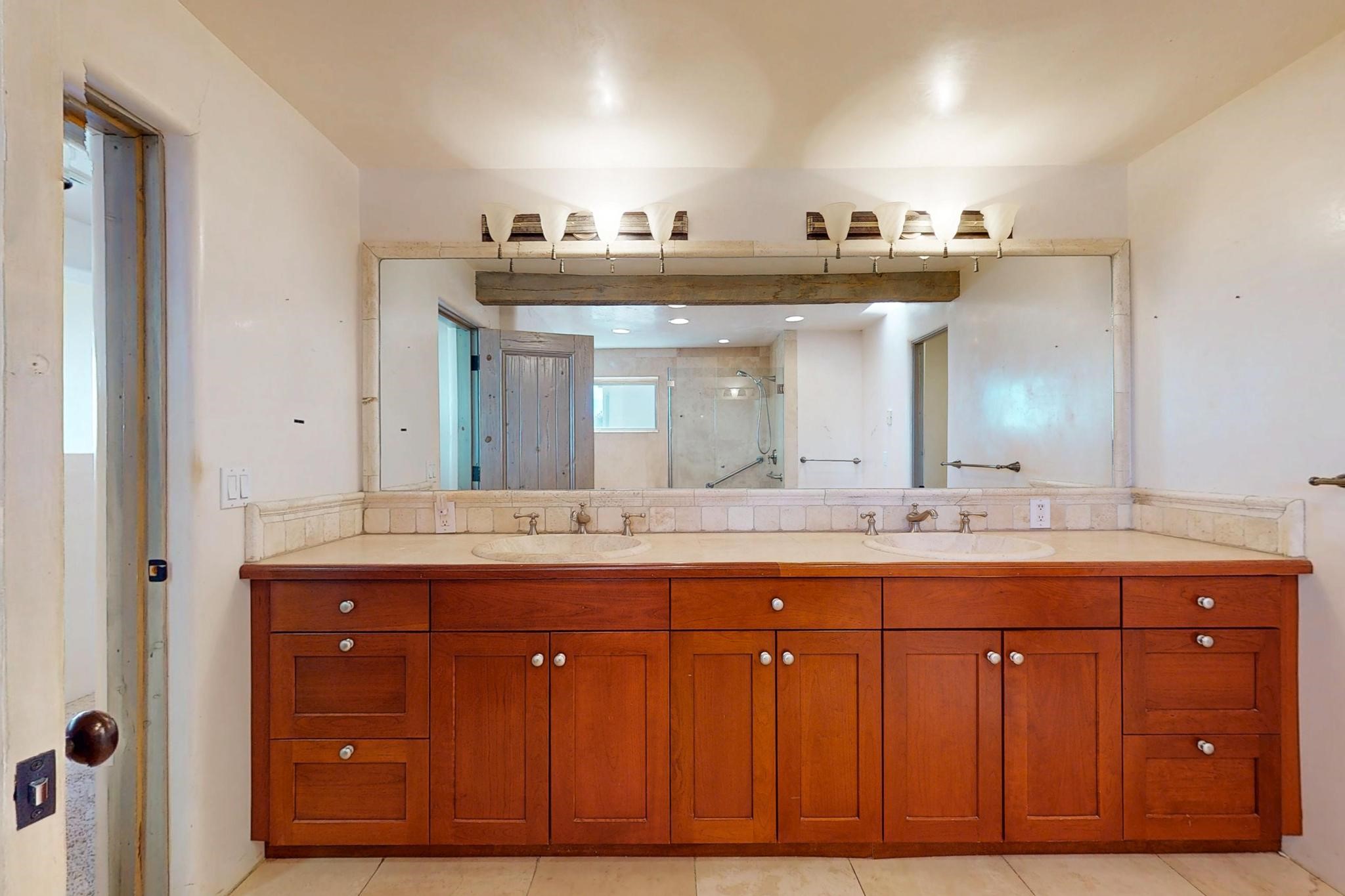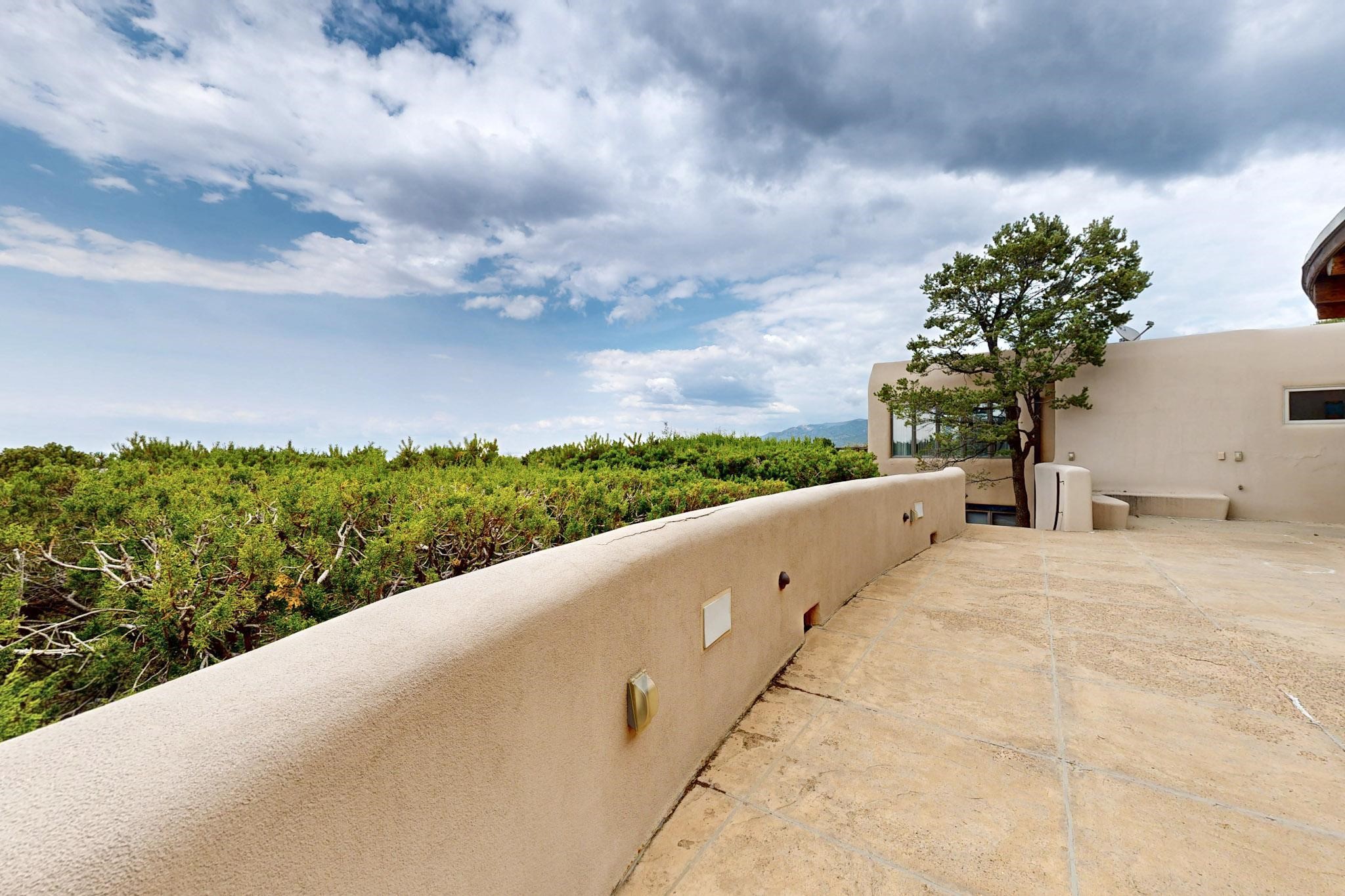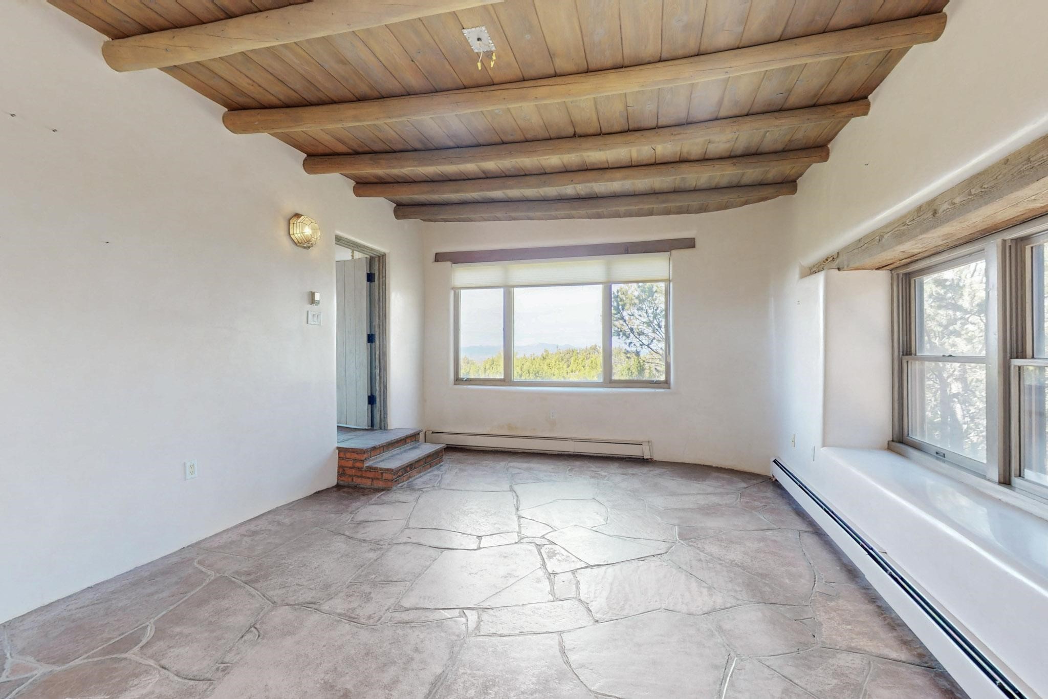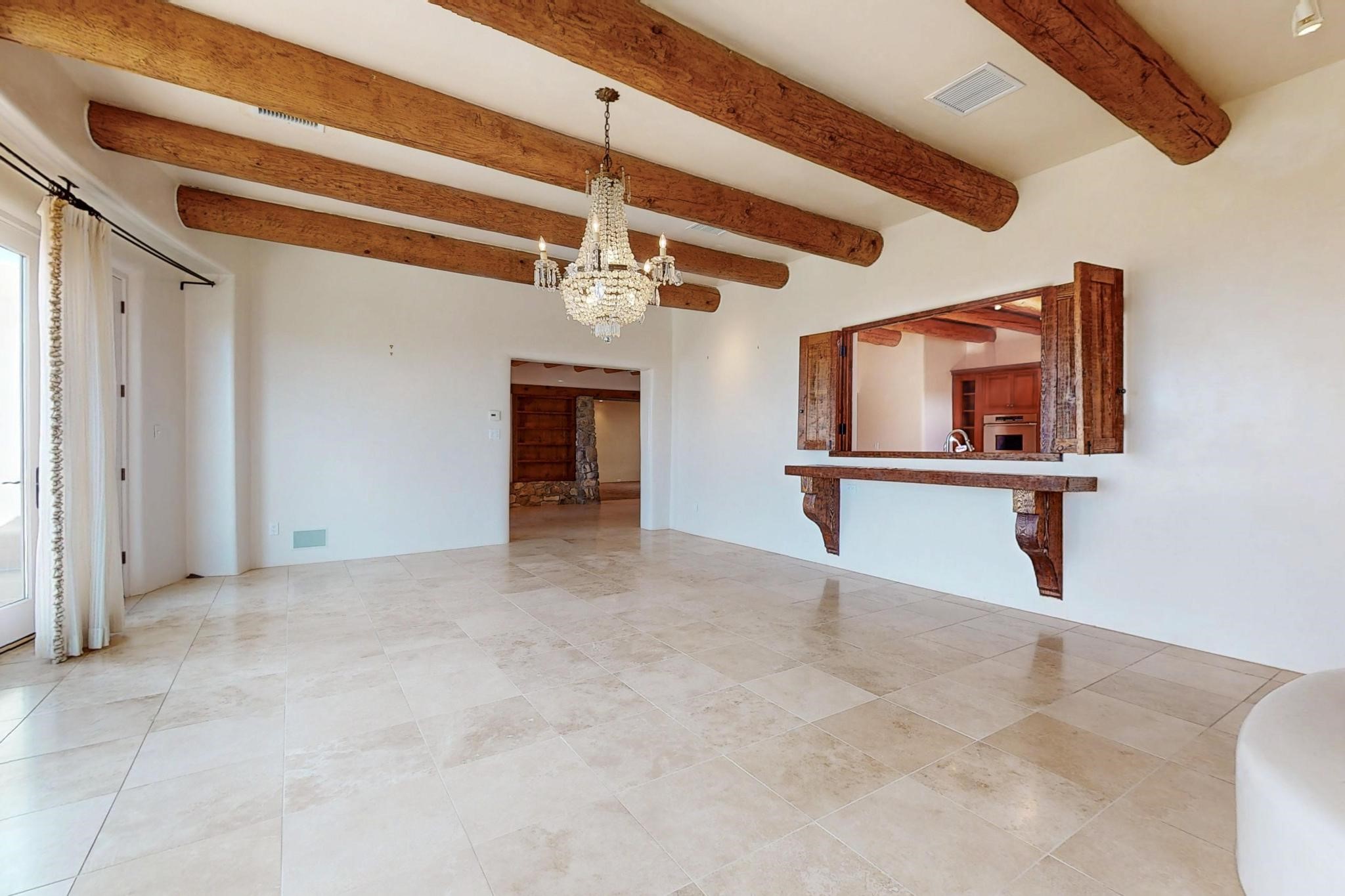 Approximately 5801 square foot main residence with an attached 1068 square foot guest house and 594 square foot studio, located on one of the best view sites on prestigious Circle Drive. Long considered to be one of the best areas in Santa Fe because of its marvelous views to the city, northern badlands, western Jemez Mountain range and the Sangre de Cristos, as well as its proximity to The Plaza and The Santa Fe Opera. Resting on 1.93 acres with a private security gate, this traditional Pueblo masterpiece is partial adobe, beautiful latillas, extensive portals, 9 fireplaces, 5 bedrooms, 5 1/2 baths and a very large formal dining room with beautiful light and views. It also features 4 garages, cherry wood cabinets in the kitchen & stainless steel appliances. This home was recently appraised for over $3.2 million. The home will require some work to bring it up to its former glory. It is being offered in its current condition at a price of $2.7M. Photos are virtually staged.