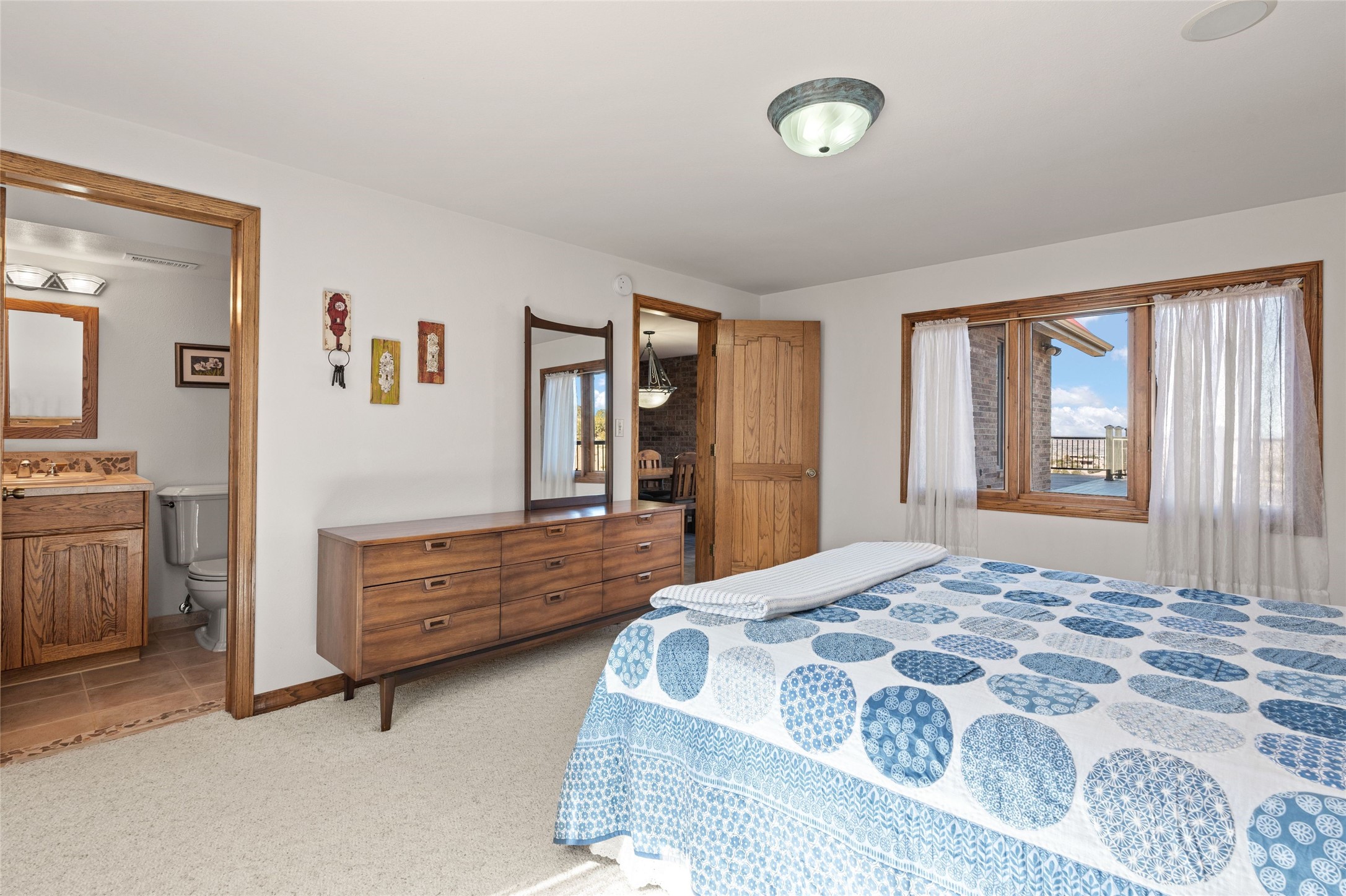 Fabulous family compound and horse property! 4.98 acres of space, views, and a lifestyle that invites multi family living, excellent horse facilities, two separate garages, one with heat/cool, room for lift, other with heat/cool plus bathroom. Must see this well maintained Northern NM brick beauty. Main house 3952 sf plus the 1 BR connected guest house is 1304 sf., total heated is 5256 sf. Main level of home features a living room, formal dining, on suite BR, spacious kitchen, nook for informal dining, half bath, and over 1300sf of open trex deck! Upstairs features primary suite, 3rd BR, loft which is open to main level. Lower level offers family room, 4th BR or office, bath, laundry and a 1304 sf attached 1 BR guest house included in the 5256 sf w/full kitchen, living, plus a 18 X 22 BR w/washer dryer hook ups, and separate entry also. Refrigerated Air, CFA, HWB, mini splits. Well designed barn 4 stall barn, center isle, hay storage, tack, steel lined, runs off 3 stalls, opens to an arena w/shelter. Easy access to National Forest trails.