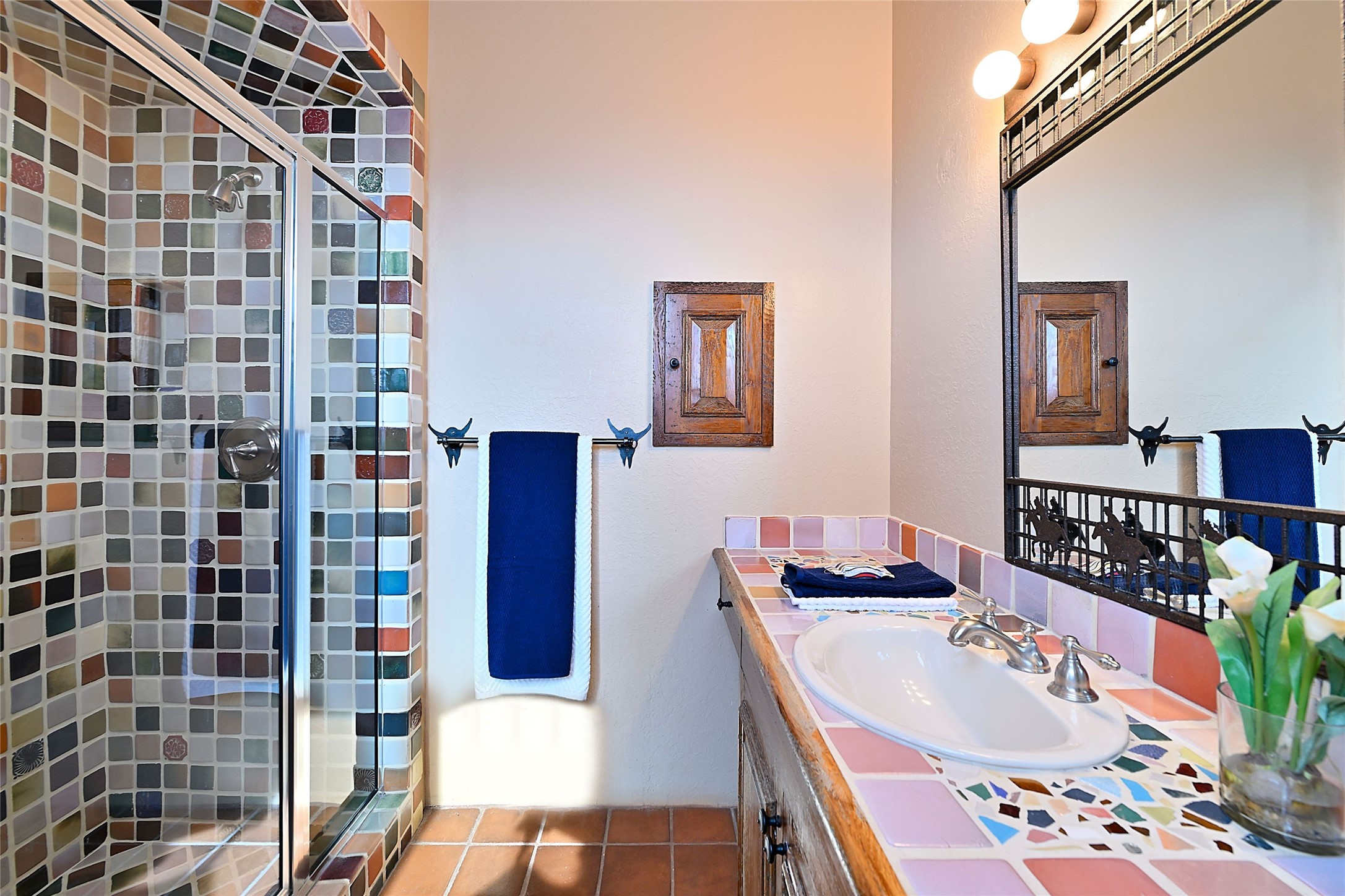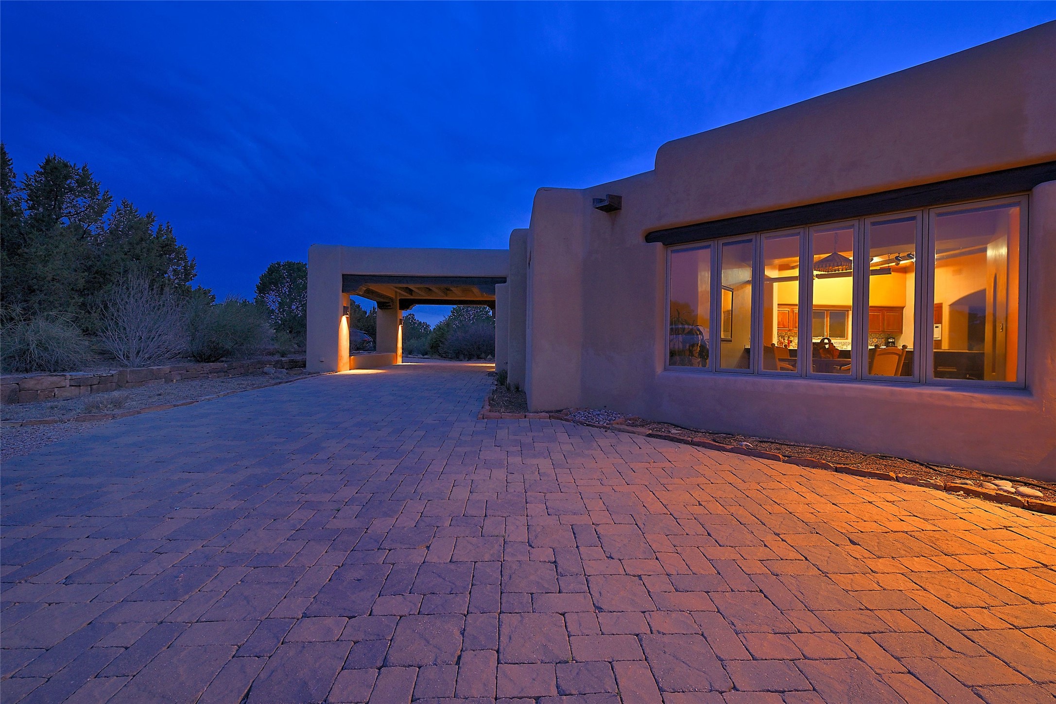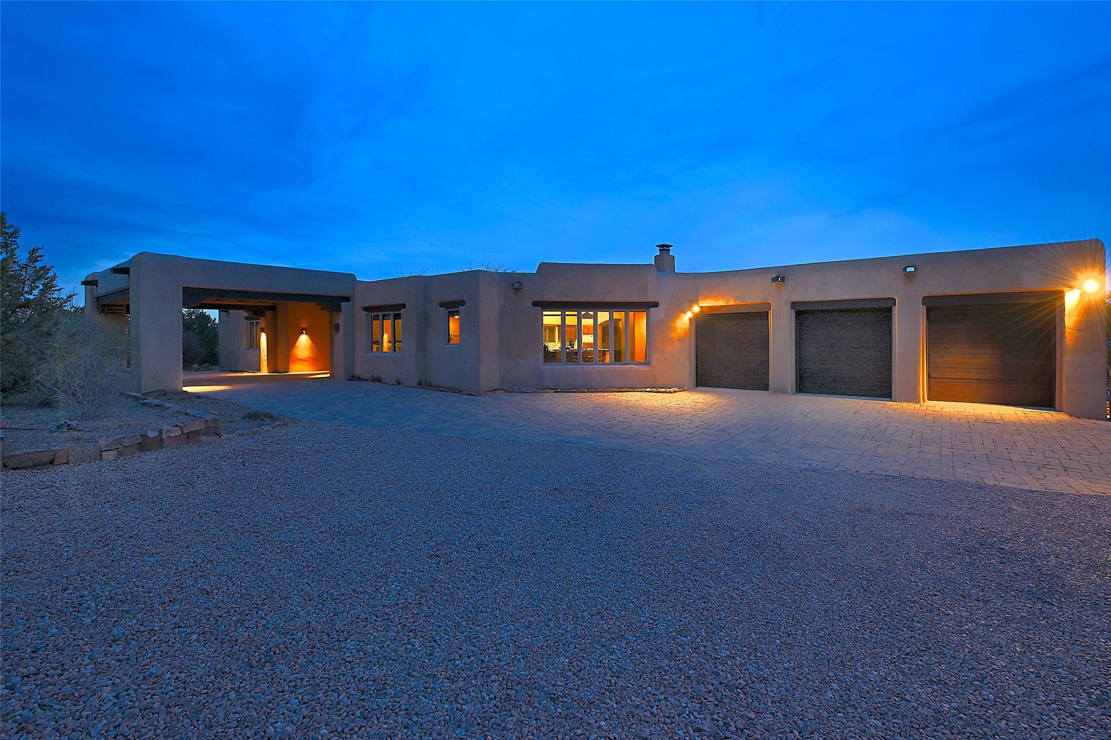 The Grande Dame of las Campanas. Set on an expansive 5 acre double lot, this property offers unparalleled privacy and security. Substantial gates open to reveal a stunning courtyard meticulously designed to create a welcoming impression with natural, elegant landscaping. Stepping through the stately front doors you're greeted by the soaring ceilings of the expansive great room seamlessly connecting to the vast patio beyond. Adjacent to the great room lies the charming formal dining room. A step beyond is the extra-large game and media room. The kitchen has enough room for two to cook and friends to gather, with a charming breakfast nook opening to the courtyard. The estate boasts four bedrooms each with en-suite baths. The primary bedroom is a private retreat with accompanying bath and an extensive two sides walk-in closet. Steps away is the home's library ready for a collection of books or artifacts. the comfortable seating area offers a peaceful place to read, work or just relax. For those who opt to join the club at Las Campanas with its world class amenities, memberships are available. Or just enjoy the serenity of a beautifully cared for community.