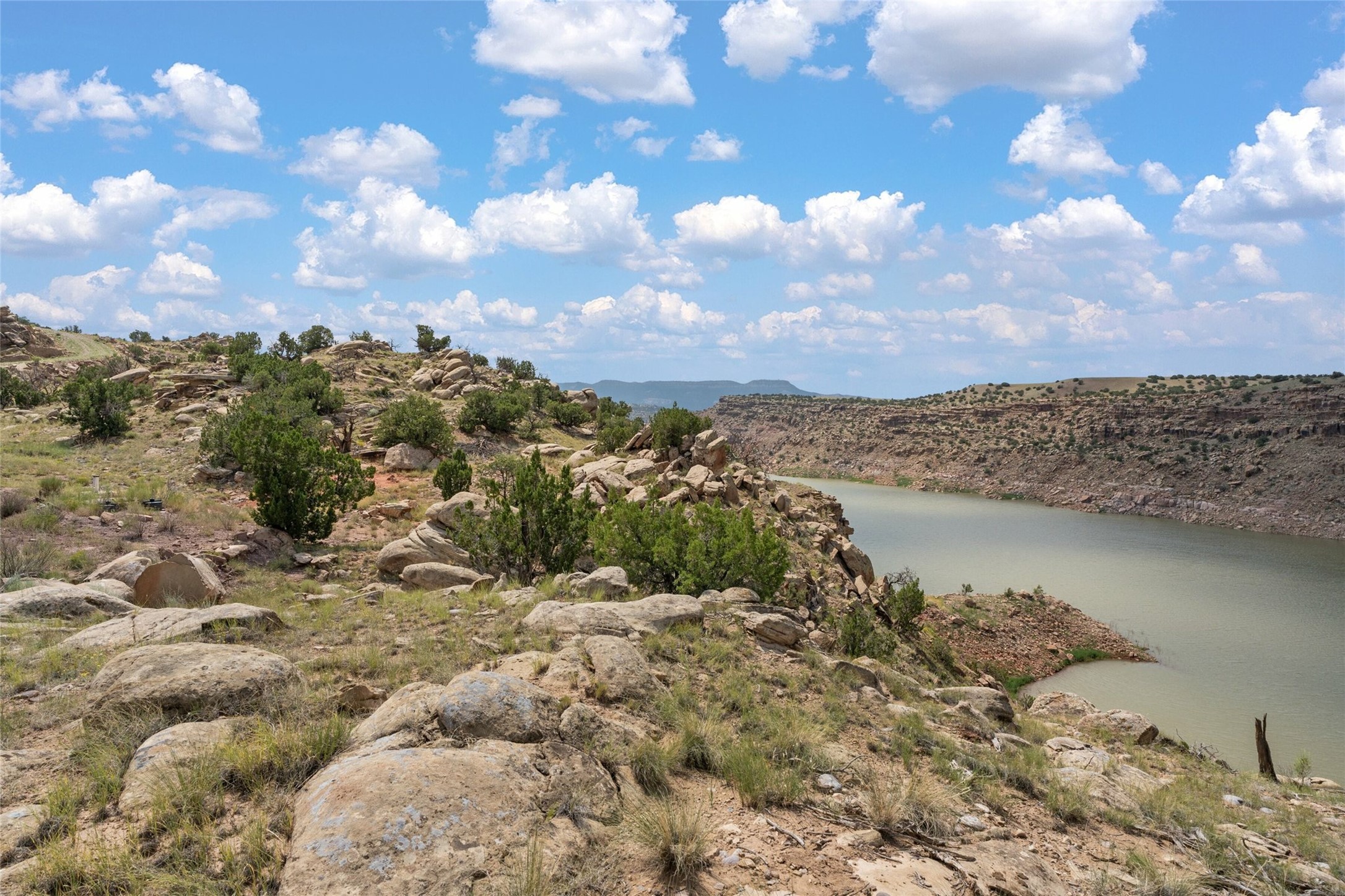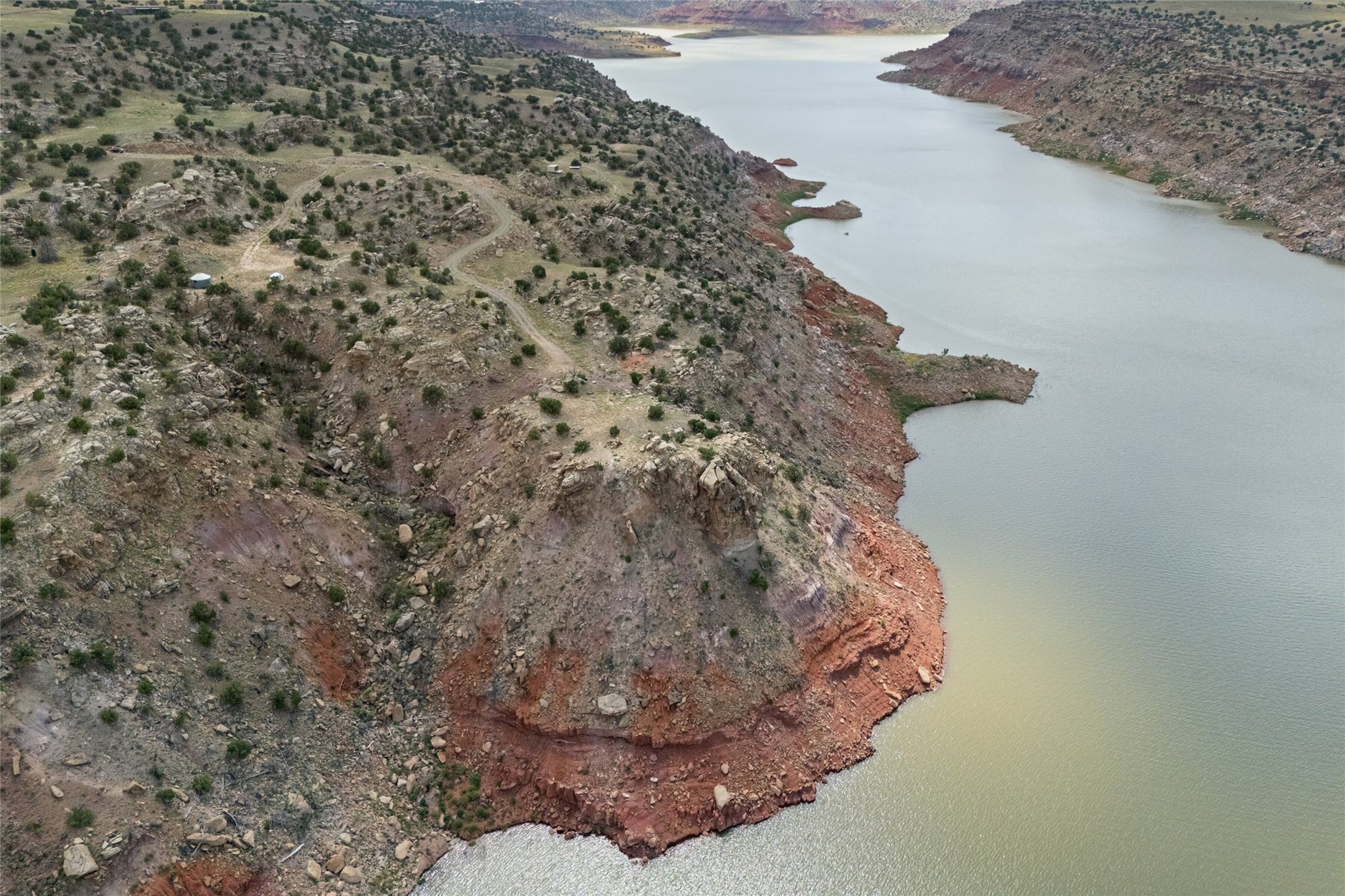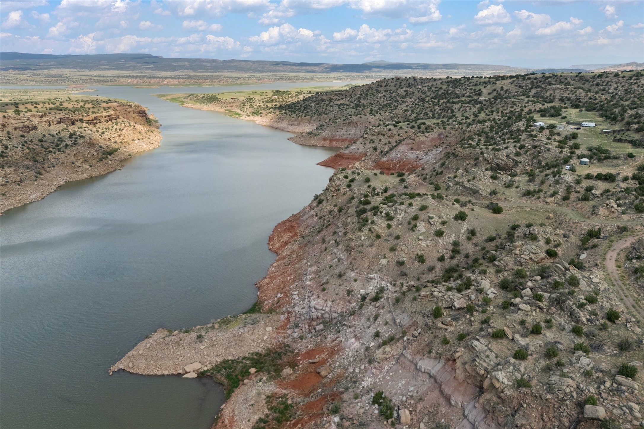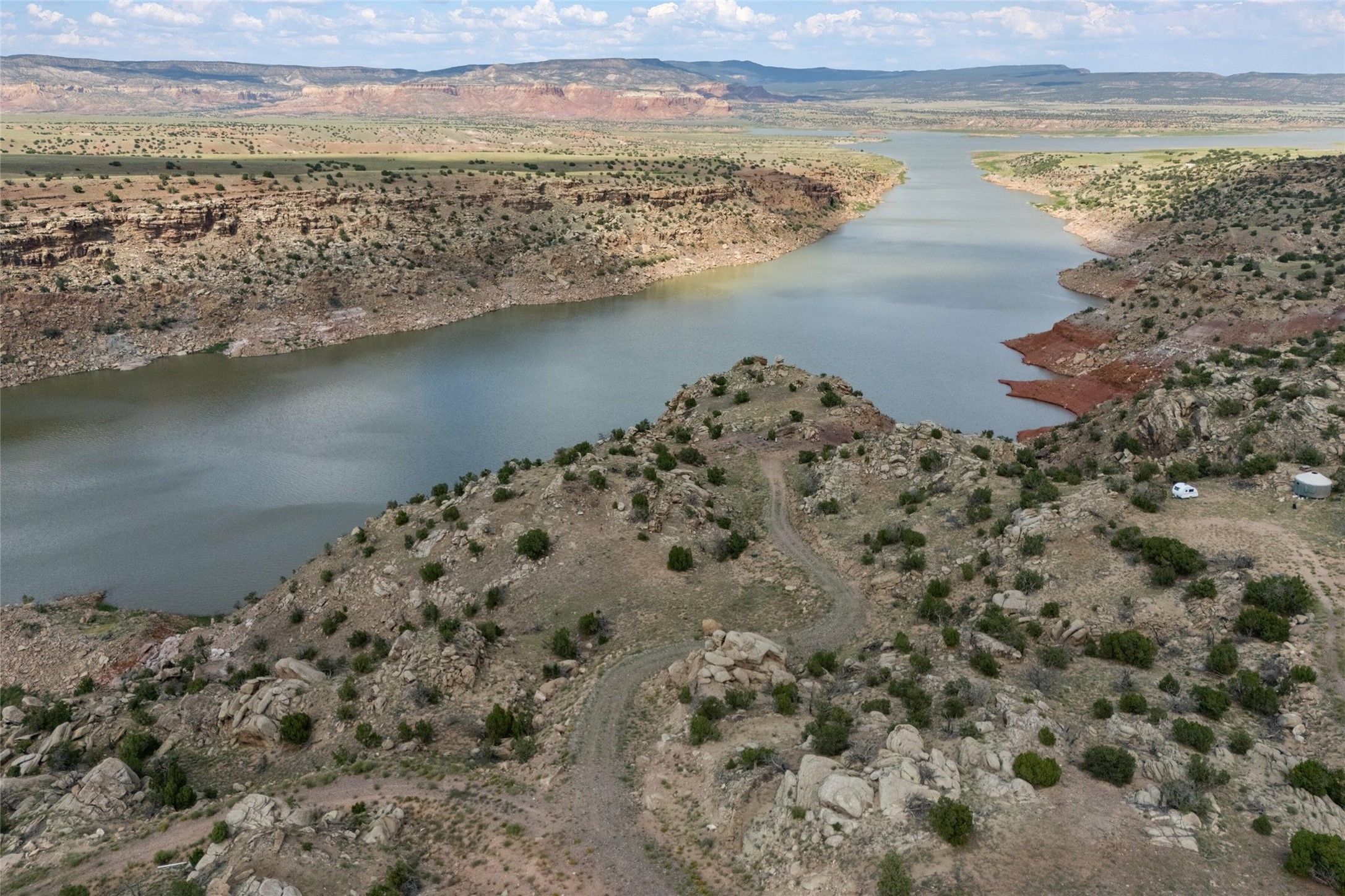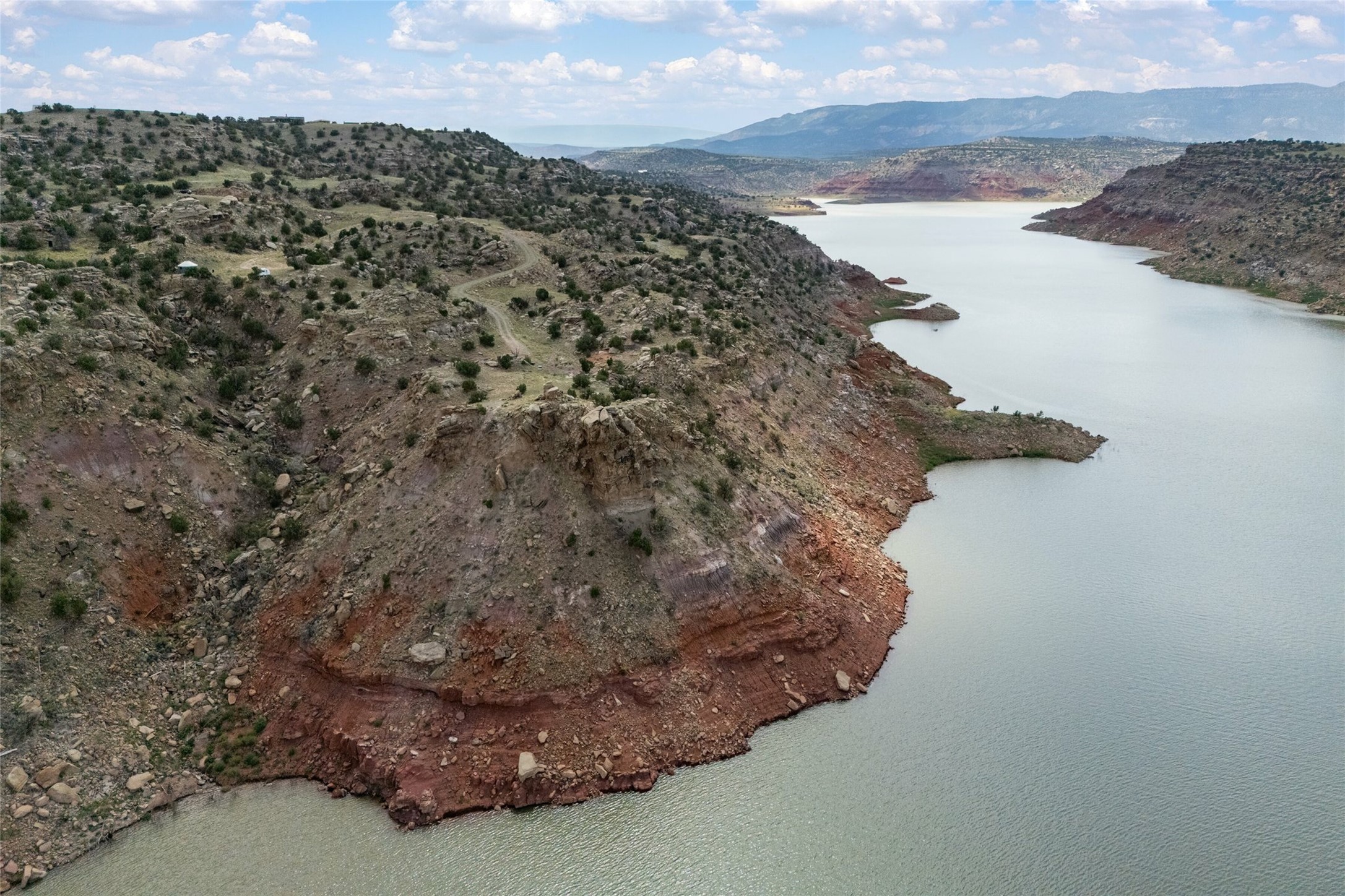 Who has waterfront property in New Mexico? It is unheard of! And yet, there is a rare, very special 14.49 acre view parcel right on the water at Lake Abiquiu! It sits on a private, majestic ridge surrounded by panoramas of Ghost Ranch and the legendary multi-colored cliffs memorialized in Georgia O'Keeffe's art, with views and access all the way up the Chama river as well. There are several spectacular building sites to choose from, magnificent character rocks, total privacy, peace, silence and tranquility in overwhelming beauty, looking out over the world and Lake Abiquiu. Electric is in, and a shared well, plus membership in the private community Lot 16 boat ramp and picnic area. 5 minutes to Abiquiu, an hour from Santa Fe, and a short drive south of the Colorado border, this is a once in a lifetime opportunity to experience waterfront property in New Mexico!