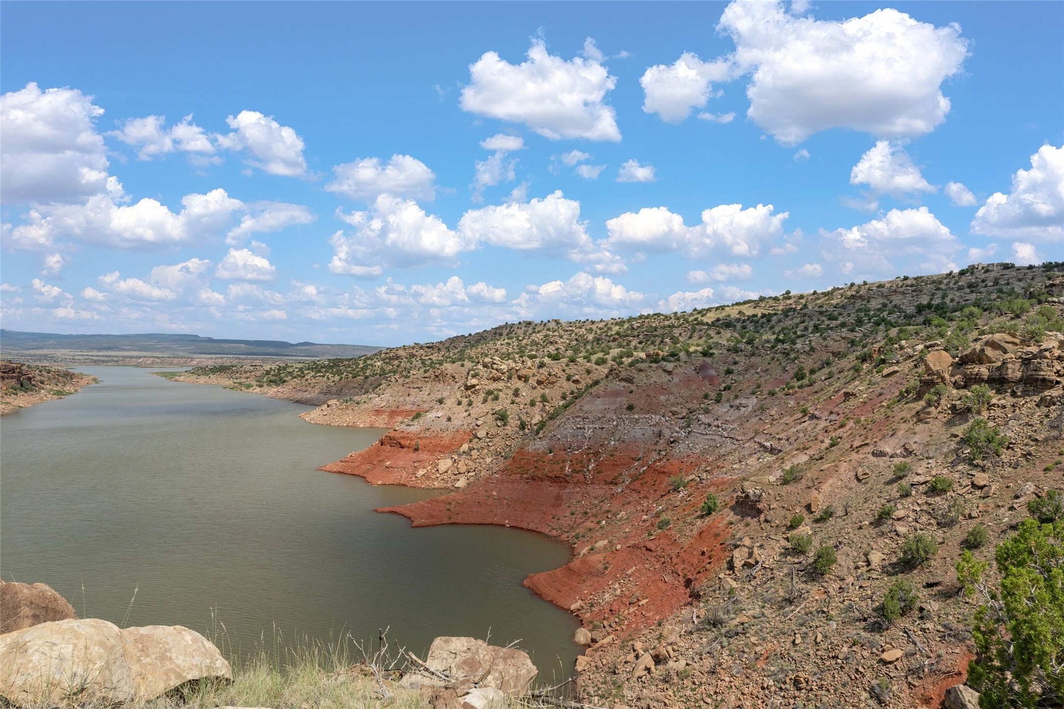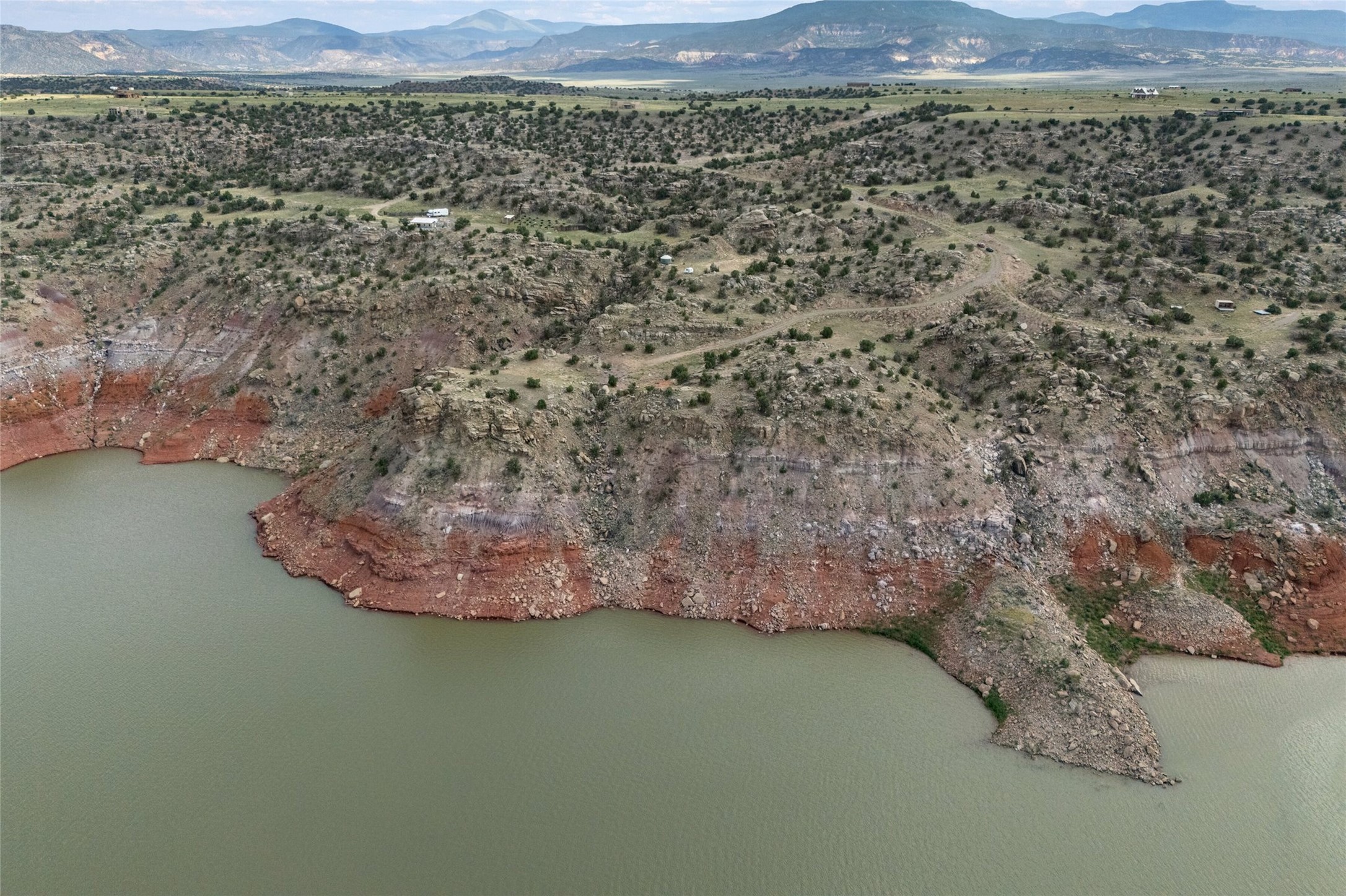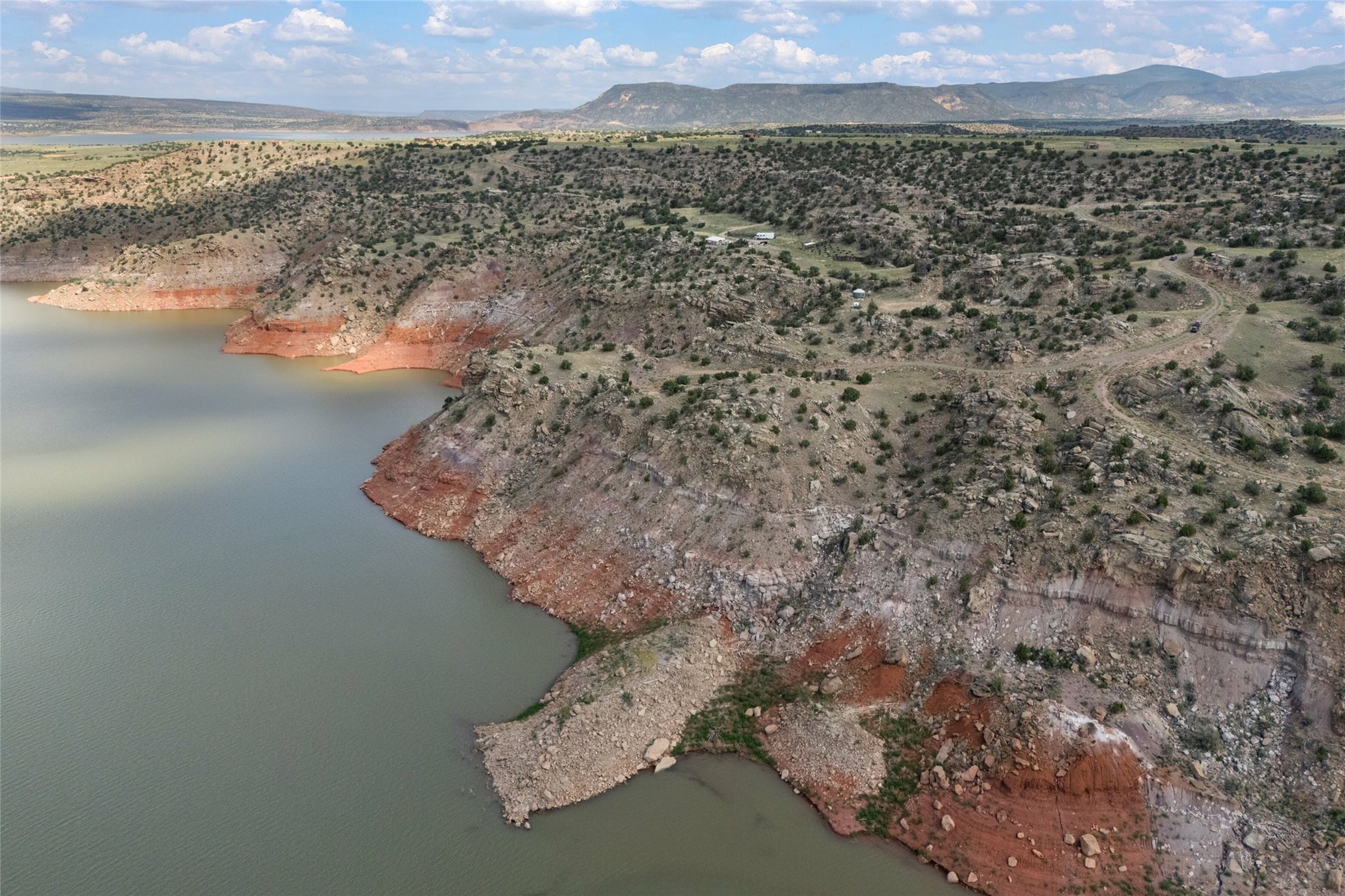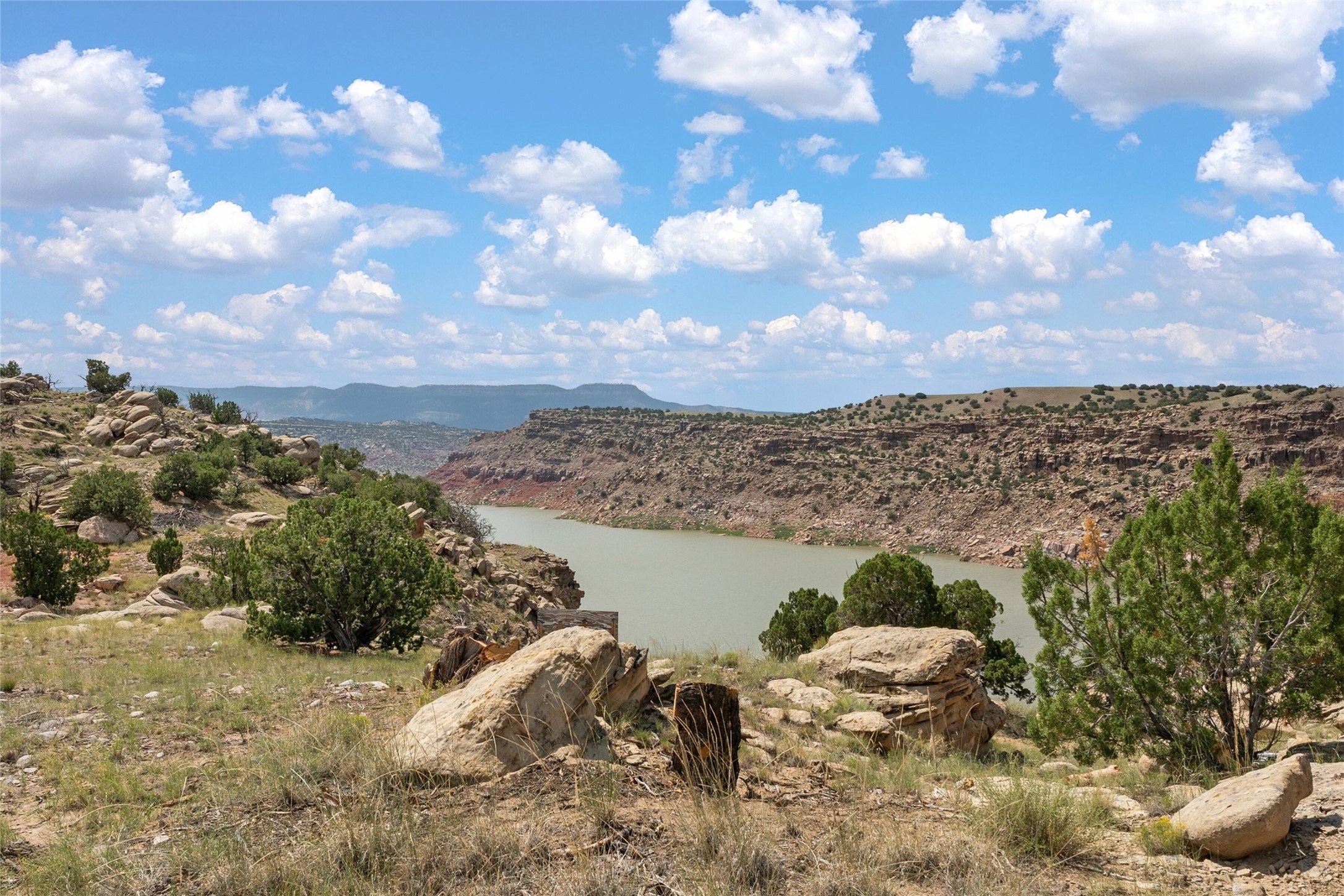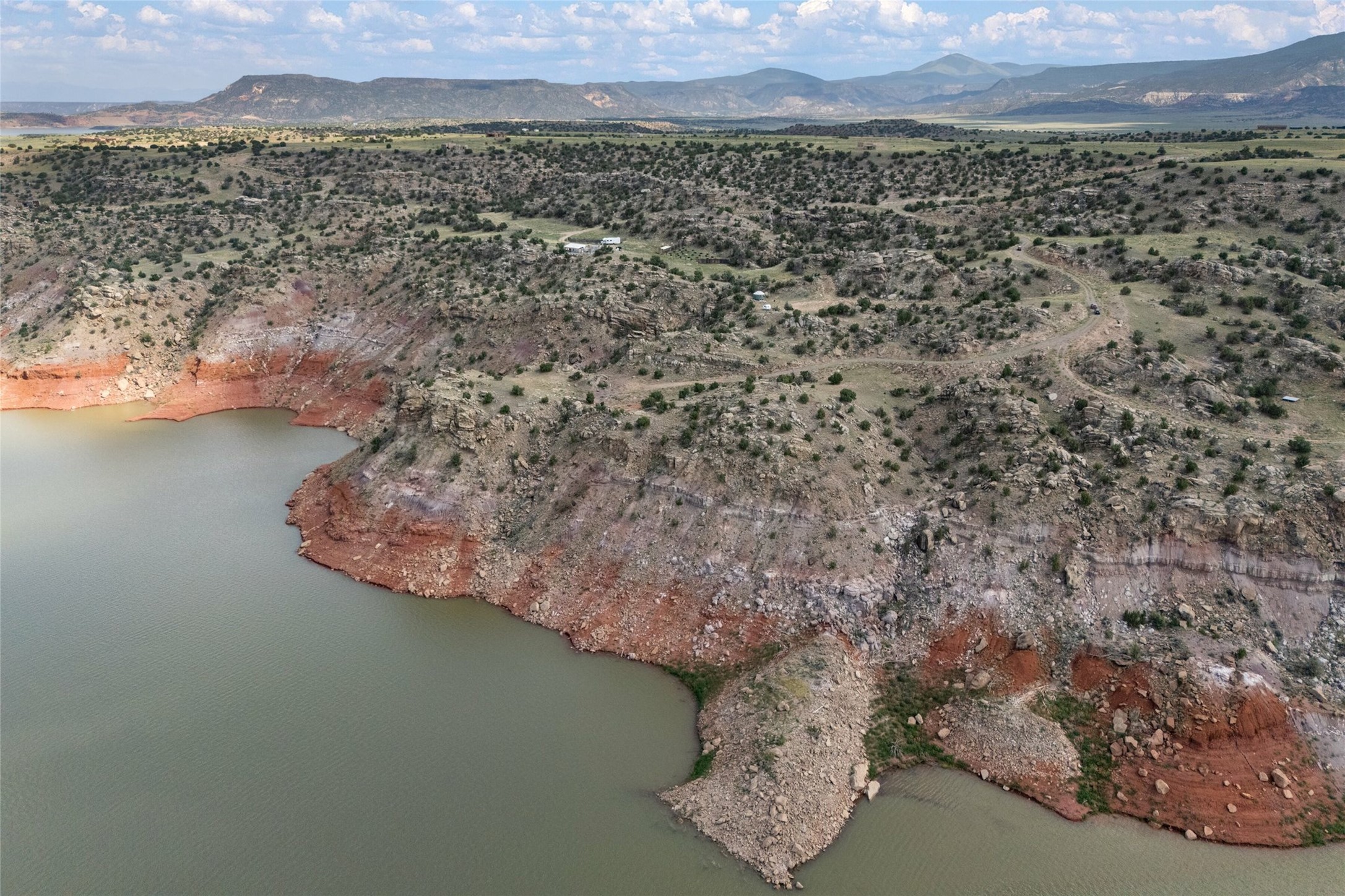 Who has waterfront property in New Mexico? It is unheard of! And yet, there is a rare, very special 14.49 acre view parcel right on the water at Lake Abiquiu! It sits on a private, majestic ridge surrounded by panoramas of Ghost Ranch and the legendary multi-colored cliffs memorialized in Georgia O'Keeffe's art, with views and access all the way up the Chama river as well. There are several spectacular building sites to choose from, magnificent character rocks, total privacy, peace, silence and tranquility in overwhelming beauty, looking out over the world and Lake Abiquiu. Electric is in, and a shared well, plus membership in the private community Lot 16 boat ramp and picnic area. 5 minutes to Abiquiu, an hour from Santa Fe, and a short drive south of the Colorado border, this is a once in a lifetime opportunity to experience waterfront property in New Mexico!