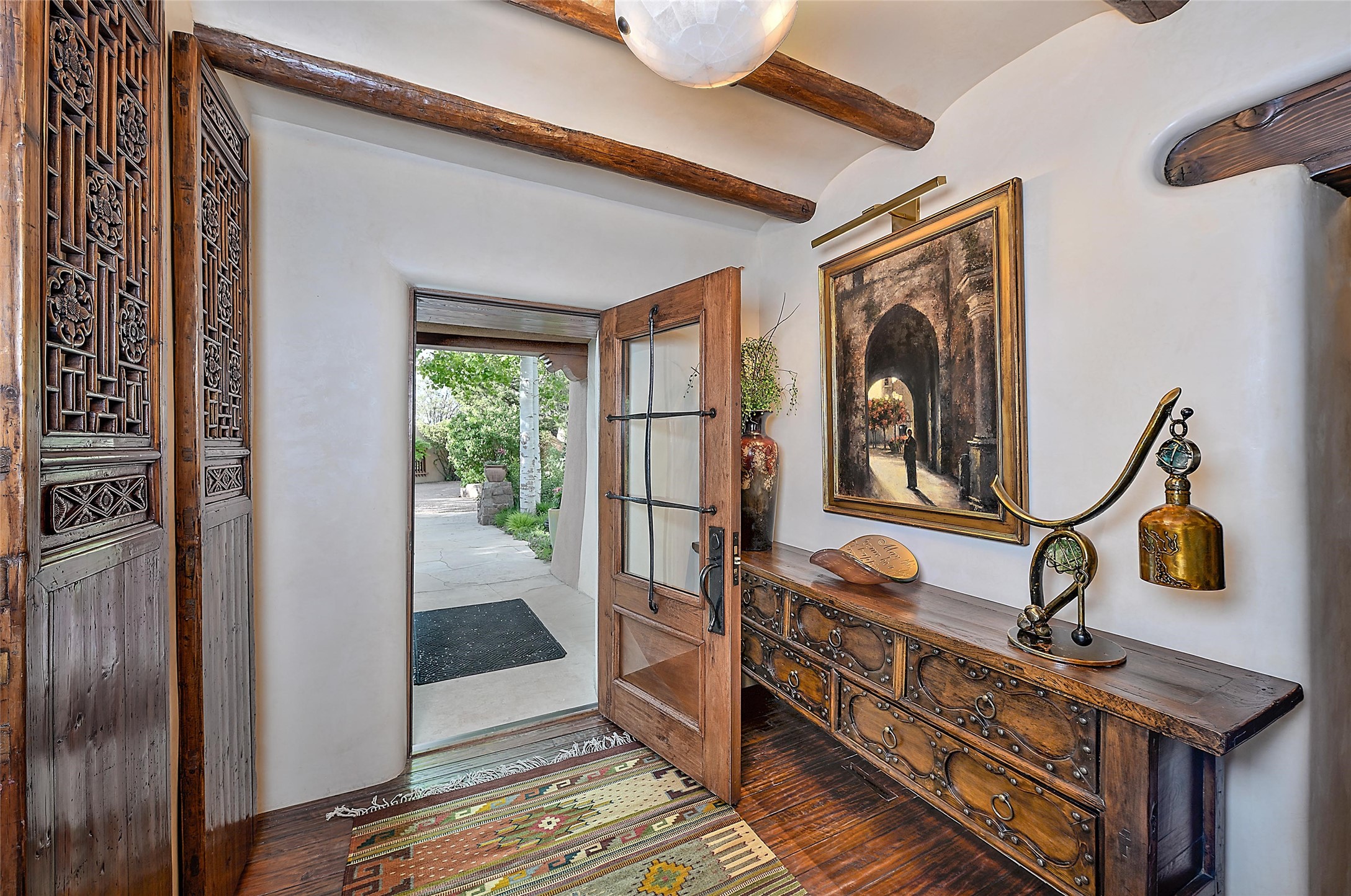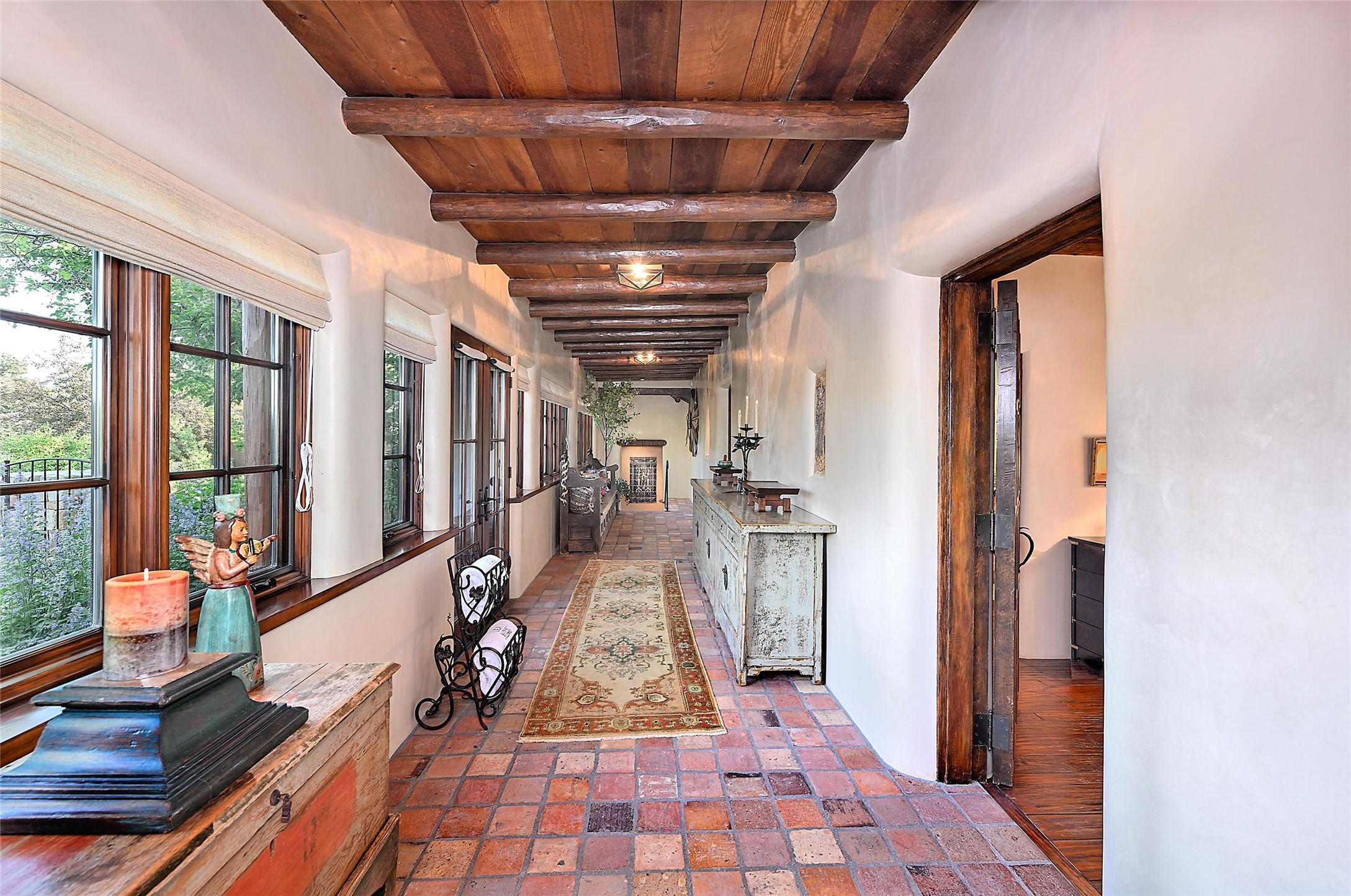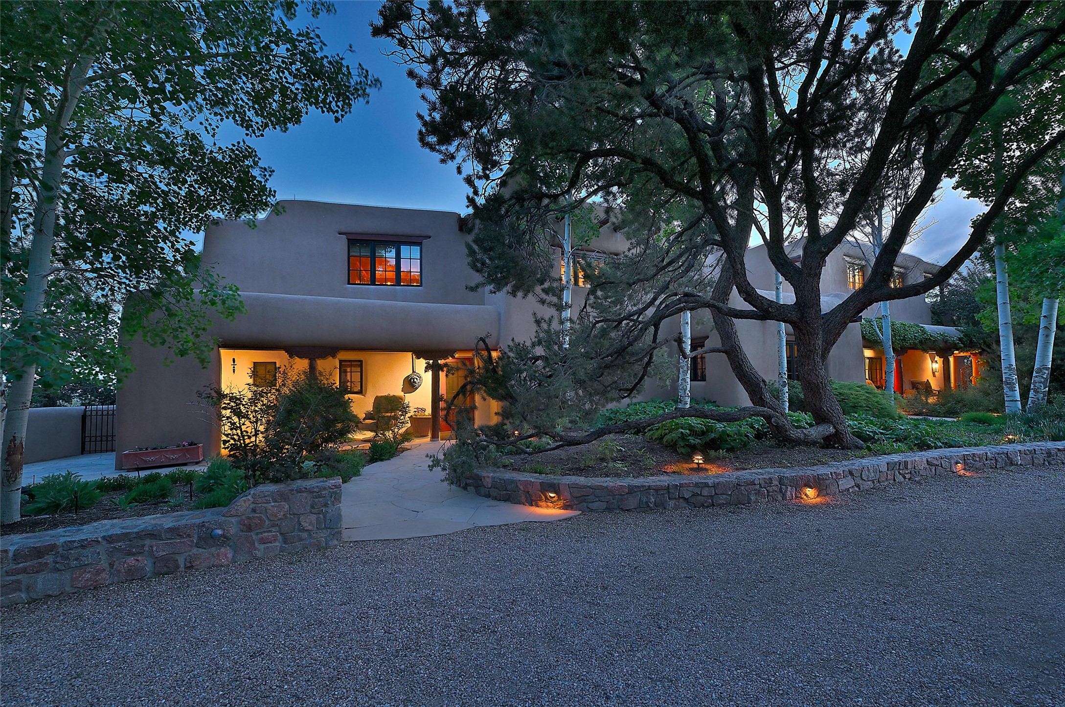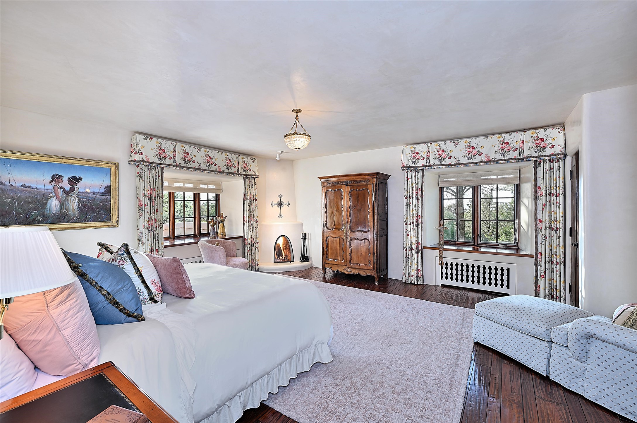 Experience the rare opportunity to own a meticulously restored piece of Santa Fe's history. Just minutes from the Plaza, Casa Alegre, originally built in 1931 by Governor John Dempsey, stands as a timeless adobe estate that seamlessly blends historic charm with modern sophistication. Set on 11 breathtaking acres, this exceptional property features a stately six-bedroom main residence, exquisitely renovated to preserve its architectural integrity while incorporating the finest contemporary comforts. Three private guest houses provide additional generous accommodations, making this an ideal retreat for family, friends and distinguished guests. The estate's resort-like grounds are a true sanctuary, featuring a heated outdoor pool, a private tennis court and stone-lined walking trails that wind through the lush landscape. The grounds include an abundance of trees, along with a bountiful organic garden and orchard. An aggregate of 20 fireplaces are experienced throughout the estate. Steeped in history, Casa Alegre has been home to a succession of distinguished owners following Governor Dempsey, including an heir to the Weyerhaeuser timber fortune and a member of the Martini & Rossi family. Following a period of limited enhancement, Robert and Miriam Knutson, founders of Education Management Corporation, embarked on a four and a half-year, $18 million restoration of the compound in 2004, enlisting master artisans, architects, and craftsmen to revive the estate to perfection. Their meticulous efforts ranged from restoring infrastructure, building intricate rock walls, to curating 64 distinct window styles that honor the home's original character. Lovingly maintained by its current owners, Casa Alegre has served as the backdrop or cherished family gatherings and elegant philanthropic events. A rare jewel in Santa Fe's real estate landscape, this extraordinary estate offers an unrivaled opportunity to own a piece of history, beautifully reimagined for modern luxury living.