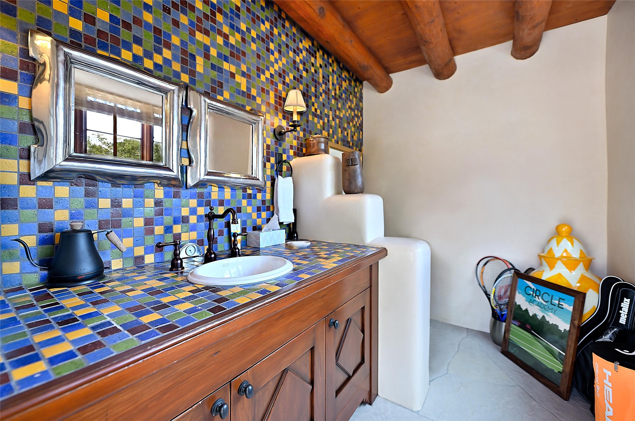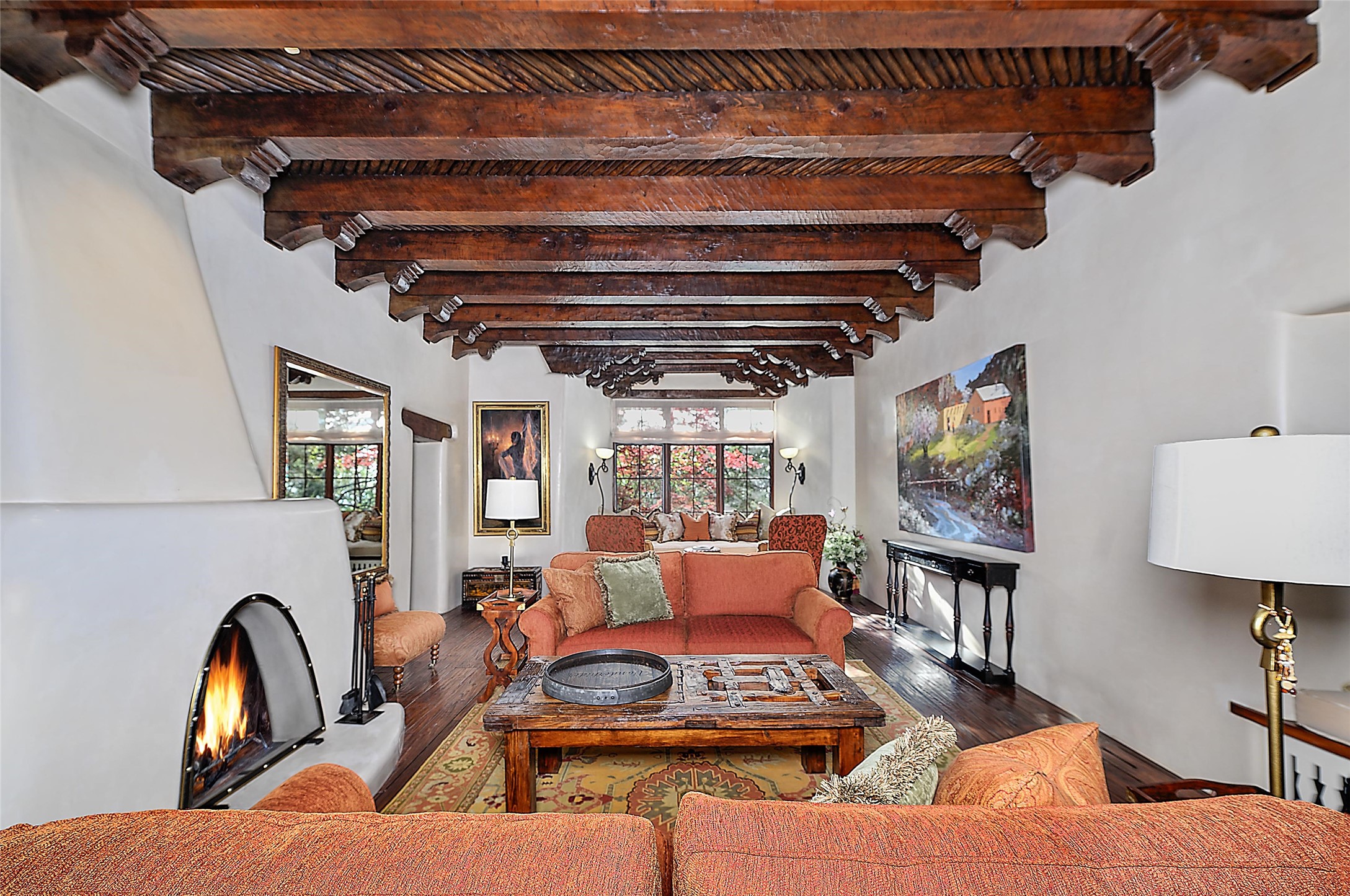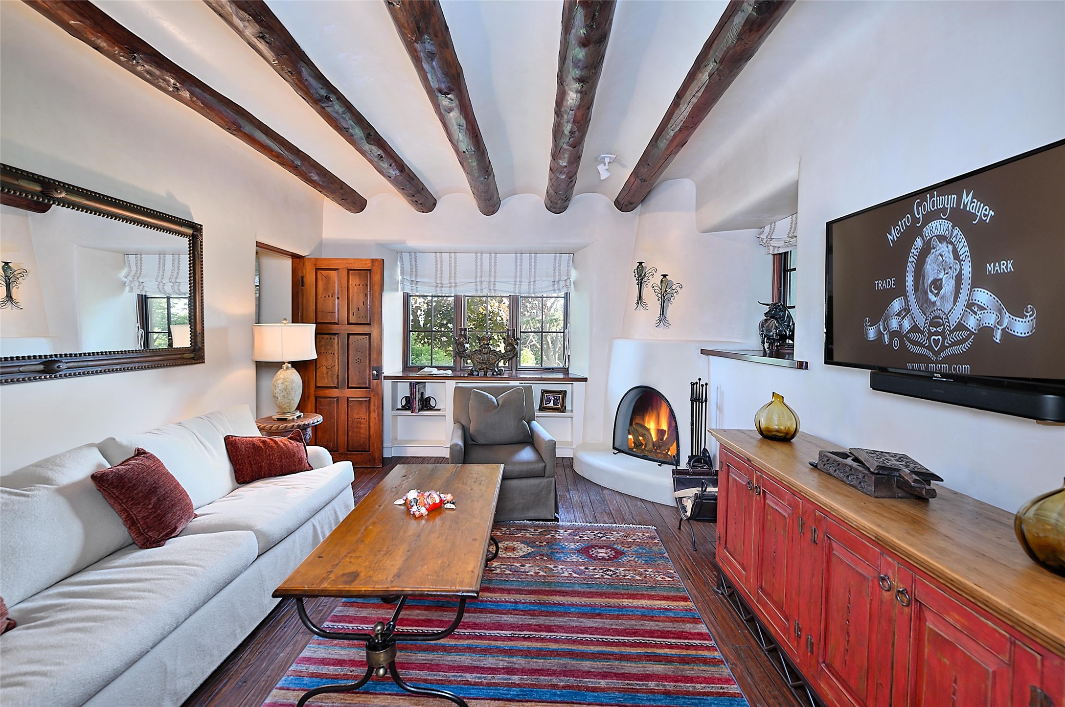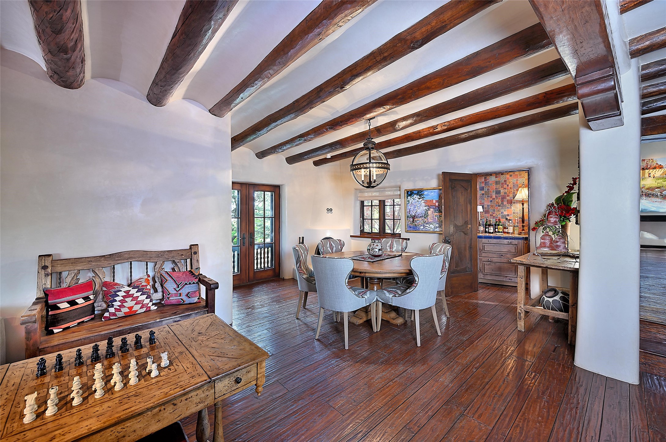 Experience the rare opportunity to own a meticulously restored piece of Santa Fe's history. Just minutes from the Plaza, Casa Alegre, originally built in 1931 by Governor John Dempsey, stands as a timeless adobe estate that seamlessly blends historic charm with modern sophistication. Set on 11 breathtaking acres, this exceptional property features a stately six-bedroom main residence, exquisitely renovated to preserve its architectural integrity while incorporating the finest contemporary comforts. Three private guest houses provide additional generous accommodations, making this an ideal retreat for family, friends and distinguished guests. The estate's resort-like grounds are a true sanctuary, featuring a heated outdoor pool, a private tennis court and stone-lined walking trails that wind through the lush landscape. The grounds include an abundance of trees, along with a bountiful organic garden and orchard. An aggregate of 20 fireplaces are experienced throughout the estate. Steeped in history, Casa Alegre has been home to a succession of distinguished owners following Governor Dempsey, including an heir to the Weyerhaeuser timber fortune and a member of the Martini & Rossi family. Following a period of limited enhancement, Robert and Miriam Knutson, founders of Education Management Corporation, embarked on a four and a half-year, $18 million restoration of the compound in 2004, enlisting master artisans, architects, and craftsmen to revive the estate to perfection. Their meticulous efforts ranged from restoring infrastructure, building intricate rock walls, to curating 64 distinct window styles that honor the home's original character. Lovingly maintained by its current owners, Casa Alegre has served as the backdrop or cherished family gatherings and elegant philanthropic events. A rare jewel in Santa Fe's real estate landscape, this extraordinary estate offers an unrivaled opportunity to own a piece of history, beautifully reimagined for modern luxury living.