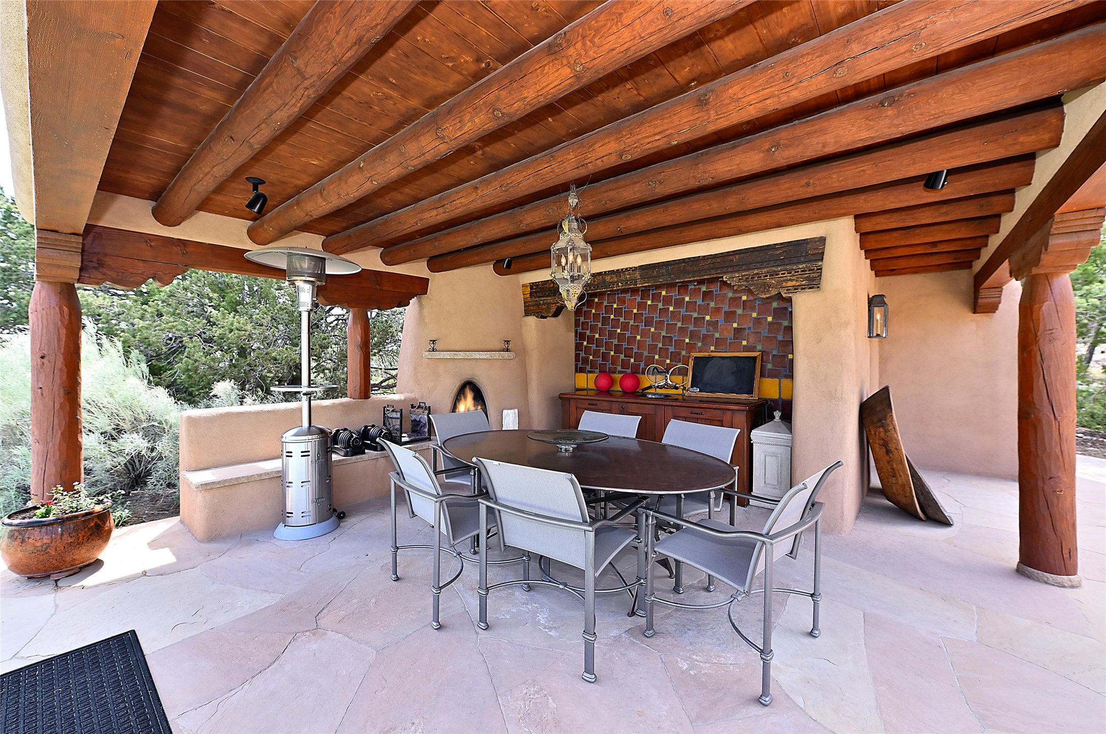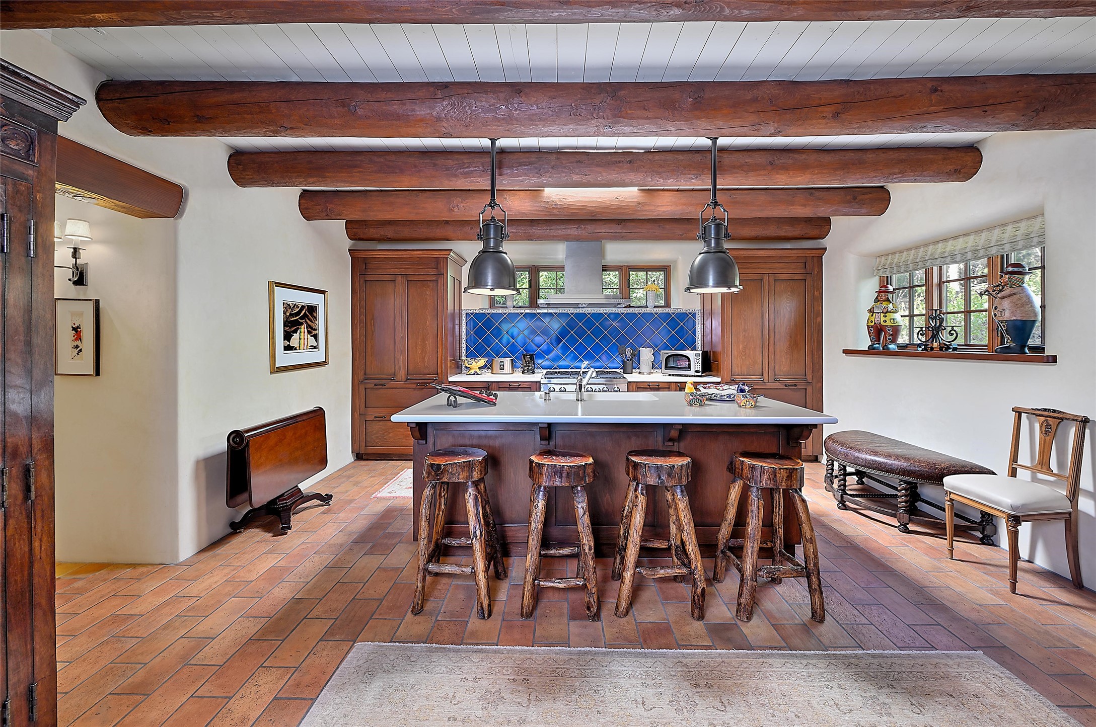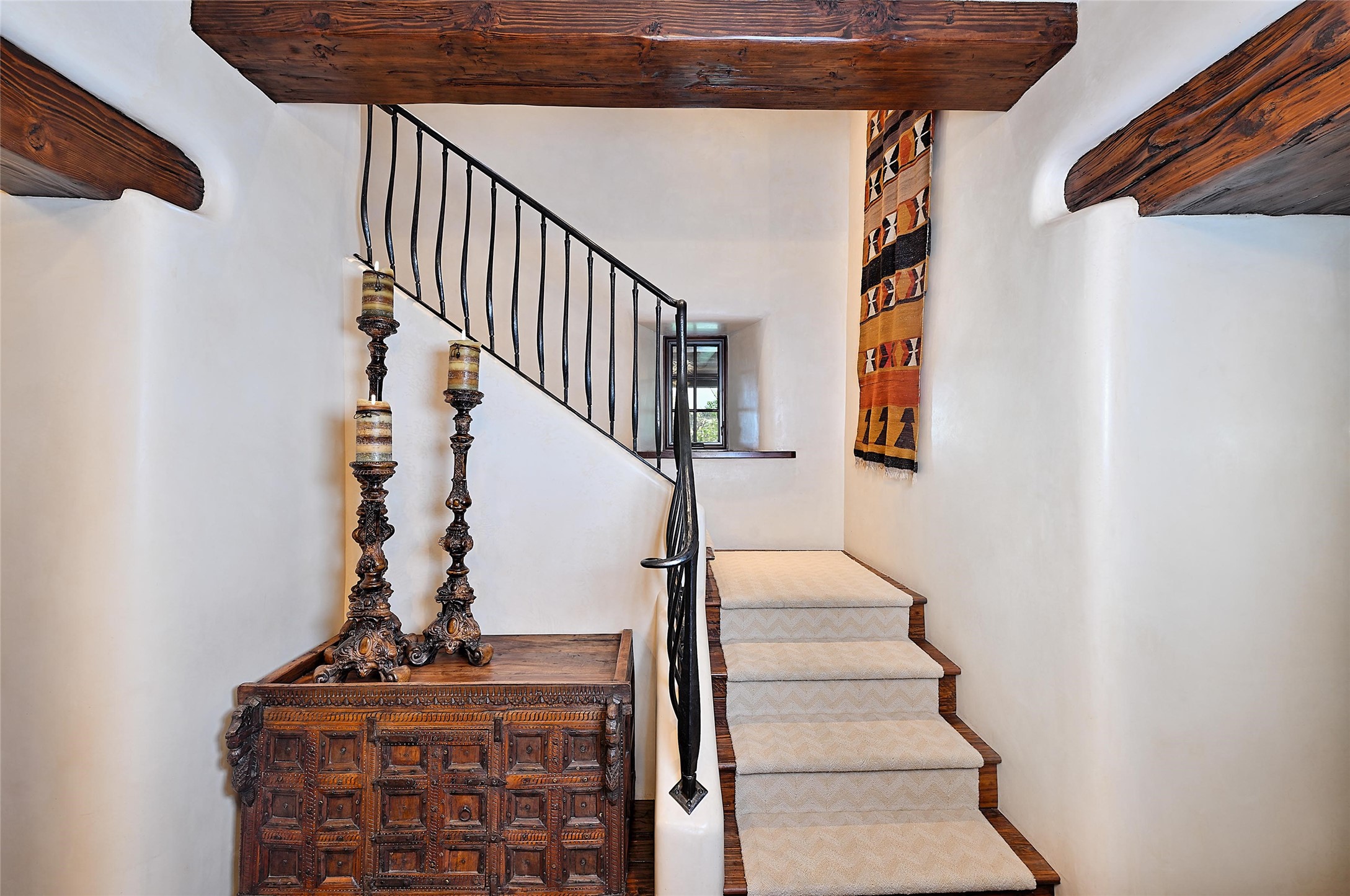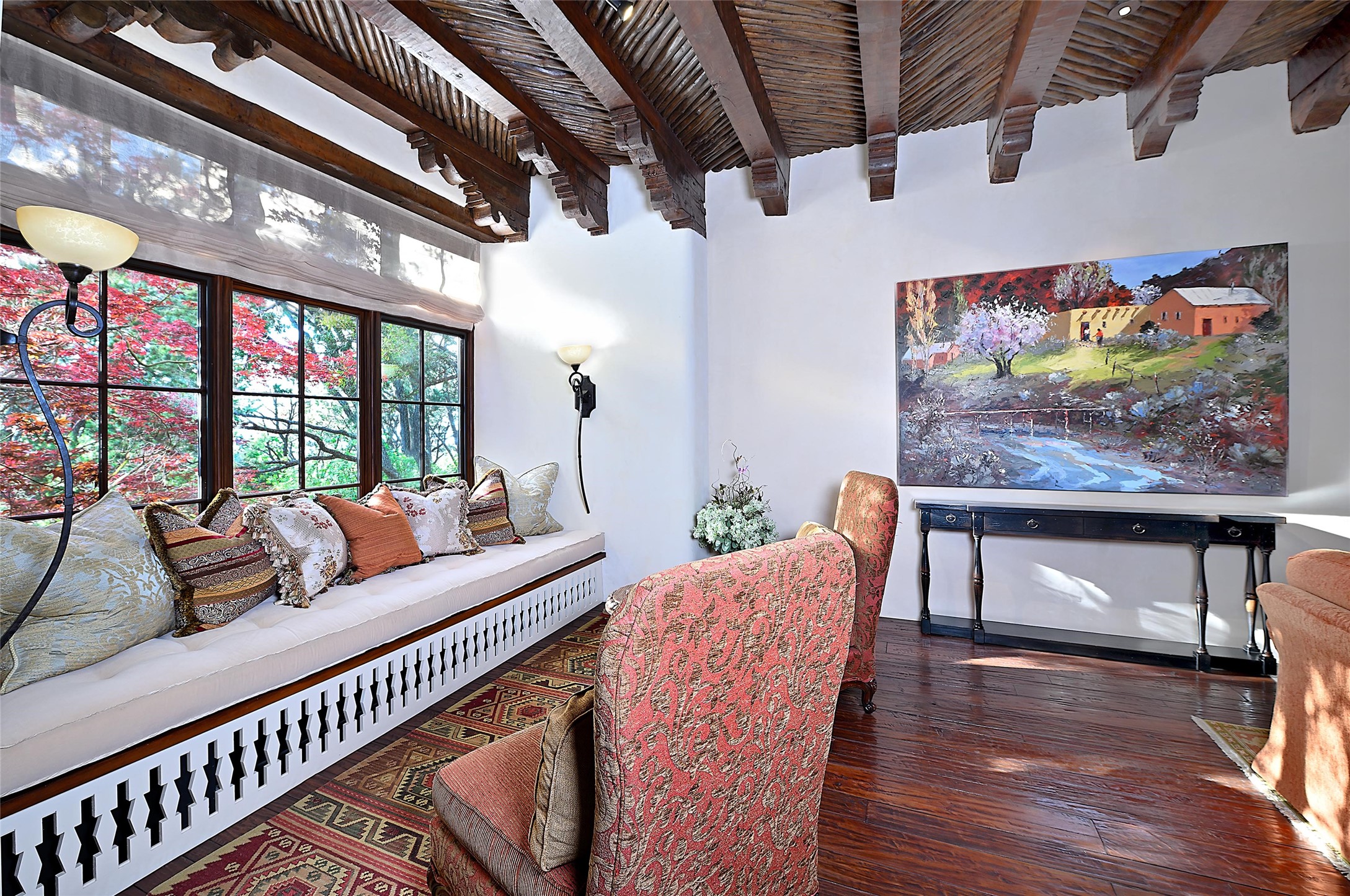 Experience the rare opportunity to own a meticulously restored piece of Santa Fe's history. Just minutes from the Plaza, Casa Alegre, originally built in 1931 by Governor John Dempsey, stands as a timeless adobe estate that seamlessly blends historic charm with modern sophistication. Set on 11 breathtaking acres, this exceptional property features a stately six-bedroom main residence, exquisitely renovated to preserve its architectural integrity while incorporating the finest contemporary comforts. Three private guest houses provide additional generous accommodations, making this an ideal retreat for family, friends and distinguished guests. The estate's resort-like grounds are a true sanctuary, featuring a heated outdoor pool, a private tennis court and stone-lined walking trails that wind through the lush landscape. The grounds include an abundance of trees, along with a bountiful organic garden and orchard. An aggregate of 20 fireplaces are experienced throughout the estate. Steeped in history, Casa Alegre has been home to a succession of distinguished owners following Governor Dempsey, including an heir to the Weyerhaeuser timber fortune and a member of the Martini & Rossi family. Following a period of limited enhancement, Robert and Miriam Knutson, founders of Education Management Corporation, embarked on a four and a half-year, $18 million restoration of the compound in 2004, enlisting master artisans, architects, and craftsmen to revive the estate to perfection. Their meticulous efforts ranged from restoring infrastructure, building intricate rock walls, to curating 64 distinct window styles that honor the home's original character. Lovingly maintained by its current owners, Casa Alegre has served as the backdrop or cherished family gatherings and elegant philanthropic events. A rare jewel in Santa Fe's real estate landscape, this extraordinary estate offers an unrivaled opportunity to own a piece of history, beautifully reimagined for modern luxury living.