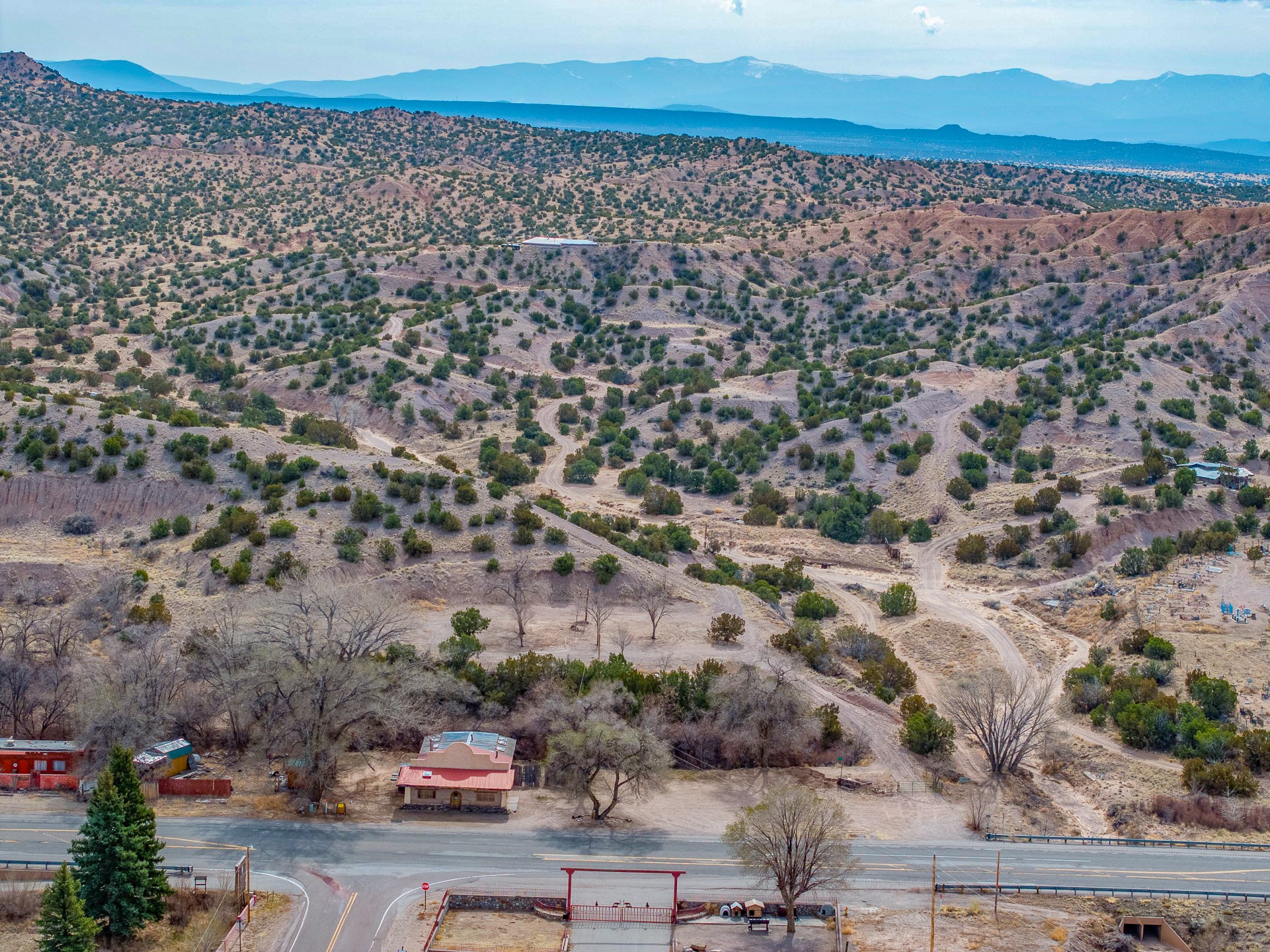 Located on Hwy 285 directly across from the entrance to the renowned Ojo Caliente Spa & Resort, this commercial/residential/mixed-use property offers an exceptional opportunity for someone looking to tap into a vibrant, high-traffic location in one of New Mexico's most sought-after destinations. Situated on .75 acres, this property boasts great visibility, traffic exposure, and accessibility, ideal for a variety of uses. The property is 1500 sq ft with an additional 825 sqft garage/studio space attached. Previously operated as a restaurant, the property comes equipped with some appliances needed to get a restaurant up and running. The sale also includes pizza ovens -- making it an excellent opportunity for someone looking to start a new venture without all the added cost of outfitting a commercial kitchen.The space is ready for occupancy, however, it does need some TLC. There is room to expand or customize the layout to suit your needs. With its proximity to Ojo Caliente Spa & Resort, one of the area's most popular and historic destinations, this location will benefit from a steady flow of visitors year-round. Tons of Potential!!