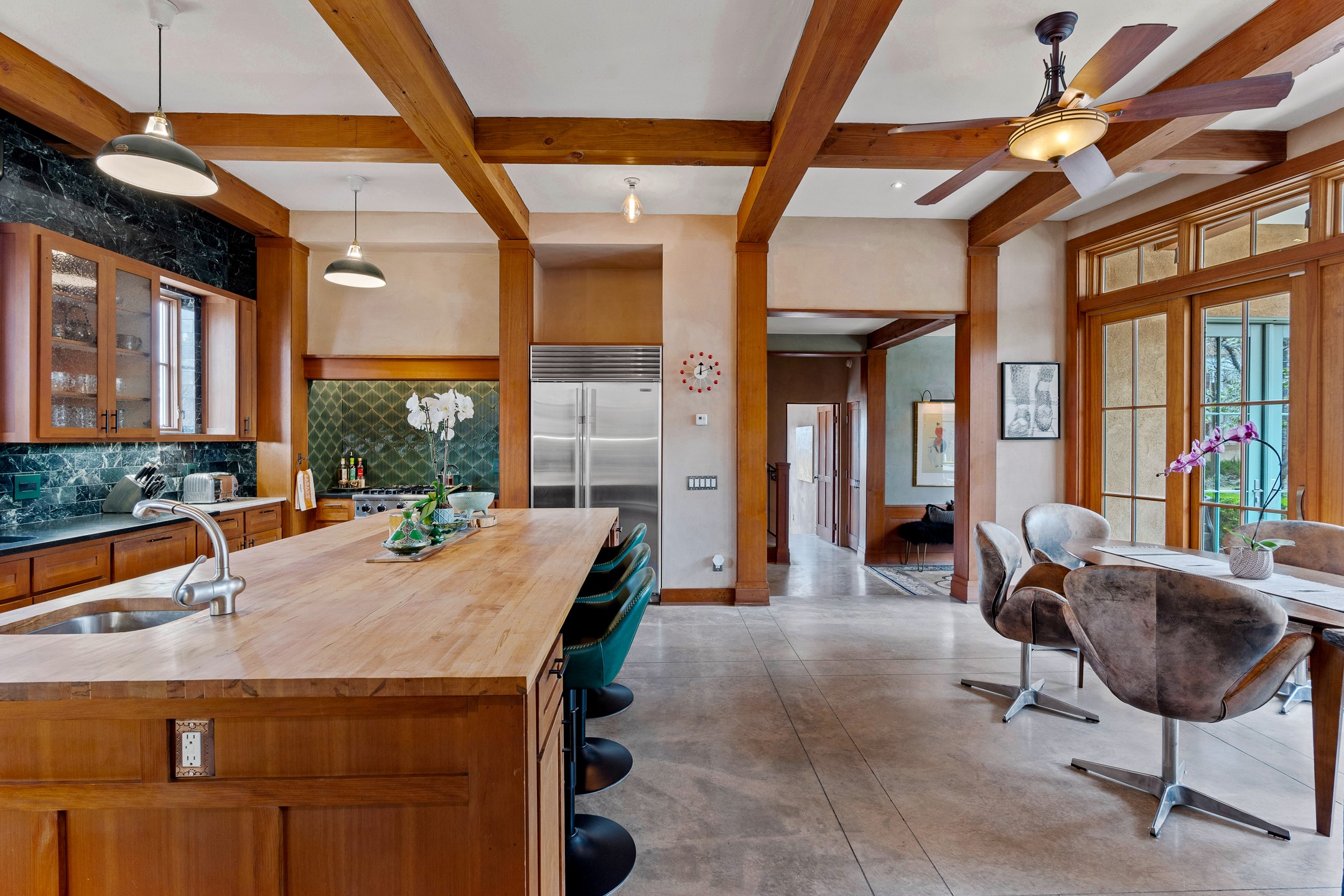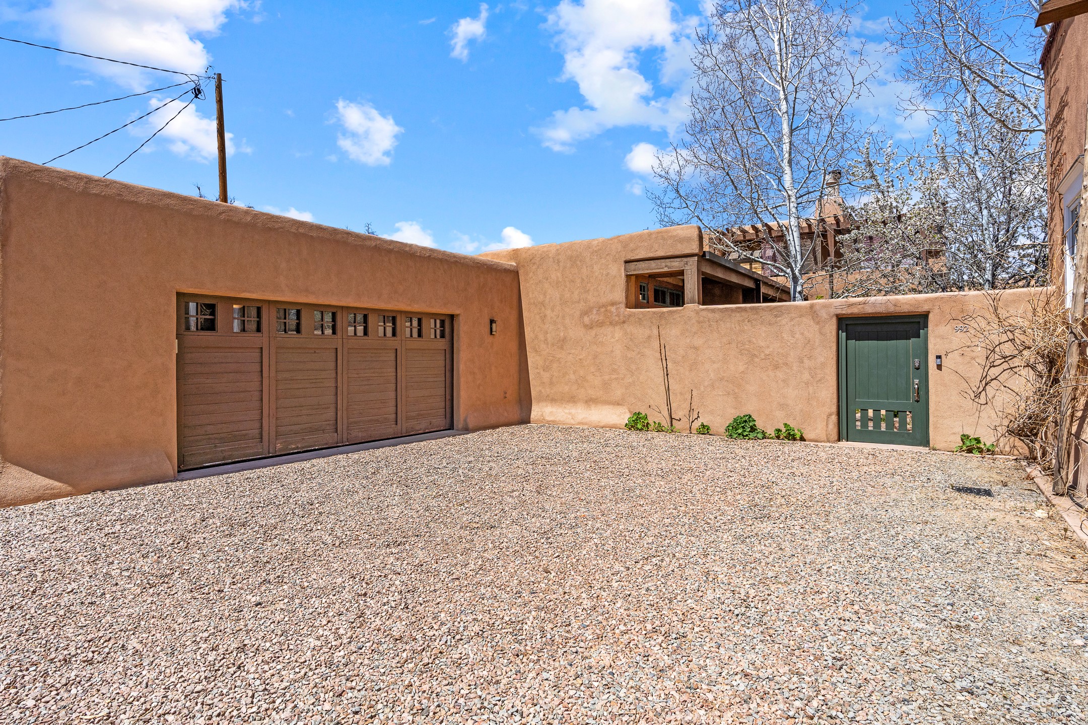 An Architectural & Design Masterpiece.A brilliant collaboration between renowned architect and designer has produced a serene, sophisticated sanctuary in one of Santa Fe's most desirable neighborhoods. This private, gated, 4-bedroom, 4-bath compound is located in the coveted Eastside along the Old Santa Fe trail just moments from the Plaza, Canyon Road, museums, shopping, and world-class dining. Recently elevated with extensive high-end upgrades, the property seamlessly blends quality craftsmanship with timeless elegance. Architectural highlights include soaring ceilings, natural American Clay plaster walls, Douglas Fir coffered wood beam ceilings, and dramatic floor-to-ceiling transom windows. Expertly curated lighting creates a warm and refined ambiance throughout. At the heart of the home is a stunning chef's kitchen--outfitted with a Subzero refrigerator and new Viking appliances--overlooking a beautifully landscaped central courtyard designed for effortless indoor/outdoor living. Each room opens to this verdant garden oasis featuring a tranquil waterfall fountain, lush greenery, alfresco dining, and multiple verandas for entertaining. The grand living and dining rooms are anchored by a natural stone fireplace and expansive glass doors that frame a courtyard garden with mature Wisteria, Aspen, and a stately Cherry tree. Upstairs, the luxurious primary suite offers breathtaking views of Picacho Peak and includes a spa-like bath with Jacuzzi tub, steam shower, dual vanities, and walk-in closet. The crown jewel: a private rooftop terrace with fireplace, cedar hot tub, sauna, and wrap-around deck--perfect for starry Santa Fe nights. Additional amenities include a 2.5-car garage, new mini splits, recessed lighting, designer tile work, and custom draperies. This property is currently part of a rare compound opportunity with 994 Old Pecos Trail next door. While both homes are offered individually, a buyer also has the unique opportunity to purchase them together and create an extraordinary multi-residence estate. (See listing #202501401.)