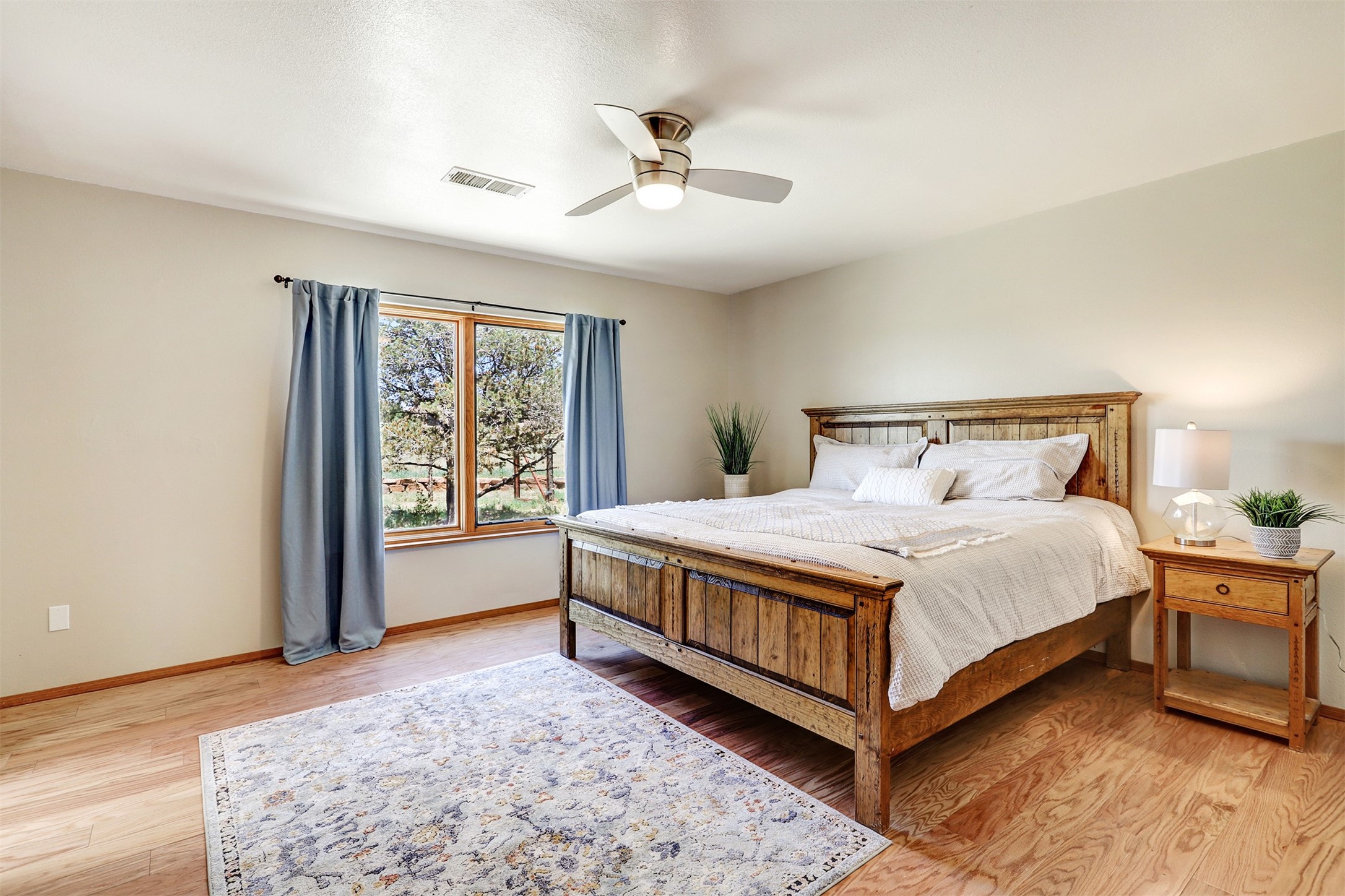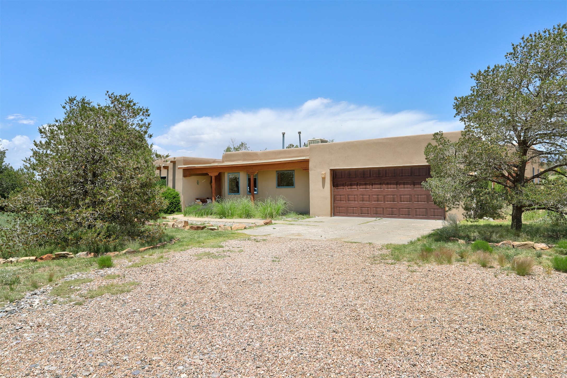 A serene lifestyle with flexible living spaces awaits in this beautifully maintained and move-in-ready 4-bedroom, 2-bathroom home with 2,082 sq ft of comfort and charm on 1.47 acres.Nestled in a peaceful, well-connected community, the property features a newly built 2024 studio with a TPO roof, ideal for a creative space, home office, or fitness room. Inside the main home, enjoy the warmth of all-new wood flooring, fresh paint, and updates including newer windows, a water heater, and a full exterior stucco refresh in 2017. The open layout centers around a cozy, efficient pellet stove - both charming and practical during cooler months.Step outside to a spacious covered portal perfect for entertaining or relaxing outdoors. The fenced yard provides pet security, while the large lot offers ample space for gardening, growing, or simply enjoying the outdoors.Just minutes from the community pool, tennis courts, dog park, library, local shops, dining, and scenic walking trails. With quick access to downtown Santa Fe, you'll enjoy privacy with urban convenience.Don't miss your chance to own this versatile and inviting property - schedule your showing today!