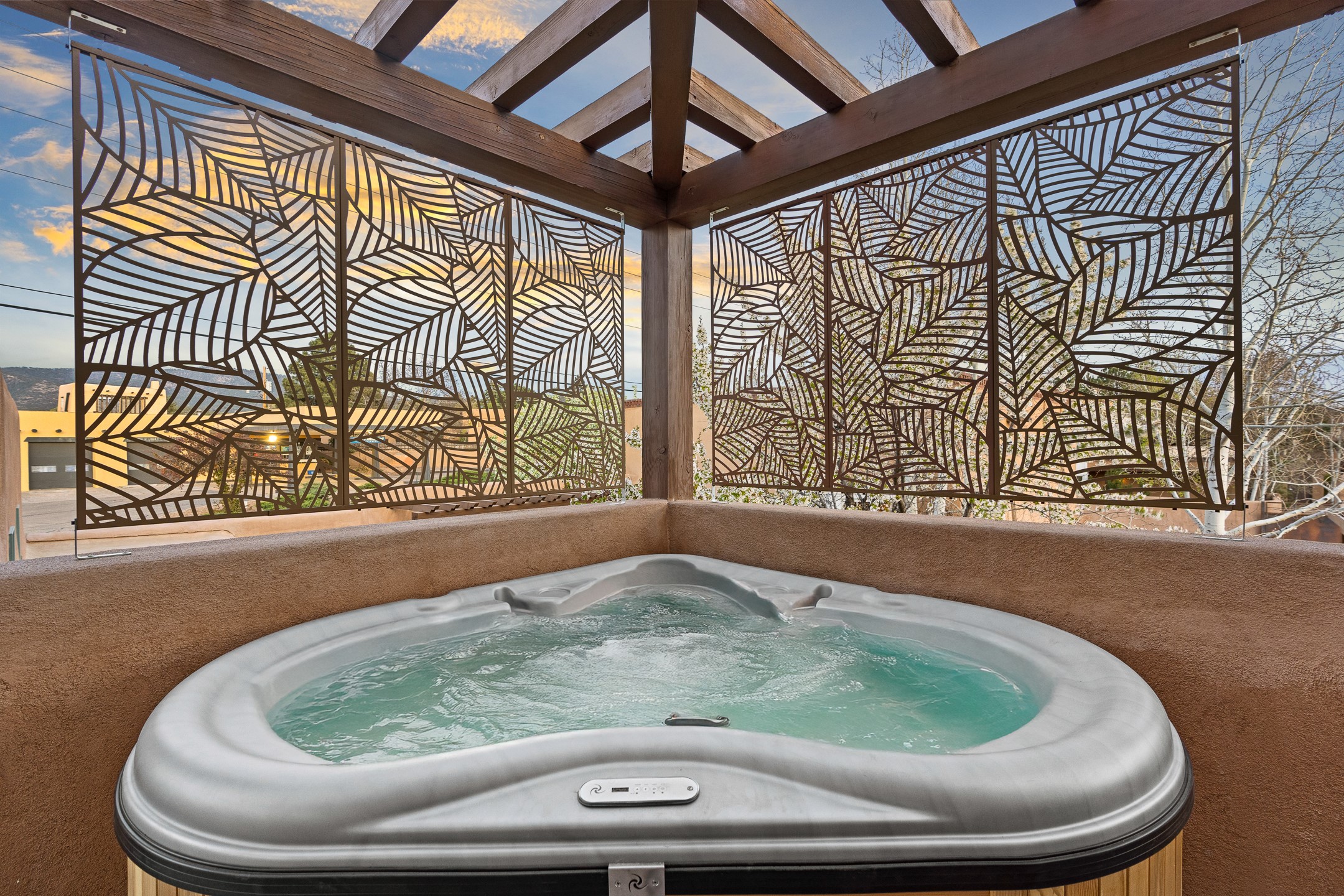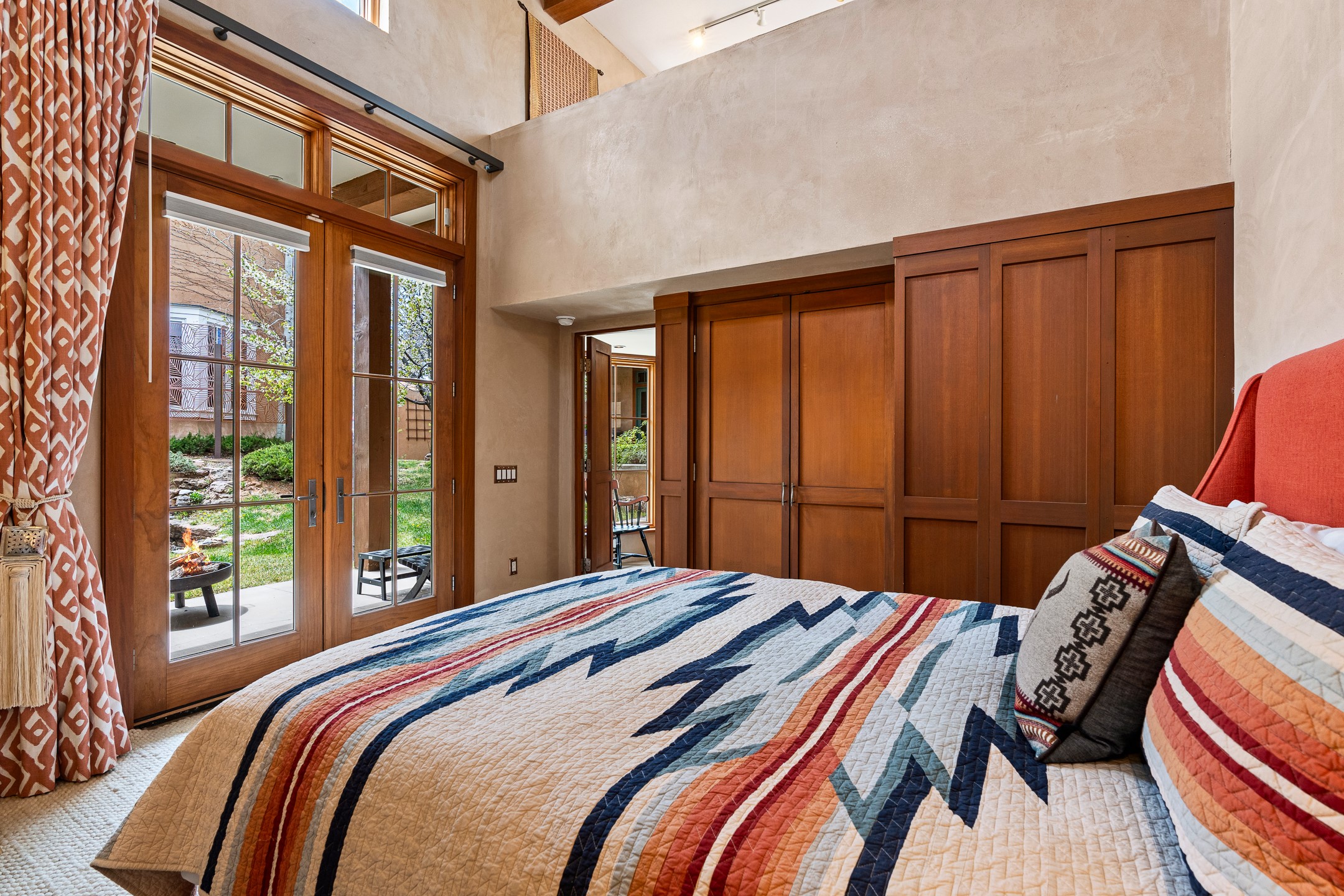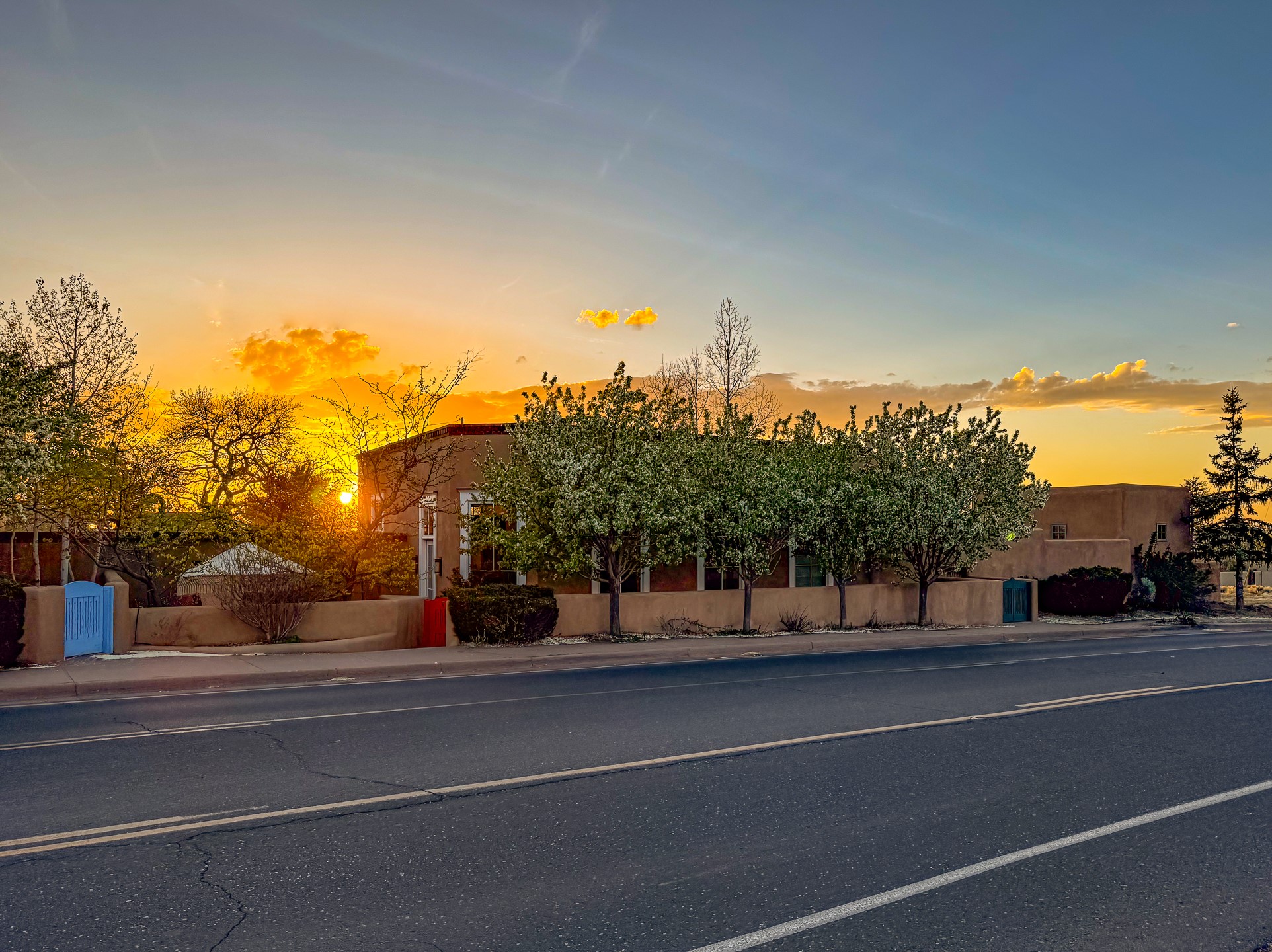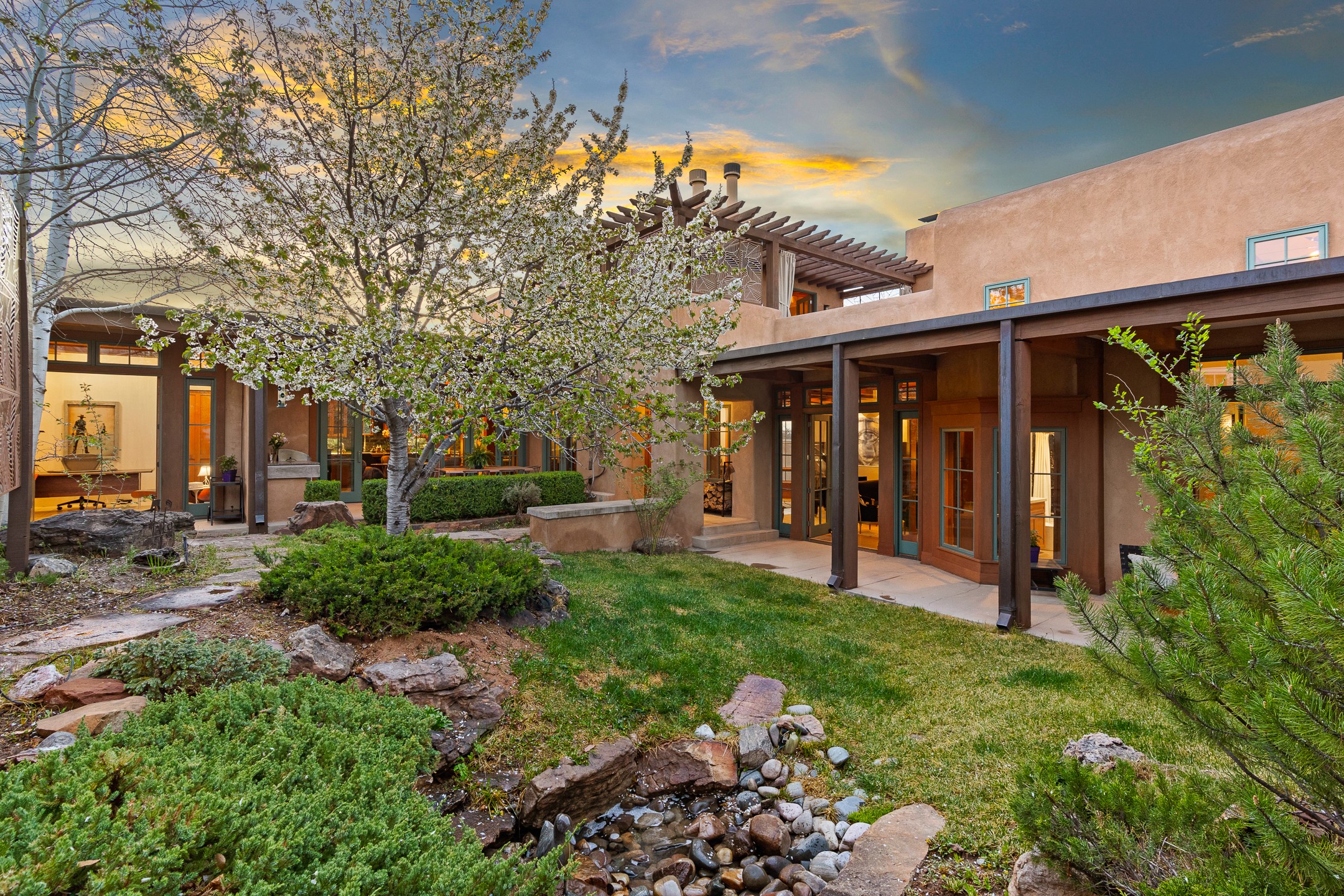 A rare and refined offering in the heart of Santa Fe, this extraordinary 6-bedroom, 6-bath gated compound is a seamless blend of architectural brilliance, design sophistication, and functional versatility. Encompassing two distinctive yet complementary residences, this private estate is nestled in the coveted South Capitol and Eastside neighborhoods--just moments from the Plaza, Canyon Road, museums, and Santa Fe's world-class dining and shopping.The main residence is a serene 4-bedroom, 4-bath sanctuary where timeless elegance meets exceptional craftsmanship. Soaring ceilings, natural American Clay plaster walls, and Douglas Fir coffered wood beam ceilings enhance the grand interiors, while floor-to-ceiling transom windows invite in abundant light. The stunning chef's kitchen--complete with Subzero refrigerator and new Viking appliances--opens to a beautifully landscaped central courtyard with a tranquil waterfall fountain, lush gardens, alfresco dining areas, and multiple verandas perfect for entertaining.The gracious living and dining rooms are anchored by a natural stone fireplace and expansive glass doors overlooking a verdant courtyard adorned with mature Wisteria, Aspen, and Cherry trees. Upstairs, the luxurious primary suite features breathtaking views of Picacho Peak, a spa-like bathroom with Jacuzzi tub, steam shower, and private rooftop terrace with fireplace, cedar hot tub, sauna, and wrap-around deck.The adjacent property, designed by an architect for both residential and commercial use, adds a flexible 2-3 bedroom, 2-bath layout ideal for live/work functionality, a creative studio, or income-generating rental. It features 12-foot ceilings, expansive windows, radiant in-floor heating, mini split A/C systems, a modern kitchen with polished granite countertops, and a spacious open-concept living area.Together, these two properties form a unique and cohesive compound with separate utility metering, multiple private entrances, 2.5-car garage plus two additional parking spaces, and the rare opportunity to live, work, and entertain in one of Santa Fe's most desirable locations. Whether as a private estate, multi-generational retreat, or mixed-use investment, this compound is a true Santa Fe masterpiece.These properties may be purchased together as a compound or separately. For individual details, please see listing MLS# 202501407 and MLS# 202501401.