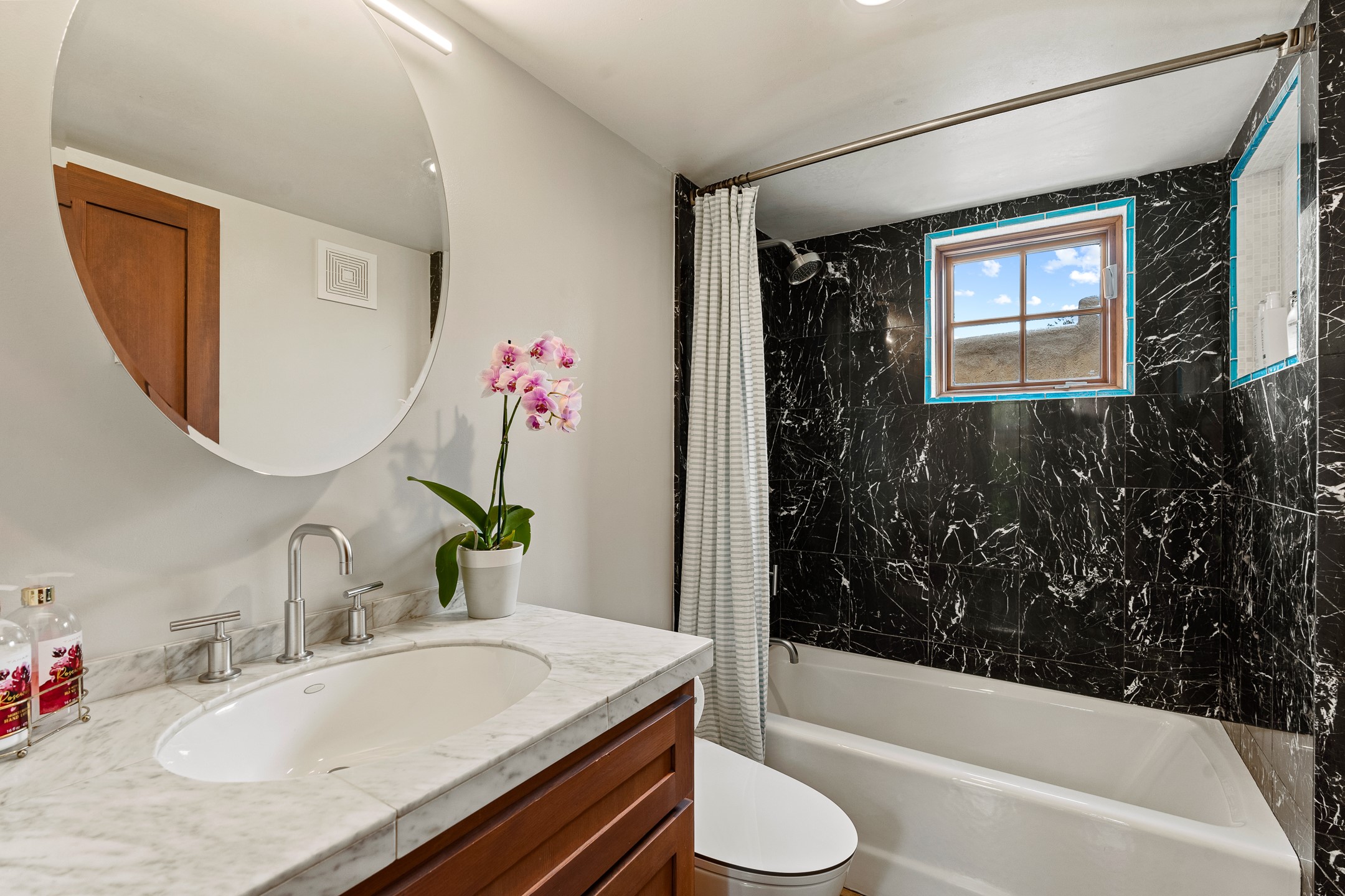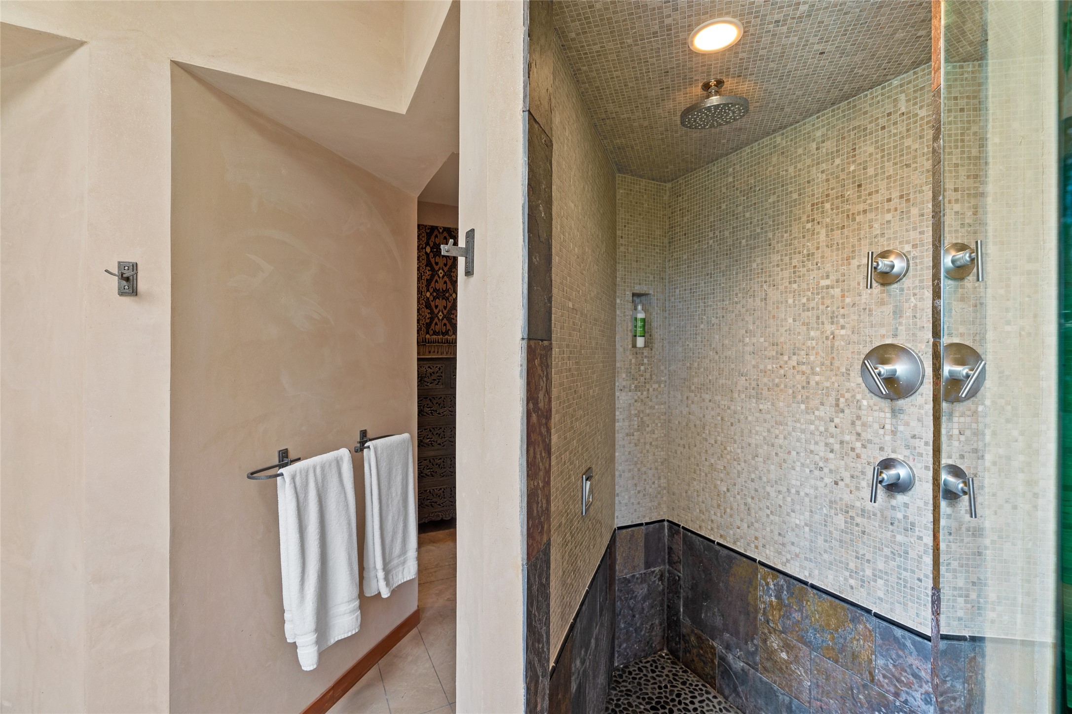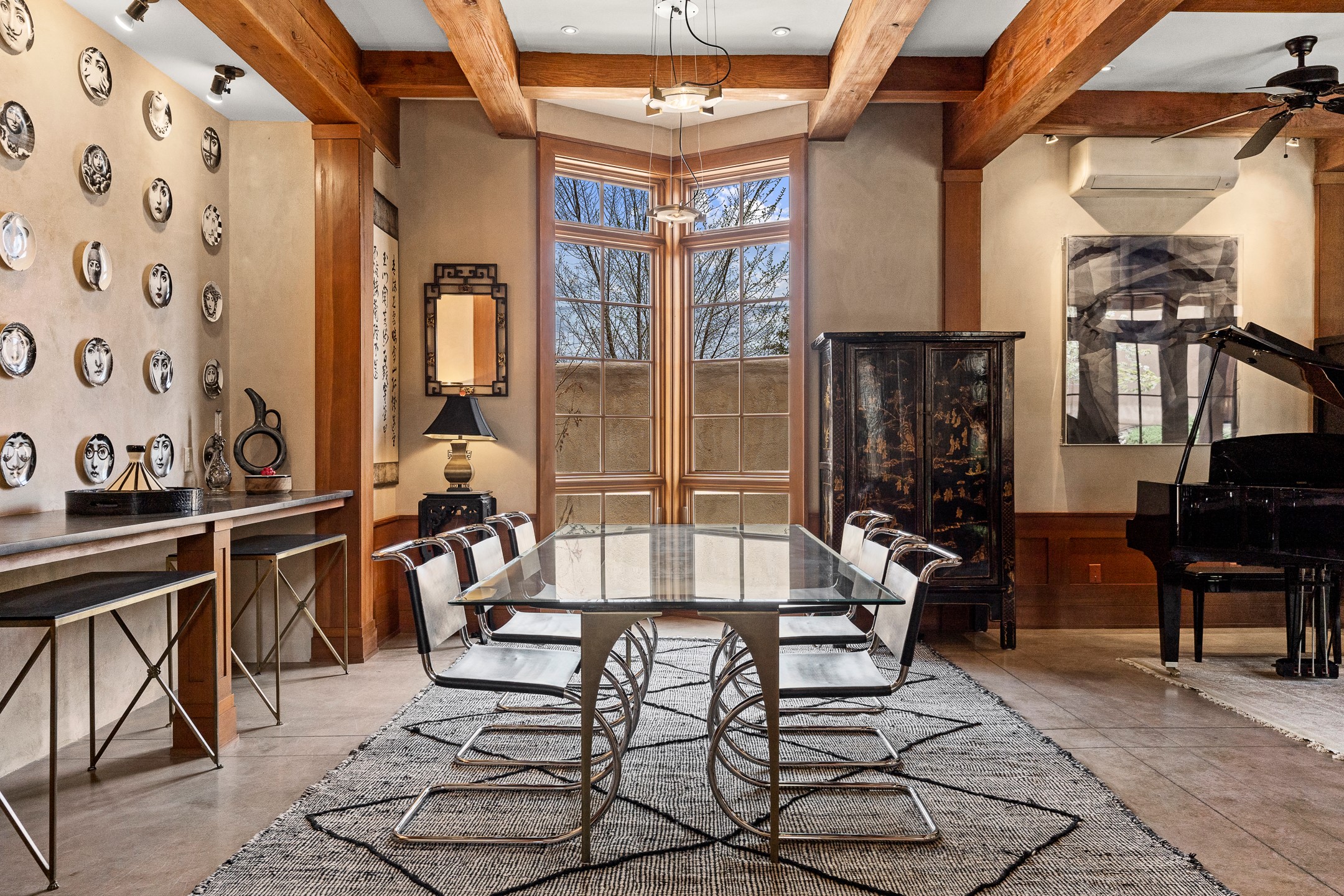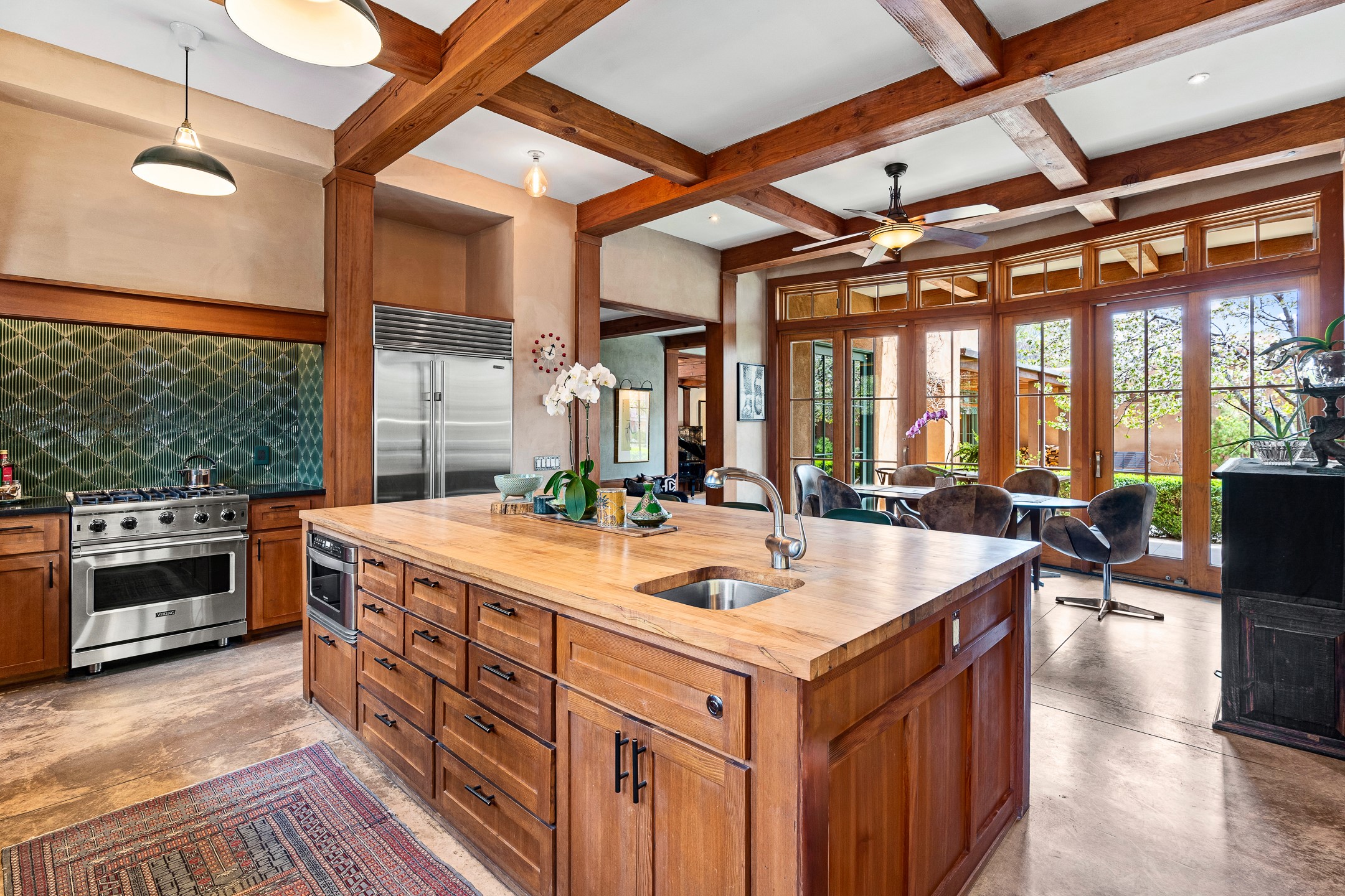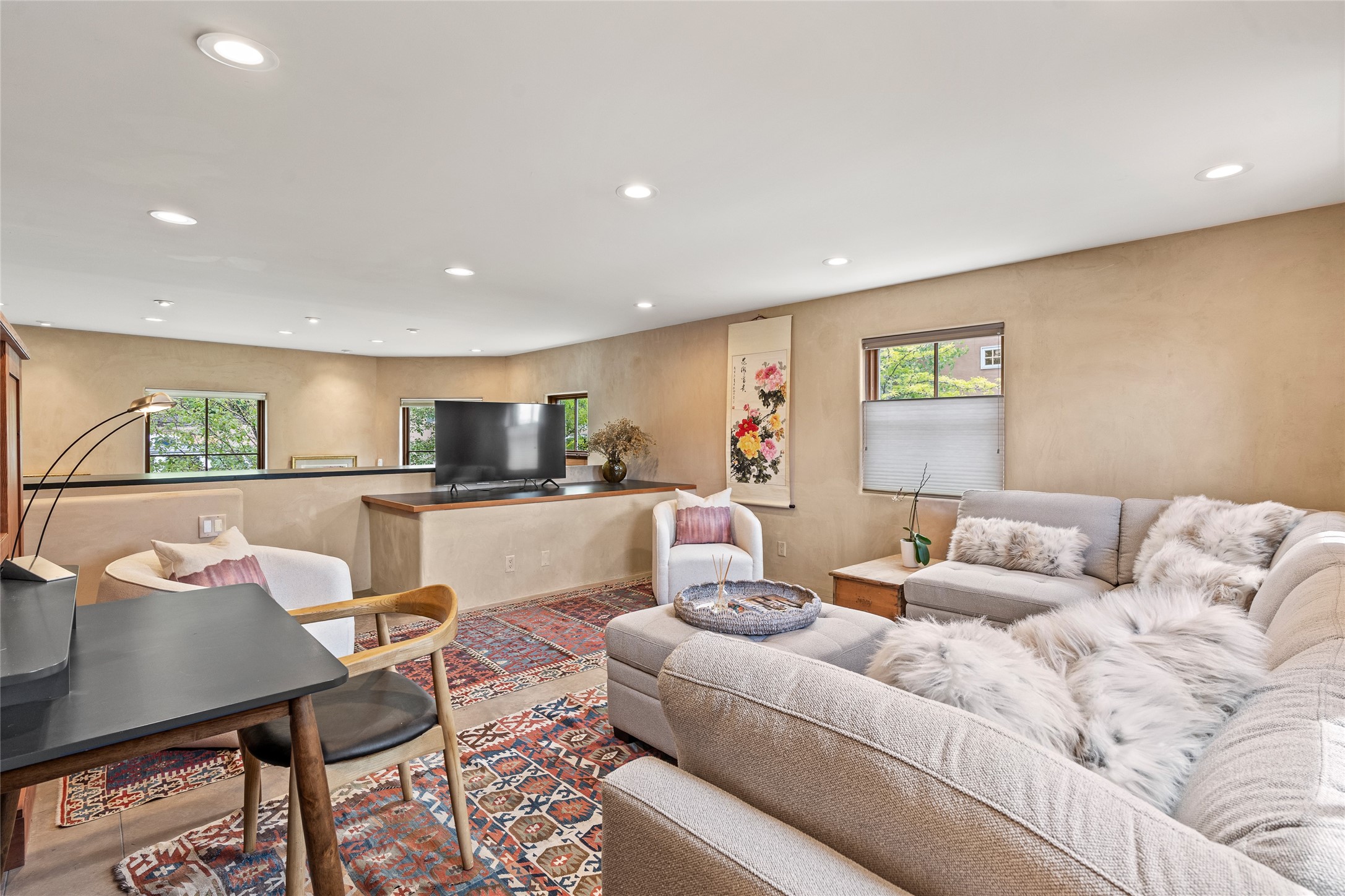 A rare and refined offering in the heart of Santa Fe, this extraordinary 6-bedroom, 6-bath gated compound is a seamless blend of architectural brilliance, design sophistication, and functional versatility. Encompassing two distinctive yet complementary residences, this private estate is nestled in the coveted South Capitol and Eastside neighborhoods--just moments from the Plaza, Canyon Road, museums, and Santa Fe's world-class dining and shopping.The main residence is a serene 4-bedroom, 4-bath sanctuary where timeless elegance meets exceptional craftsmanship. Soaring ceilings, natural American Clay plaster walls, and Douglas Fir coffered wood beam ceilings enhance the grand interiors, while floor-to-ceiling transom windows invite in abundant light. The stunning chef's kitchen--complete with Subzero refrigerator and new Viking appliances--opens to a beautifully landscaped central courtyard with a tranquil waterfall fountain, lush gardens, alfresco dining areas, and multiple verandas perfect for entertaining.The gracious living and dining rooms are anchored by a natural stone fireplace and expansive glass doors overlooking a verdant courtyard adorned with mature Wisteria, Aspen, and Cherry trees. Upstairs, the luxurious primary suite features breathtaking views of Picacho Peak, a spa-like bathroom with Jacuzzi tub, steam shower, and private rooftop terrace with fireplace, cedar hot tub, sauna, and wrap-around deck.The adjacent property, designed by an architect for both residential and commercial use, adds a flexible 2-3 bedroom, 2-bath layout ideal for live/work functionality, a creative studio, or income-generating rental. It features 12-foot ceilings, expansive windows, radiant in-floor heating, mini split A/C systems, a modern kitchen with polished granite countertops, and a spacious open-concept living area.Together, these two properties form a unique and cohesive compound with separate utility metering, multiple private entrances, 2.5-car garage plus two additional parking spaces, and the rare opportunity to live, work, and entertain in one of Santa Fe's most desirable locations. Whether as a private estate, multi-generational retreat, or mixed-use investment, this compound is a true Santa Fe masterpiece.These properties may be purchased together as a compound or separately. For individual details, please see listing MLS# 202501407 and MLS# 202501401.