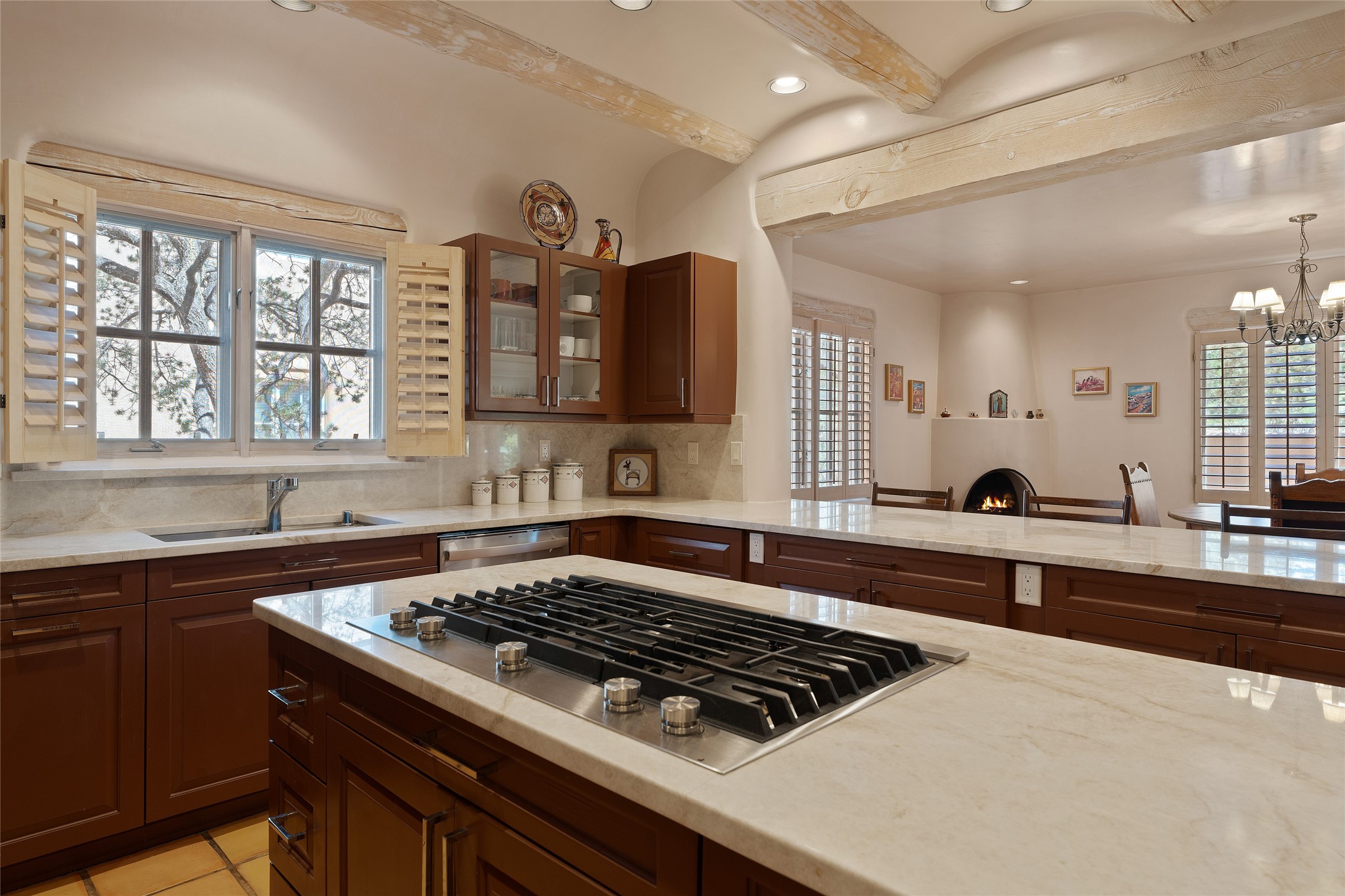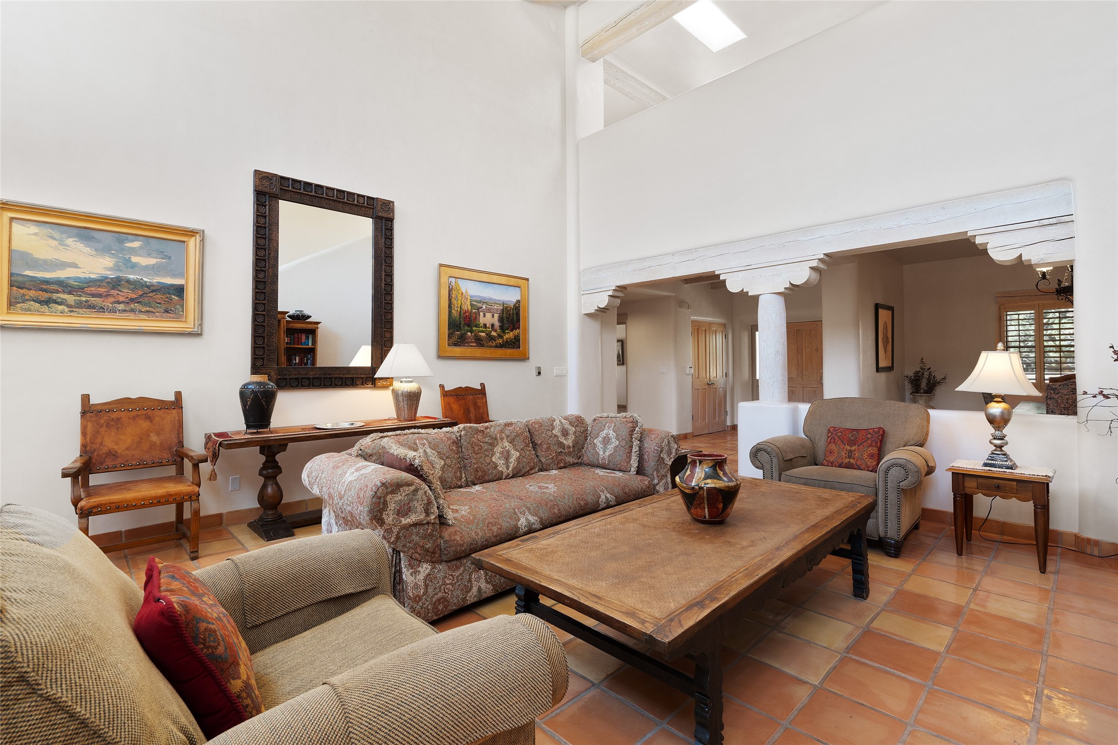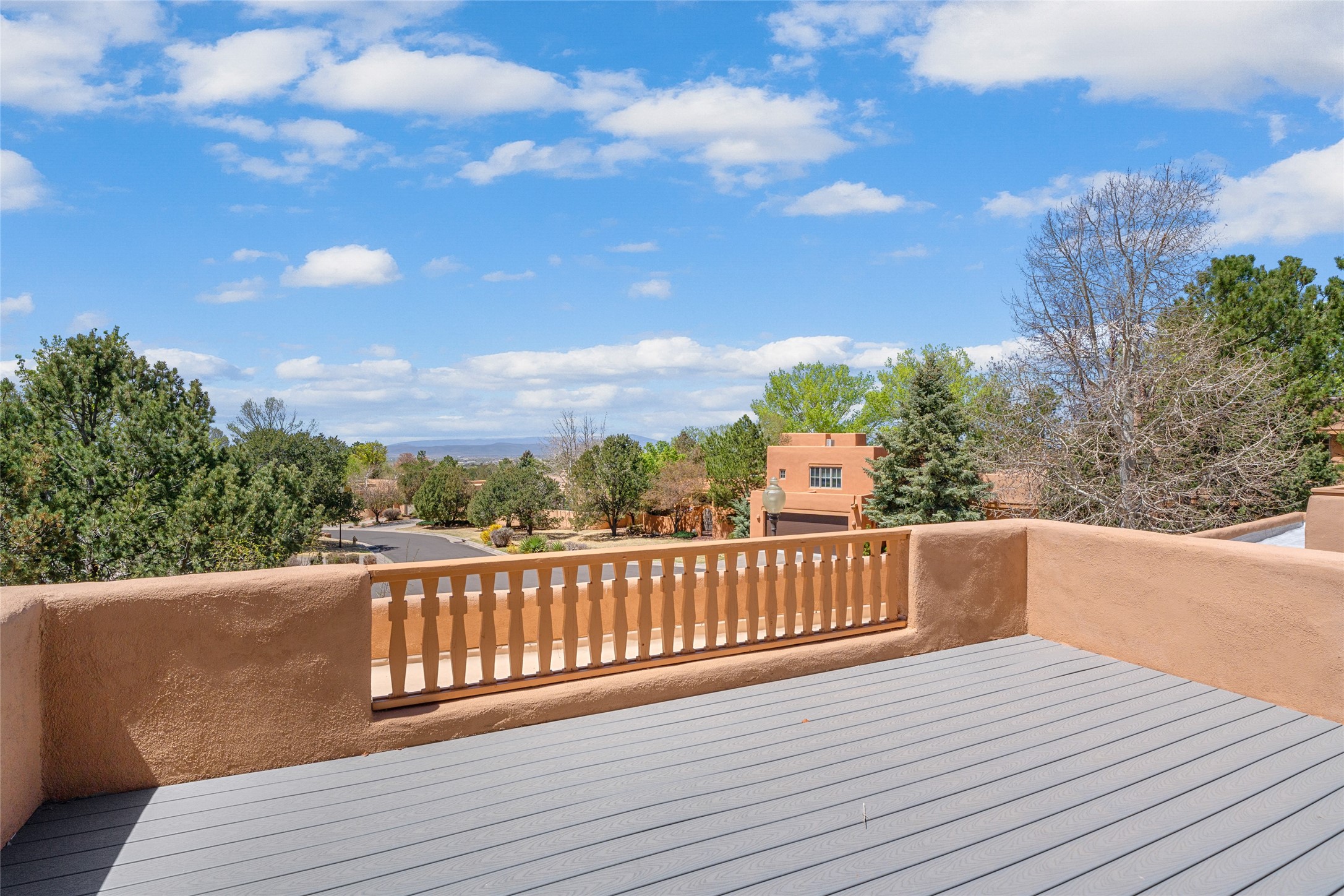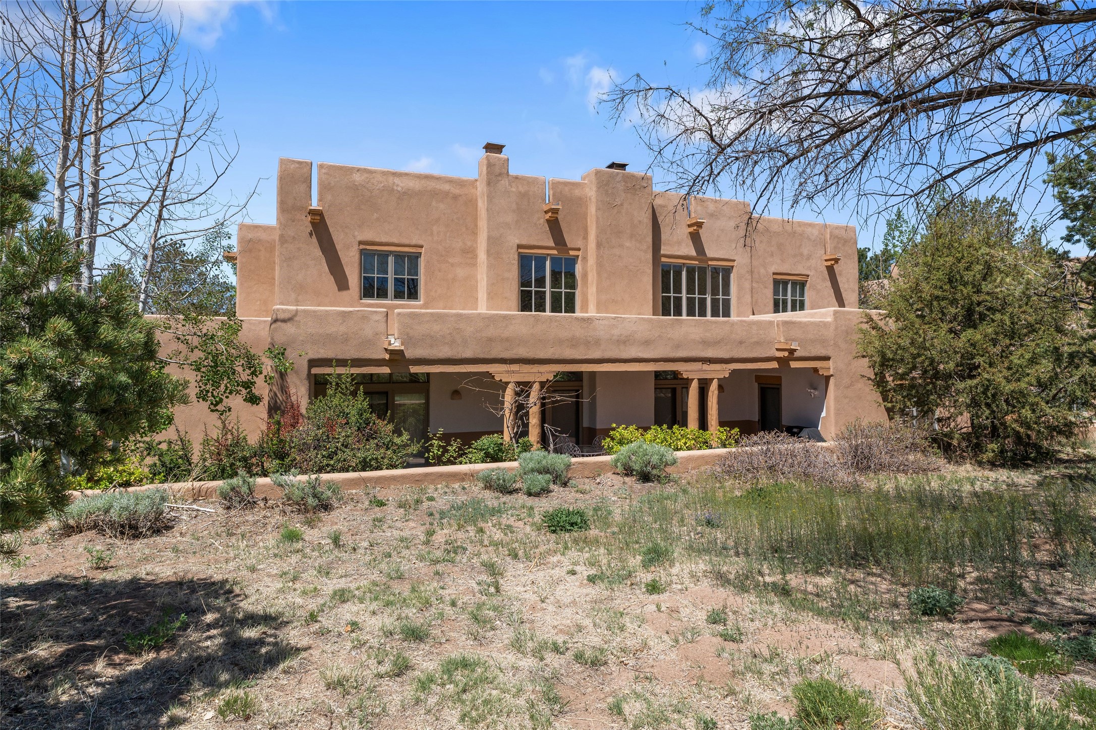 Welcome to abundant light and superb accommodation. This four bedroom 4 1/2 bathroom condo is ideally designed to meet all your living and entertaining needs with the lower level showcasing elegant tall ceilings, a spacious eat in kitchen that has been tastefully updated, a grand primary bedroom with ample bathroom, an en suite guest bedroom and alluring dining and living areas. The second level continues to impress with a large den featuring two separate terraces highlighting our famous western skies and two large bedrooms and bathrooms sure to assist with all your lifestyle desires. Quality updates and finishes throughout and located on the fourth fairway with a peaceful back portal to take in serene morning sunrises and satisfying golf course and nature views. This grand detached condo is situated at the end of a cul de sac providing plenty of quiet while in the midst of Santa Fe's premier condominium community. Home ownership comes with all of Quail Run's amenities including multiple fitness classes, engaging 9 hole golf course complete with golf pro shop, beautiful indoor pool with hot tub and full locker rooms, plenty of pickleball and tennis, state of the art workout areas, all with 24 hour hosted security and delightful grounds. Come and see!