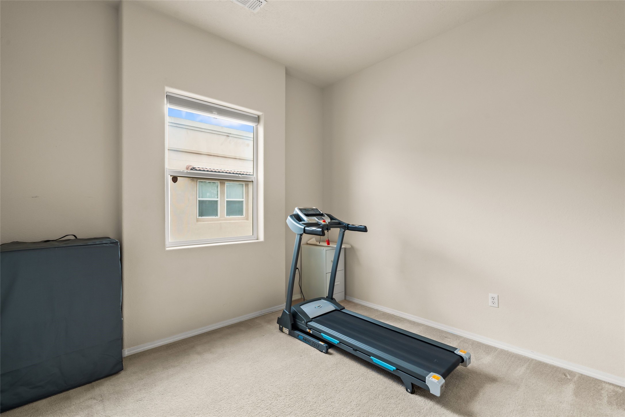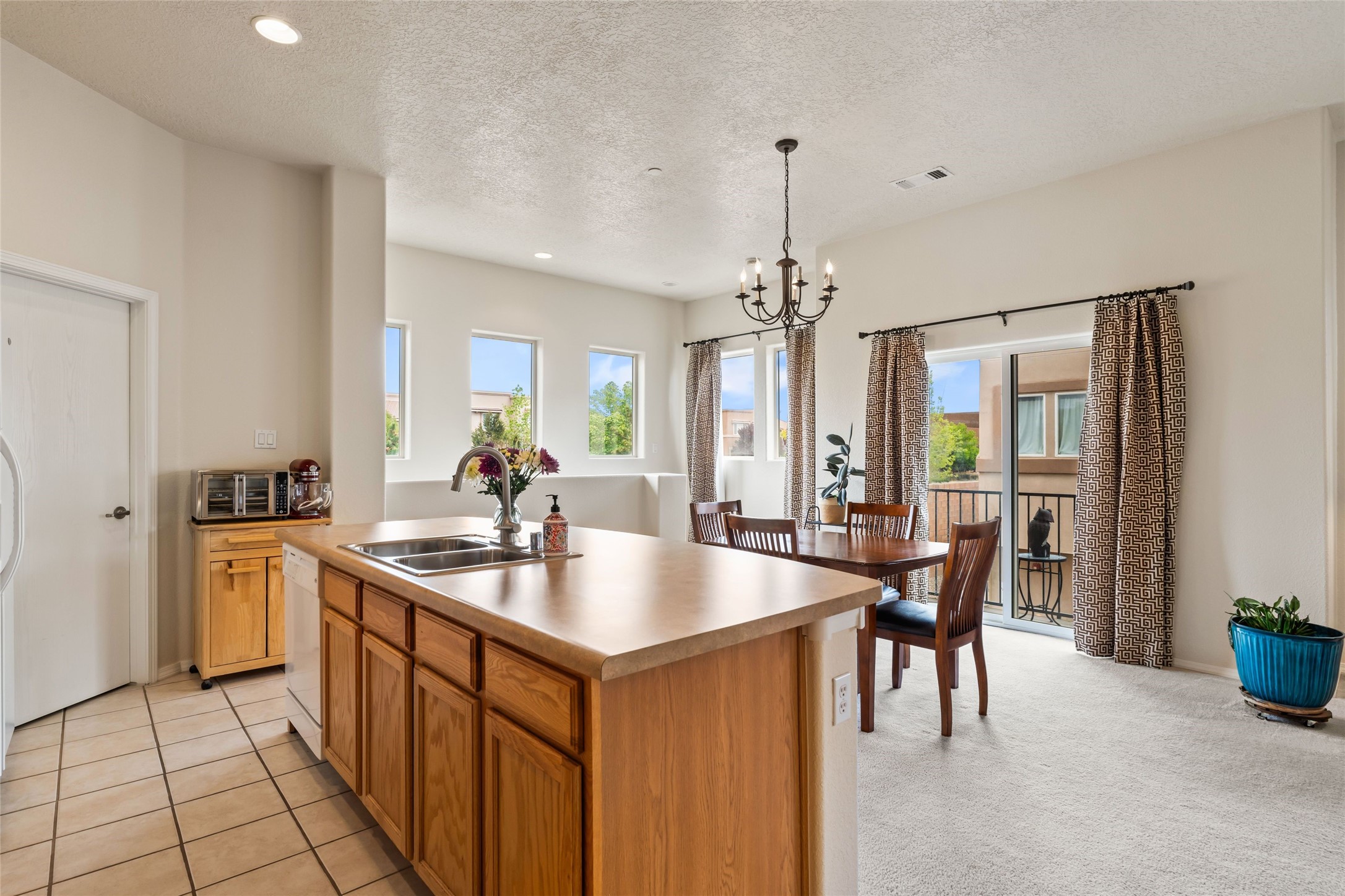 You are going to love this executive-style top-floor condo in Santa Fe's desirable Ranchos Santos community! Whether you're seeking the perfect starter home or a stylish lock-and-leave retreat, this home offers comfort, convenience, and modern flair. Built in 2008, this sun-drenched 2-bedroom, 2-bath sanctuary crowns the building with the premium advantages of top-floor living--soaring ceilings and abundant natural light flooding through well-placed windows.The thoughtfully designed open-concept living space flows seamlessly to a charming Juliet balcony, perfect for enjoying morning coffee in the abundant Santa Fe sunshine. The well-appointed kitchen features a spacious layout with a large pantry--ideal for any home chef. The generous primary suite pampers with spa-inspired amenities, including a full ensuite bath and walk-in closet.Additional highlights include carpet and tile flooring throughout, forced air heating with central refrigerated air, and the convenience of a finished one-car garage with interior stair access. All appliances convey, including dishwasher, range/oven, refrigerator, washer and dryer, making this a truly turnkey retreat.Tucked away on a quiet cul-de-sac yet conveniently positioned, this home offers a serene retreat while remaining ideally located for modern living. Easy access to Highway 599 makes commuting effortless, while nearby San Isidro Village Park provides the perfect spot for children and pets with its playground and open grass areas. You're also close to great Southside shopping.HOA dues of just $240/monthly cover exterior maintenance and insurance--providing peace of mind and a low-maintenance lifestyle. Special Incentive: With a full-priced offer, the seller will pre-pay 12 months of HOA fees for the new owner (a $2,880 value)! Back on the market, not due to any issue with the property or seller. Previous contract fell through due to a buyer-contingency that was not satisfied. New offers welcome!