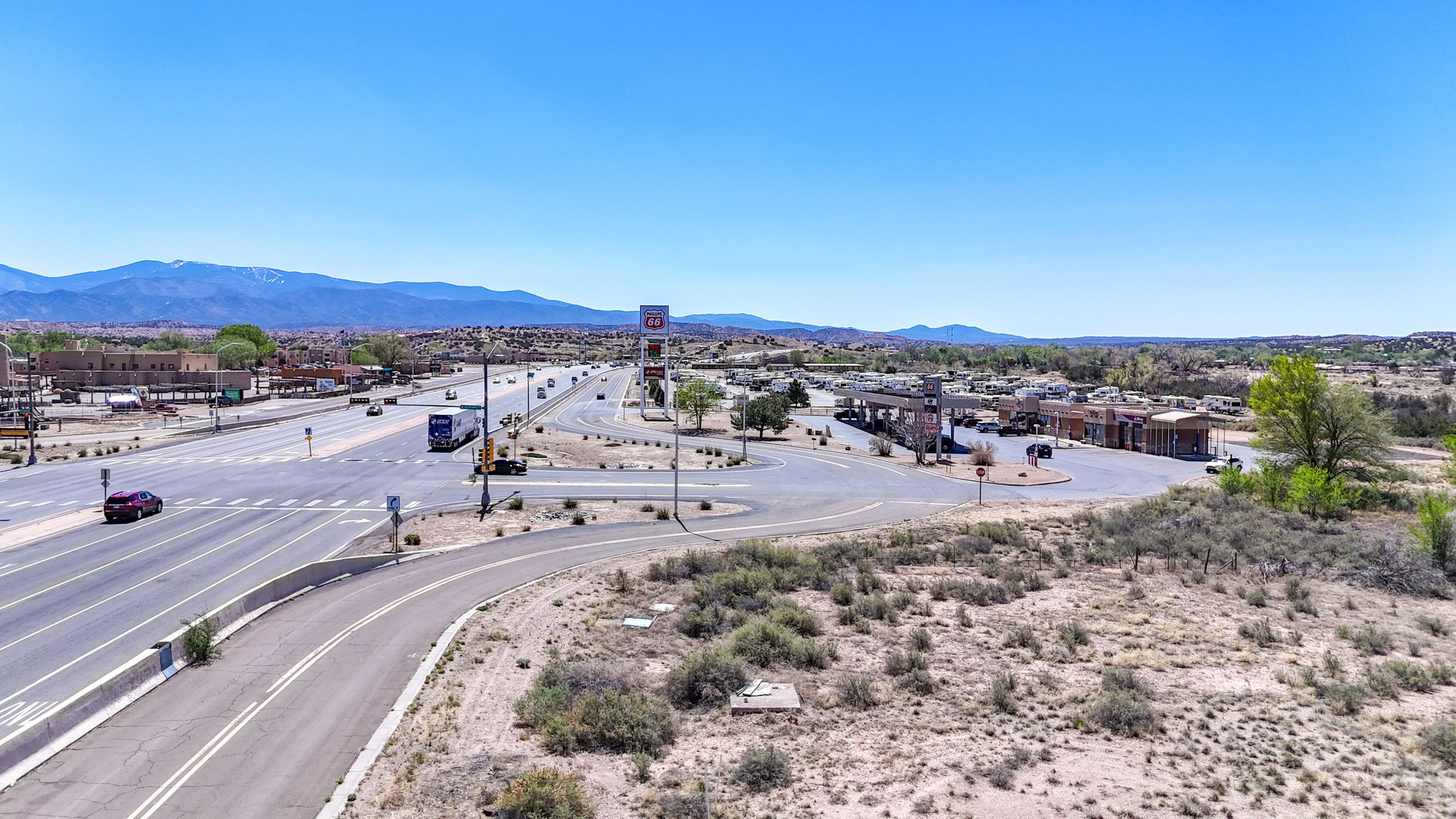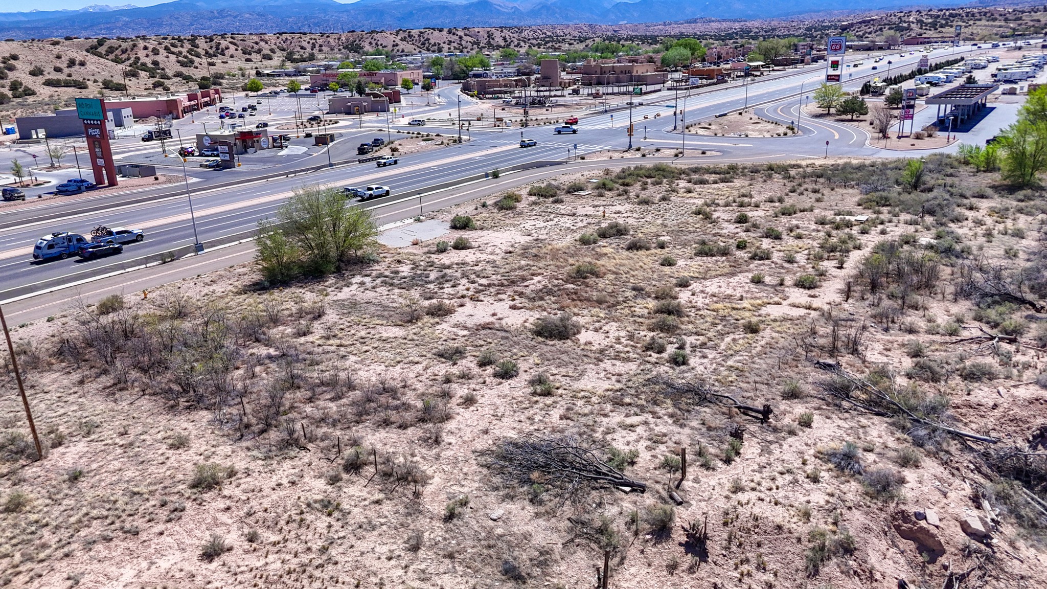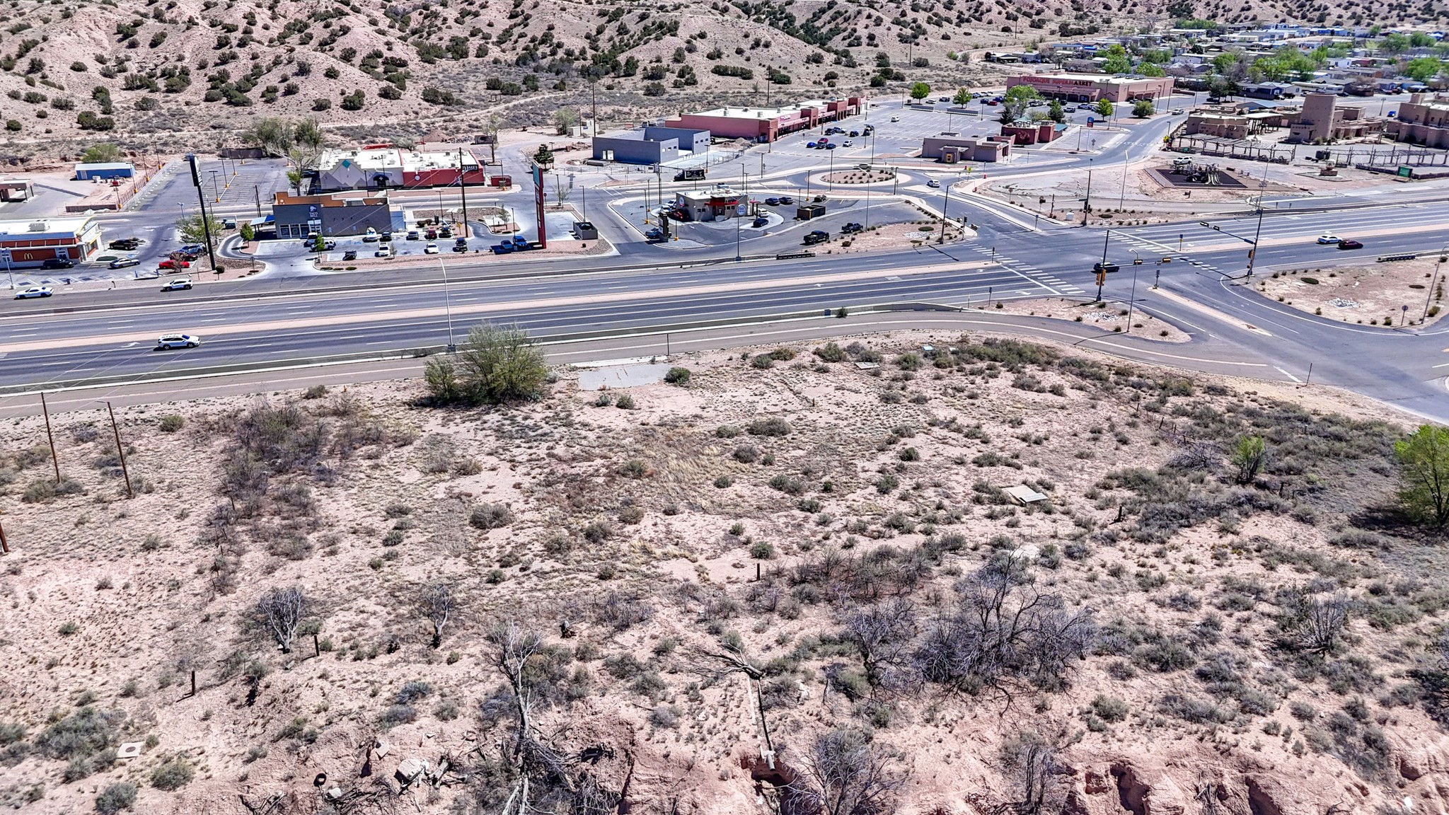 Here is a fantastic opportunity to own a rare piece of property with many commercial zoning uses allowed. This location and 1.12 acre parcel offers high visibility and great accessibility being just off of 84/285 right in the heart of Pojoaque's business district. Electricity and natural gas to lot. Approximately a 15-20 minute drive to Los Alamos and Santa Fe. This land is surrounded by Pojoaque Tribal Lands. Come and make your development dreams come true on this rare location and offering today.