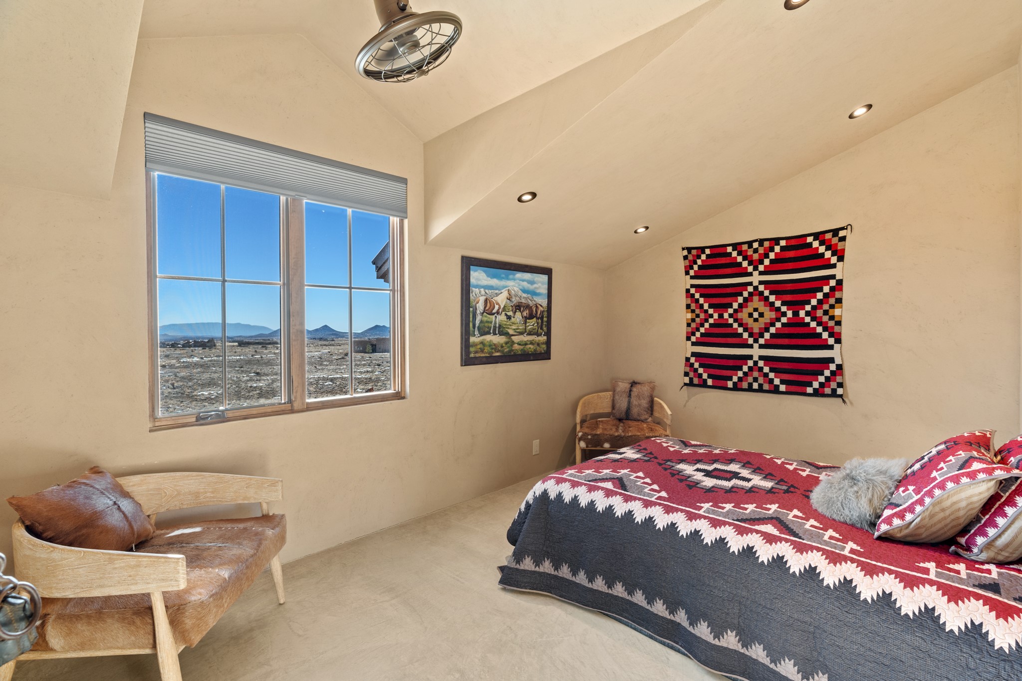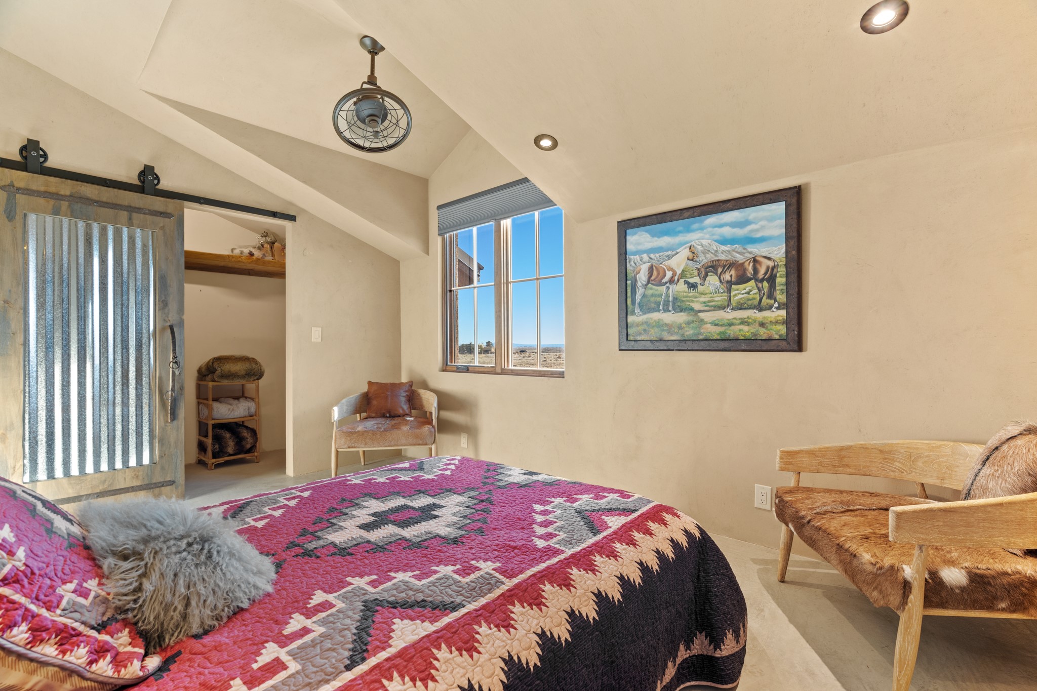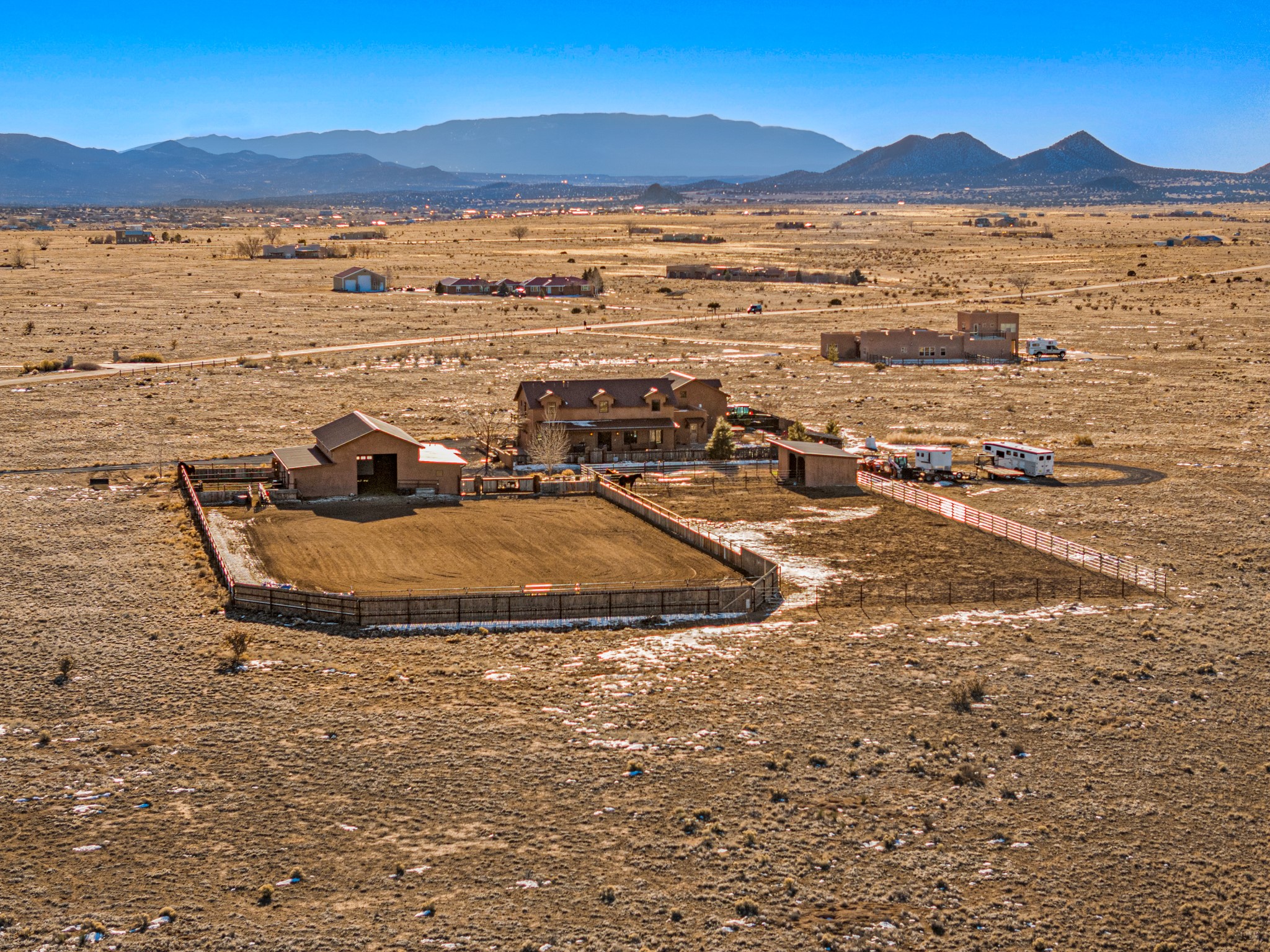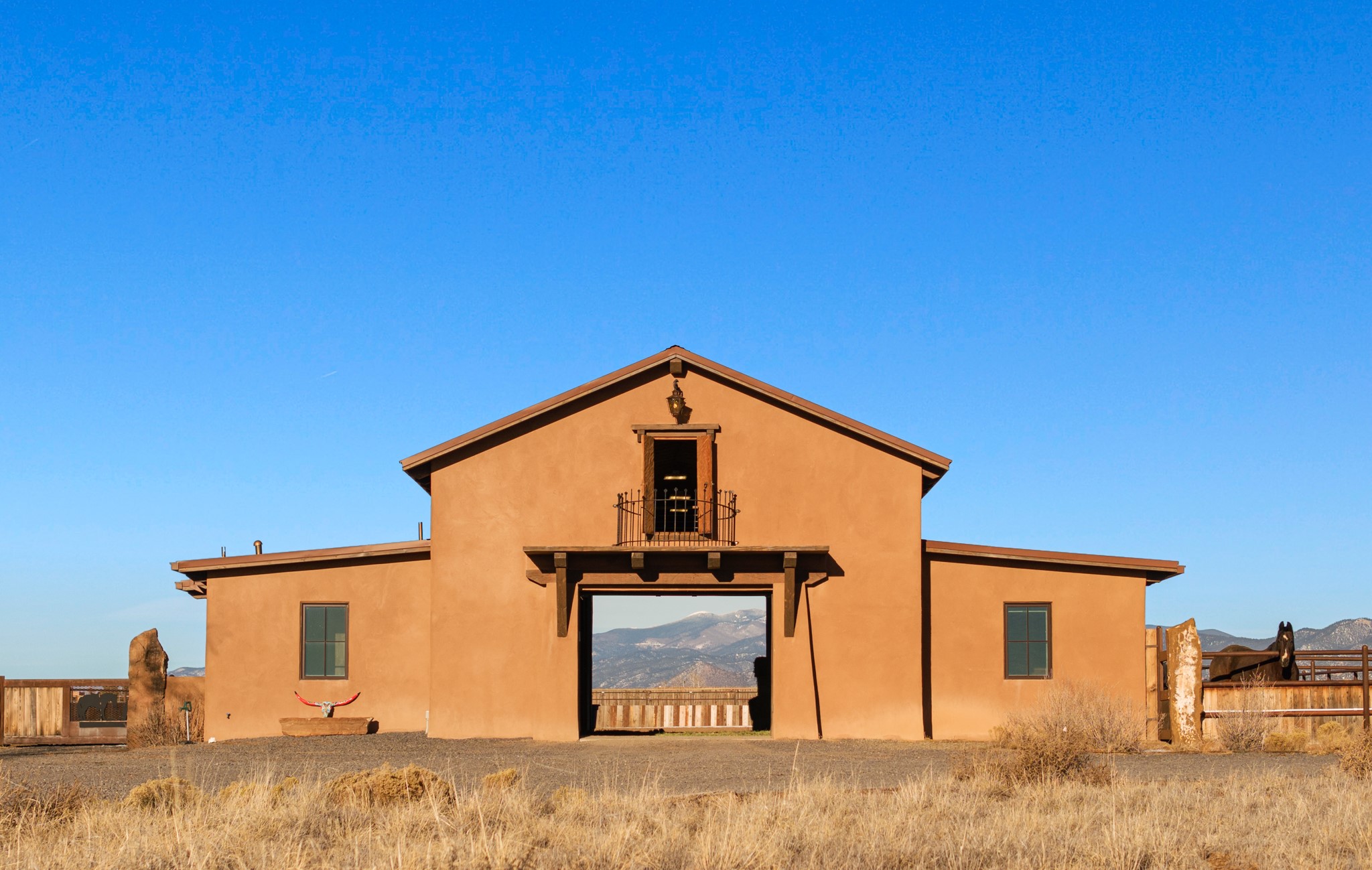 Back on Market- No Fault of Seller or Property! Welcome to Rancho San Marcos and this exquisite horse property. Where refined living meets the allure of this custom-built home on 15 acres with 360 degree views. Tailored for open-concept living, this residence is an entertainer's dream. The chef's kitchen, boasting a Viking Range, granite countertops, wine fridge, and walk-in pantry, invites you to unleash your culinary creativity. The main floor features an open dining/living area with high ceilings, large windows to capture the views and natural light. The primary bedroom is on the main floor with 2 walk-in closets, a spacious bathroom featuring a walk-in shower, and a serene soaking tub. Upstairs, two additional bedrooms and an open loft await. The oversized heated 2-car garage showcases a 700 sq ft open loft area. Your cherished equine companions are luxuriously accommodated in a 2448 sq ft barn with 2 indoor/outdoor stalls & turnouts, 1 indoor stall, hay storage, 1/2 bathroom, overhead door on the east side is large enough to accommodate an RV, offering convenient, out-of-the-weather storage for your motorhome or large recreational equipment. Inside, the barn provides ample room for livestock, equipment, or additional workshop space with excellent ventilation, and easy access to an expansive riding arena approximately 130X200. Adjacent to the riding arena is an additional 16X30 stall, 10X16 bird house with windows and 75X180 corral. Don't miss the opportunity to make this remarkable property your own, where elegance and equestrian excellence seamlessly come together. Within the gated subdivision you will find riding trails, a round pen and riding arena for use.