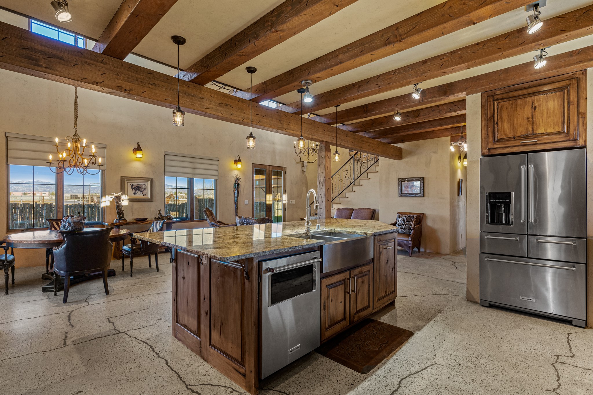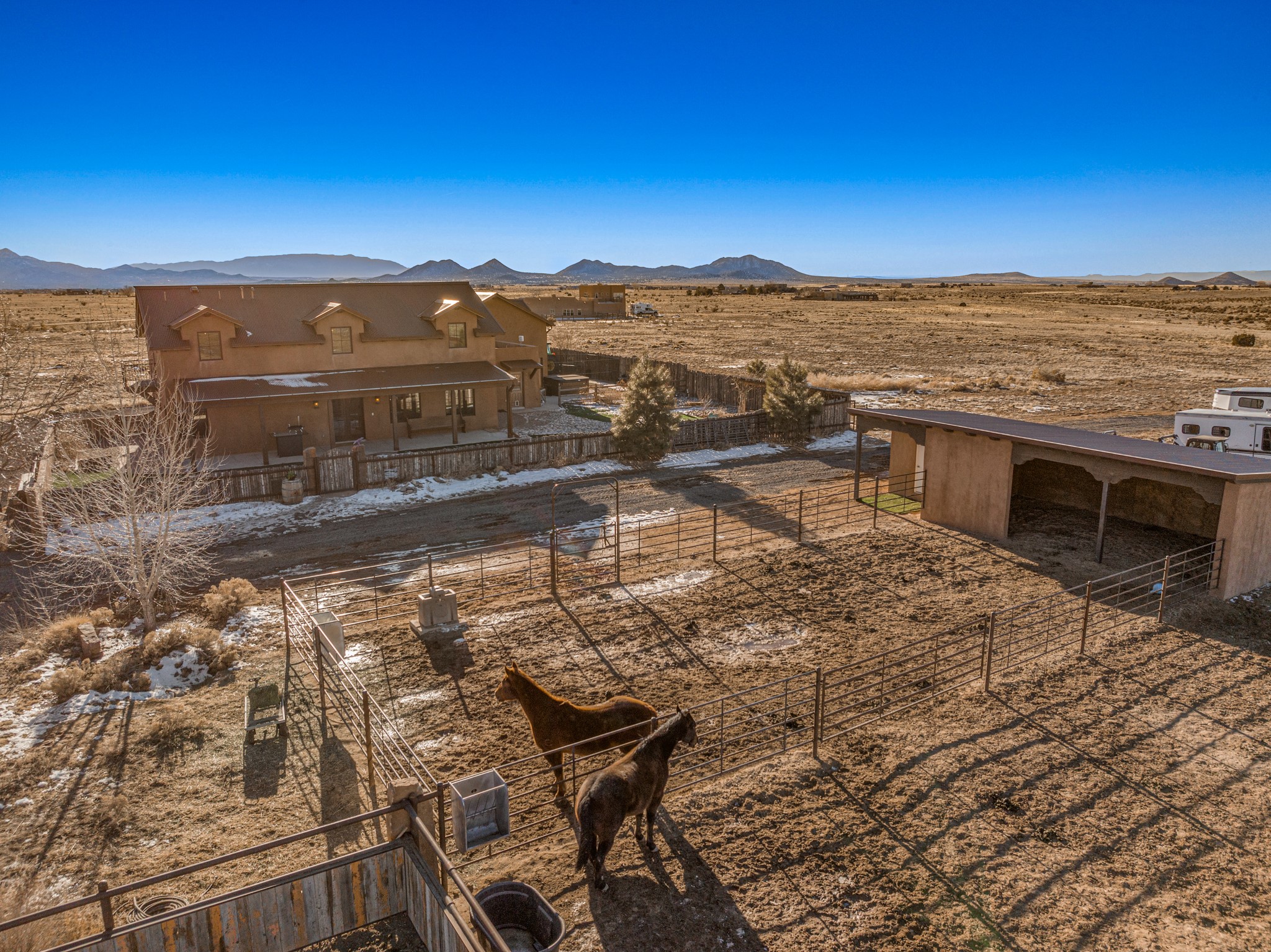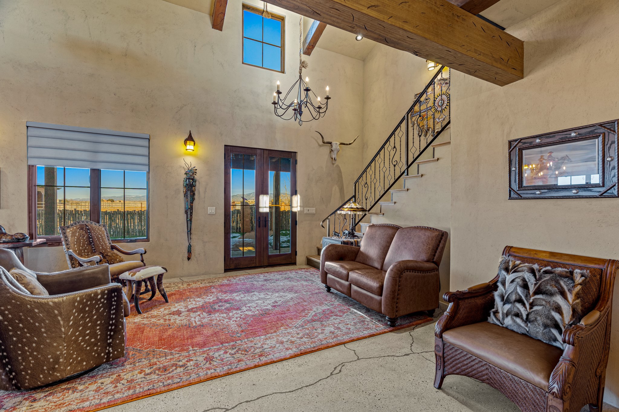 Back on Market- No Fault of Seller or Property! Welcome to Rancho San Marcos and this exquisite horse property. Where refined living meets the allure of this custom-built home on 15 acres with 360 degree views. Tailored for open-concept living, this residence is an entertainer's dream. The chef's kitchen, boasting a Viking Range, granite countertops, wine fridge, and walk-in pantry, invites you to unleash your culinary creativity. The main floor features an open dining/living area with high ceilings, large windows to capture the views and natural light. The primary bedroom is on the main floor with 2 walk-in closets, a spacious bathroom featuring a walk-in shower, and a serene soaking tub. Upstairs, two additional bedrooms and an open loft await. The oversized heated 2-car garage showcases a 700 sq ft open loft area. Your cherished equine companions are luxuriously accommodated in a 2448 sq ft barn with 2 indoor/outdoor stalls & turnouts, 1 indoor stall, hay storage, 1/2 bathroom, overhead door on the east side is large enough to accommodate an RV, offering convenient, out-of-the-weather storage for your motorhome or large recreational equipment. Inside, the barn provides ample room for livestock, equipment, or additional workshop space with excellent ventilation, and easy access to an expansive riding arena approximately 130X200. Adjacent to the riding arena is an additional 16X30 stall, 10X16 bird house with windows and 75X180 corral. Don't miss the opportunity to make this remarkable property your own, where elegance and equestrian excellence seamlessly come together. Within the gated subdivision you will find riding trails, a round pen and riding arena for use.