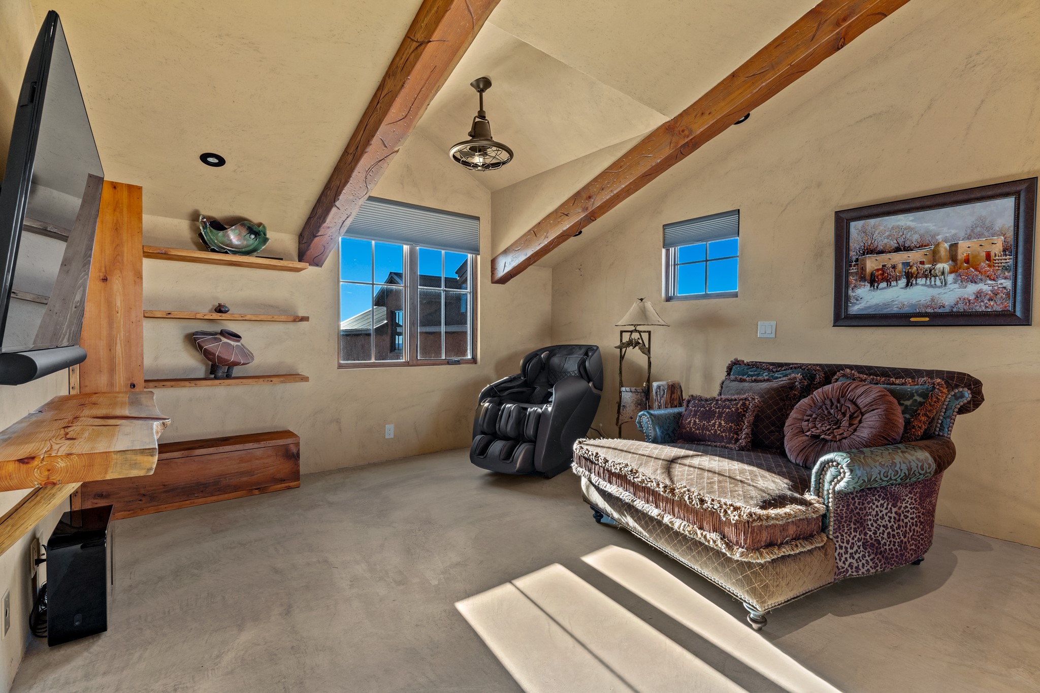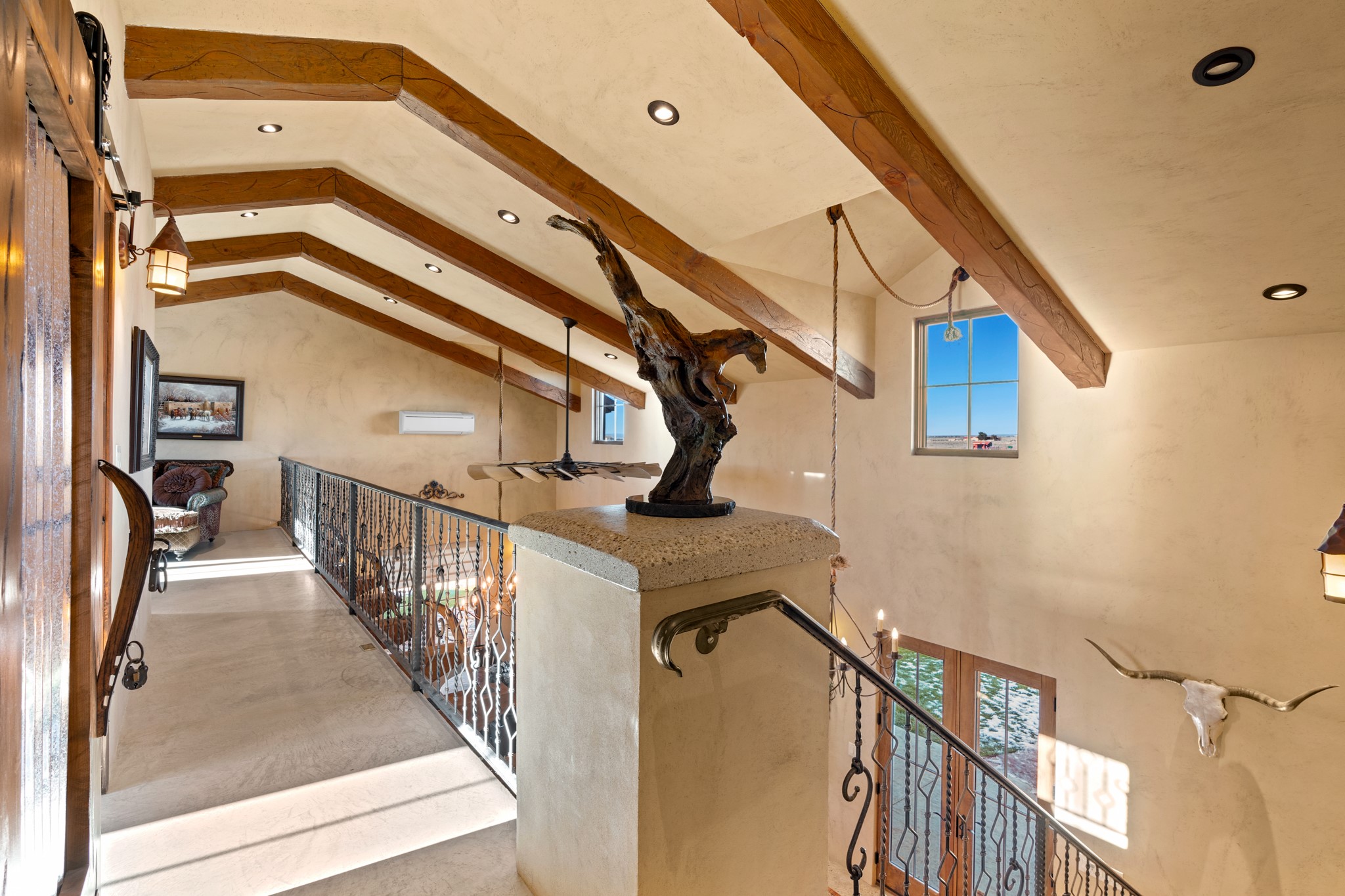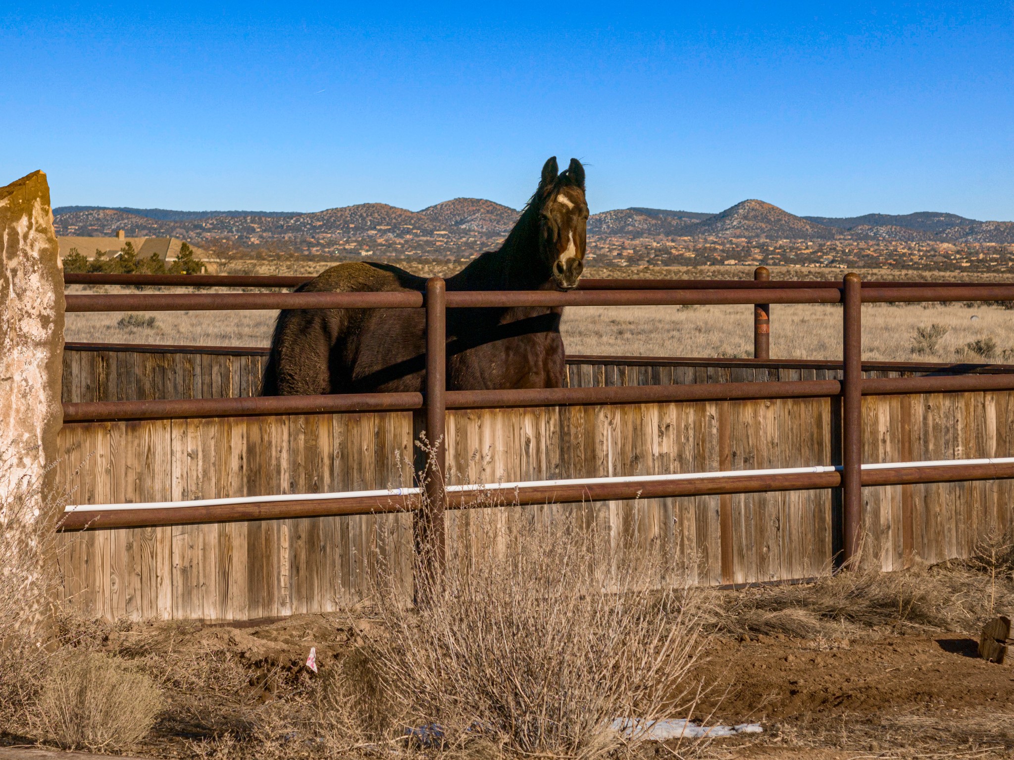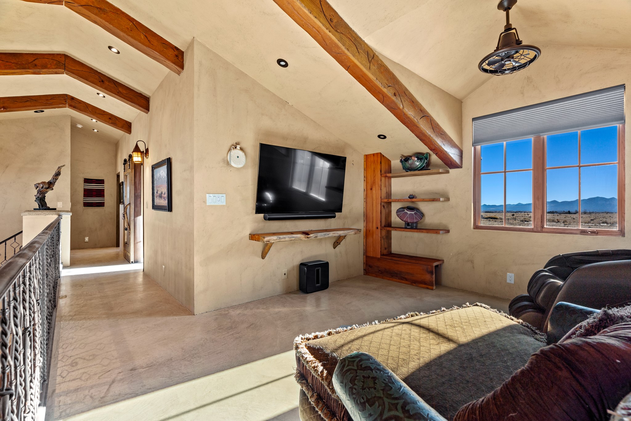 Back on Market- No Fault of Seller or Property! Welcome to Rancho San Marcos and this exquisite horse property. Where refined living meets the allure of this custom-built home on 15 acres with 360 degree views. Tailored for open-concept living, this residence is an entertainer's dream. The chef's kitchen, boasting a Viking Range, granite countertops, wine fridge, and walk-in pantry, invites you to unleash your culinary creativity. The main floor features an open dining/living area with high ceilings, large windows to capture the views and natural light. The primary bedroom is on the main floor with 2 walk-in closets, a spacious bathroom featuring a walk-in shower, and a serene soaking tub. Upstairs, two additional bedrooms and an open loft await. The oversized heated 2-car garage showcases a 700 sq ft open loft area. Your cherished equine companions are luxuriously accommodated in a 2448 sq ft barn with 2 indoor/outdoor stalls & turnouts, 1 indoor stall, hay storage, 1/2 bathroom, overhead door on the east side is large enough to accommodate an RV, offering convenient, out-of-the-weather storage for your motorhome or large recreational equipment. Inside, the barn provides ample room for livestock, equipment, or additional workshop space with excellent ventilation, and easy access to an expansive riding arena approximately 130X200. Adjacent to the riding arena is an additional 16X30 stall, 10X16 bird house with windows and 75X180 corral. Don't miss the opportunity to make this remarkable property your own, where elegance and equestrian excellence seamlessly come together. Within the gated subdivision you will find riding trails, a round pen and riding arena for use.