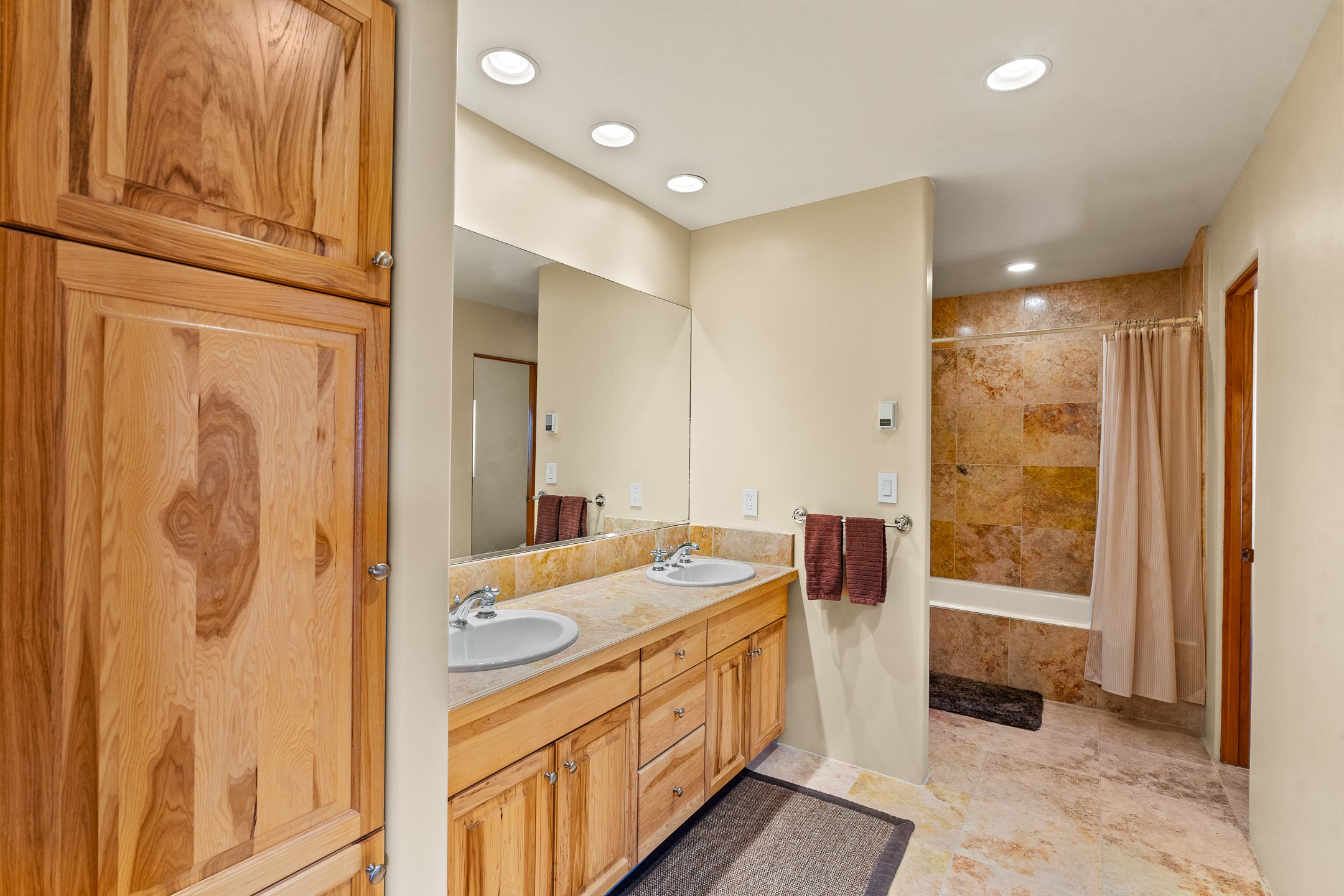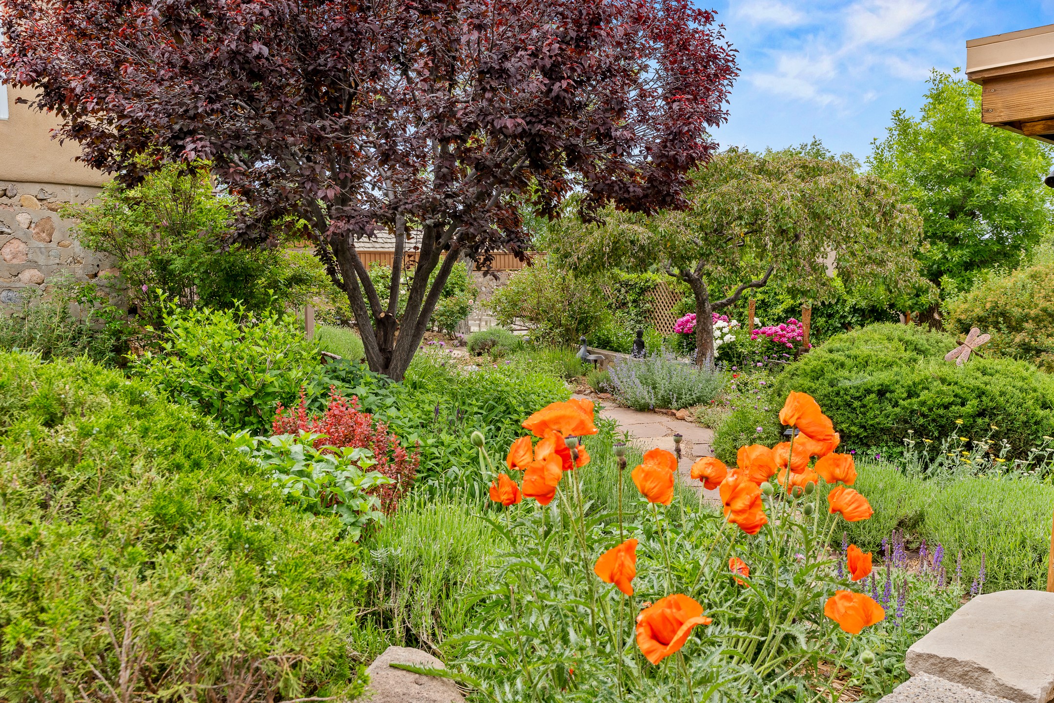 This Historic Eastside home is in the gated Girard Gardens Compound located a block from the Canyon Road arts district. It consists of a beautifully appointed main home and a guest casita. The casita has the possibility of being used as a wonderful studio, home office space or as an income generating rental. The location of this property has close proximity to all Santa Fe has to offer. Hiking, skiing, mountain biking, along with the fabulous restaurants and cultural activities for which it is famous. Mountain views from the expansive upstairs deck, a large private outdoor garden space. 3 large bedrooms, 3.5 bathrooms with ample closet space. The fully equipped kitchen has stainless appliances and is a bright welcoming space for the cook in the family. A detached garage is included with the main home. The guest casita has its own parking space. This is a turn-key sale which includes all designer selected furnishings.