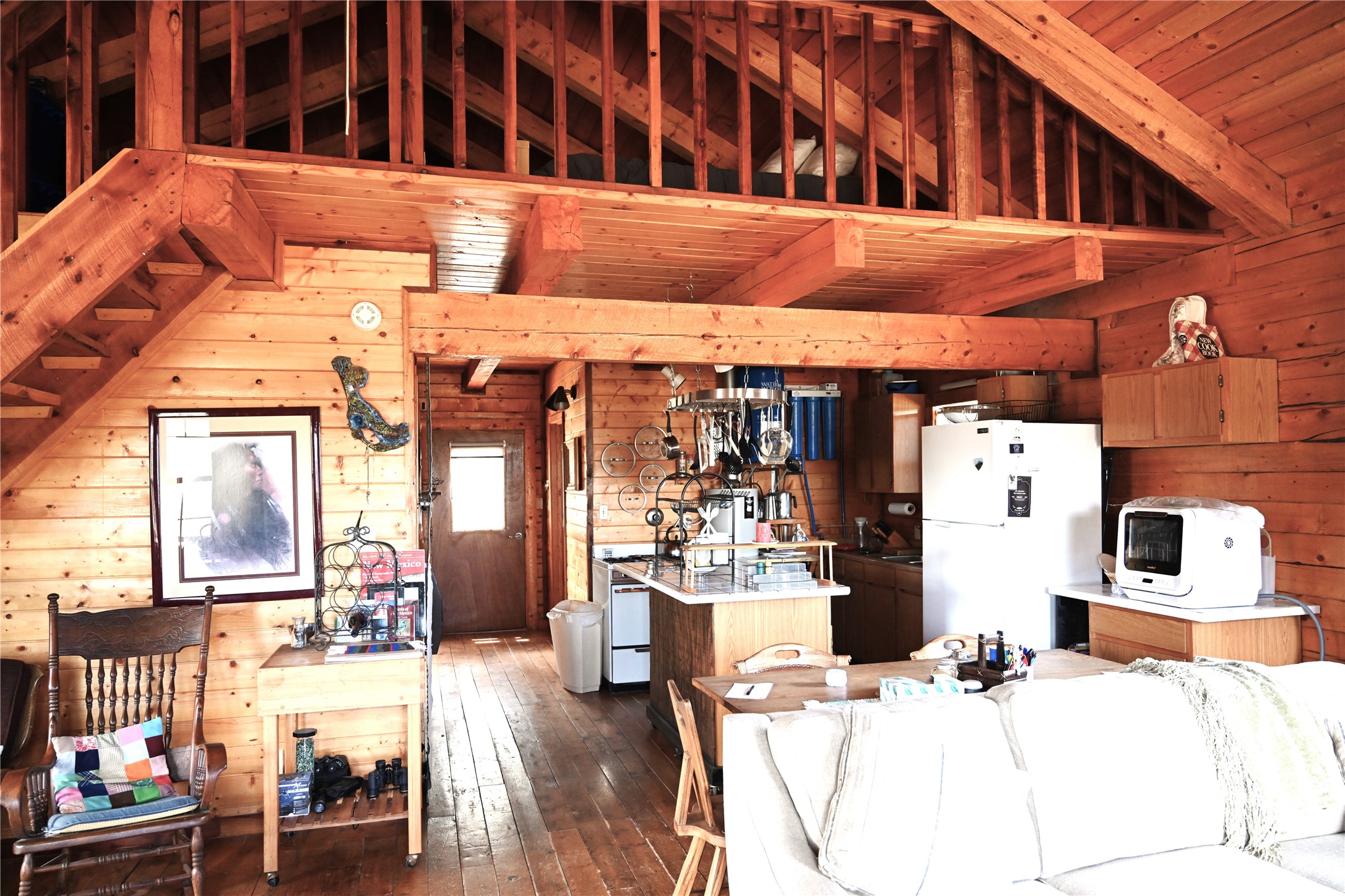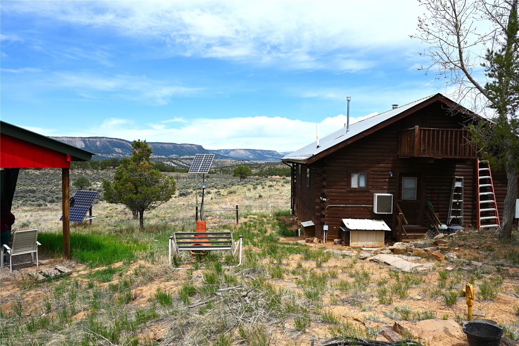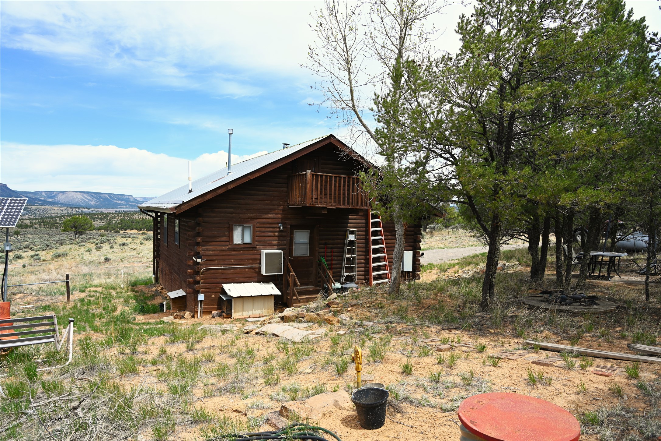 Off grid "D" Log cabin located south of Chama NM. This home is in the private gated Rancho Del Vado s/d. 870 sq ft of rustic home with an addition 144 sq foot bunk house / office hobby room. One bedroom with a loft for more sleeping area. Private 365 foot deep well with a filtration system. Home also has a 1800 gallon rain catchment system. Solar with back up generator.Wood stove heat along with a propane wall heater for those cold winter nights. 250 gallon propane tank. $100.00 a year road and gate maint fee. Great views from the front porch. Across the highway from El Vado State Park and the Chama wild game management area. Approx 30 minutes from Chama and a couple of hours from Santa Fe. Would make a great full time, weekend home , summer home or just a get a way. Located near some great hunting units for you hunters and for those of you that like to fish plenty of places to catch those delicious Trout.