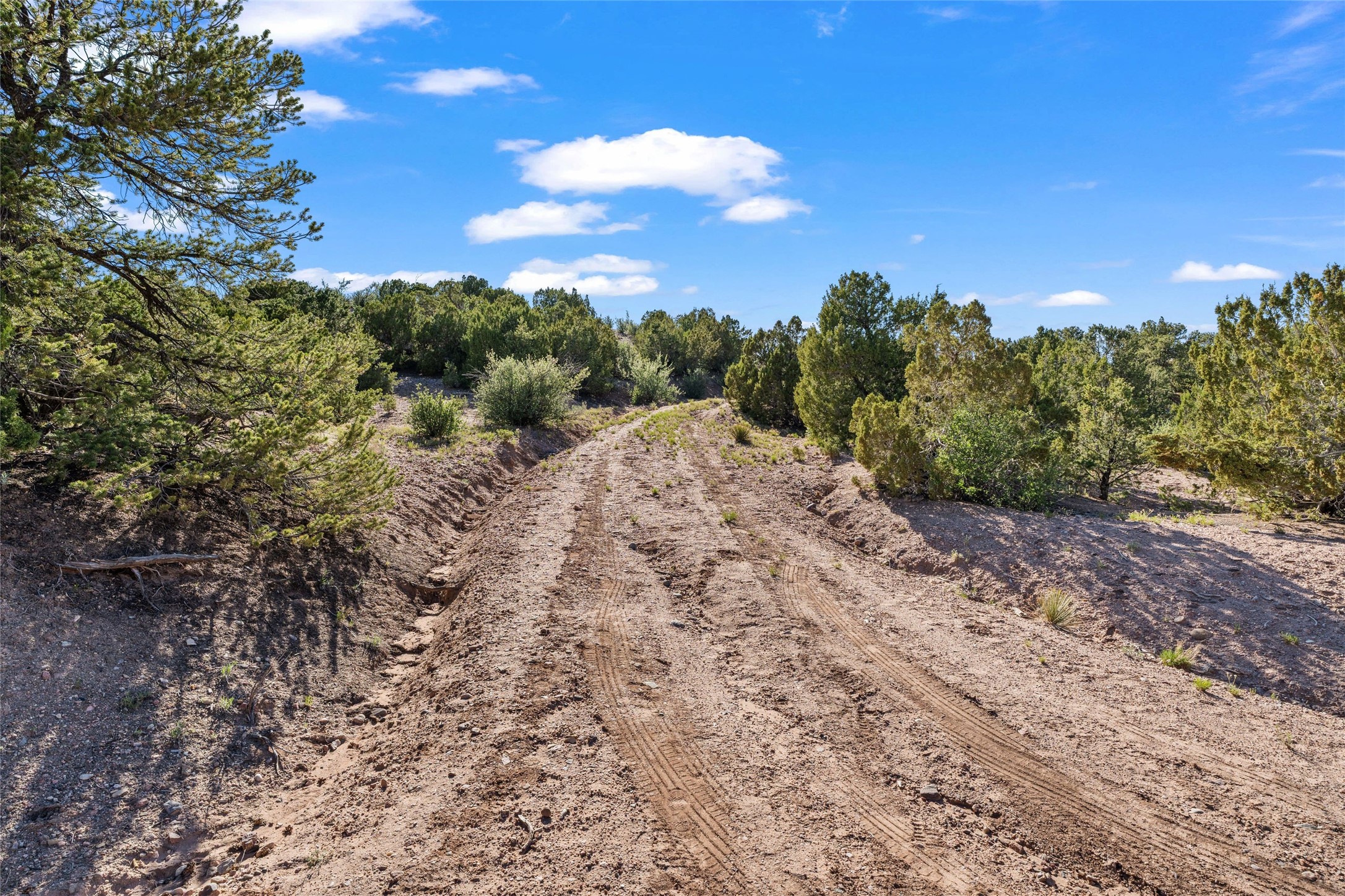 Embrace the essence of high desert living in Tesuque with this remarkable 5-acre RES-F Residential Fringe lot. Offering sweeping views of the majestic Sangre de Cristo mountains to the east, this parcel invites you to imagine a life framed by nature's grandeur. Situated on a private, well-maintained road within a small, gated community, it blends privacy with a sense of belonging. The terrain presents an easy building site, allowing for creative architectural possibilities that can harmonize with the stunning surroundings. Shared well in place.Just moments away, the Tesuque Village Market serves as a vibrant gathering hub, while the iconic El Nido restaurant tantalizes with its culinary delights. In minutes, you can access the historic Santa Fe Plaza, explore Canyon Road's artistic landscape, and immerse yourself in the cultural offerings of Museum Hill.This is not just land; it's a canvas for your vision, a place where the rhythm of nature meets the heartbeat of community.