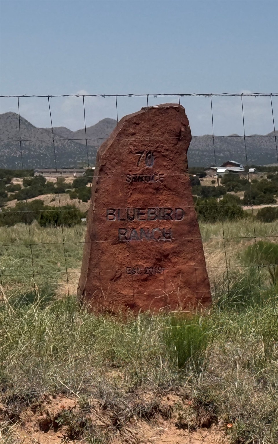 Enjoy sunrises and sunsets on both patios at the Bluebird Ranch! This 2,270 sqft. home has 3 bedrooms, 2 bathrooms and 2 living areas. Larger windows and many skylights and tall ceilings that make it very bright and airy. The property is situated on 12.3 fully fenced acres on a paved road with unobstructed 360 views, fenced for dogs and/or horses. or? Spacious and luxurious main BR with ensuite bathroom and huge walk in closet, completely energy efficient; newer, owned solar; NM Surf terrestrial internet service. Private, sweet water well that produces 18 gpm; metal hay barn with attached 7ft. hay corral; storage shed plus wide and tall RV storage barn; close to Bonanza horse Hospital. Many Junipers and no cactus. Make this rural ranch style electric gated property yours! 4 goats resident on the property that maintain the landscaping!!