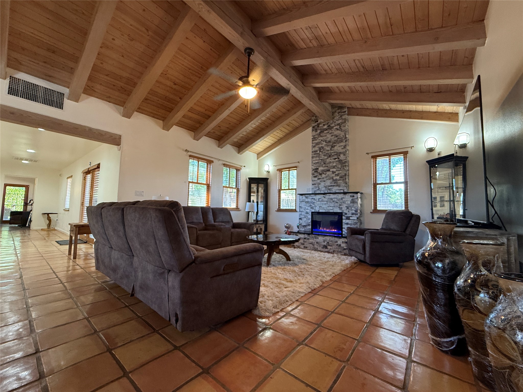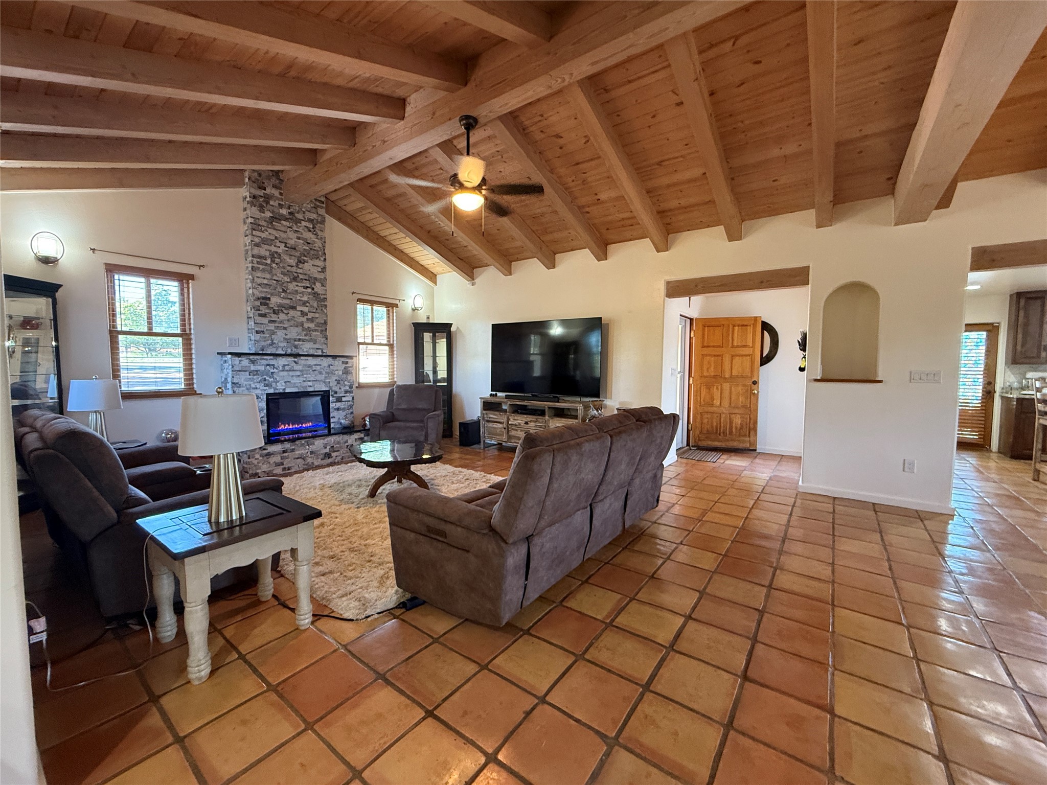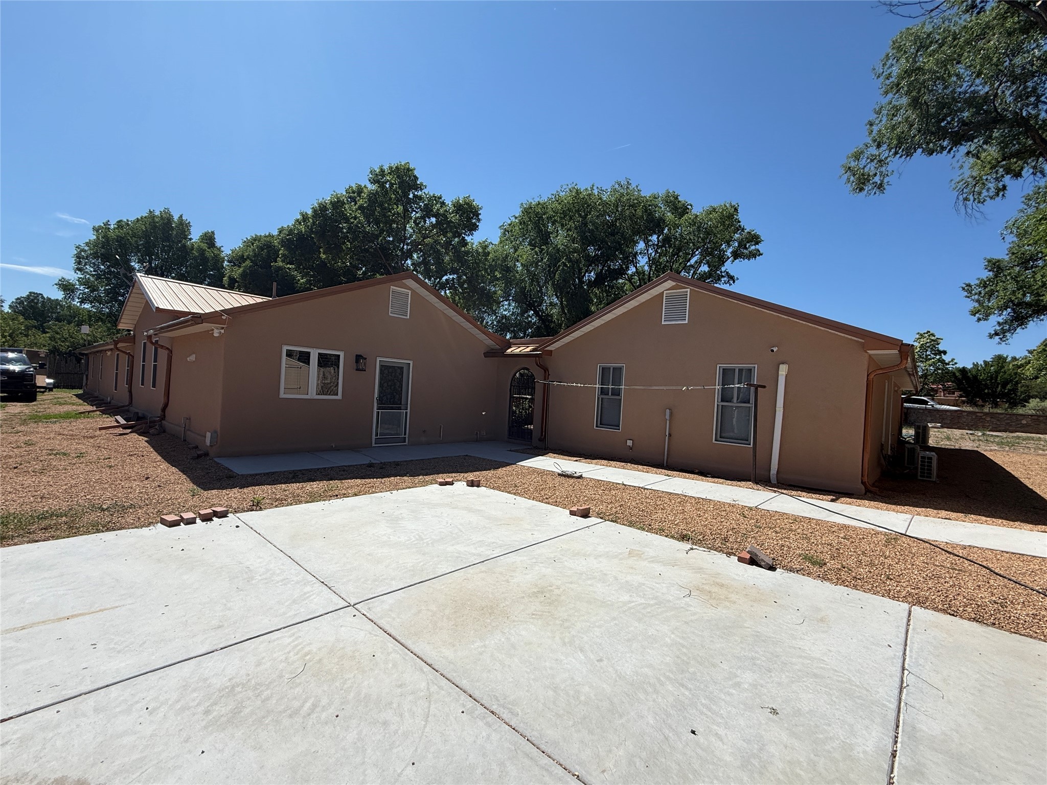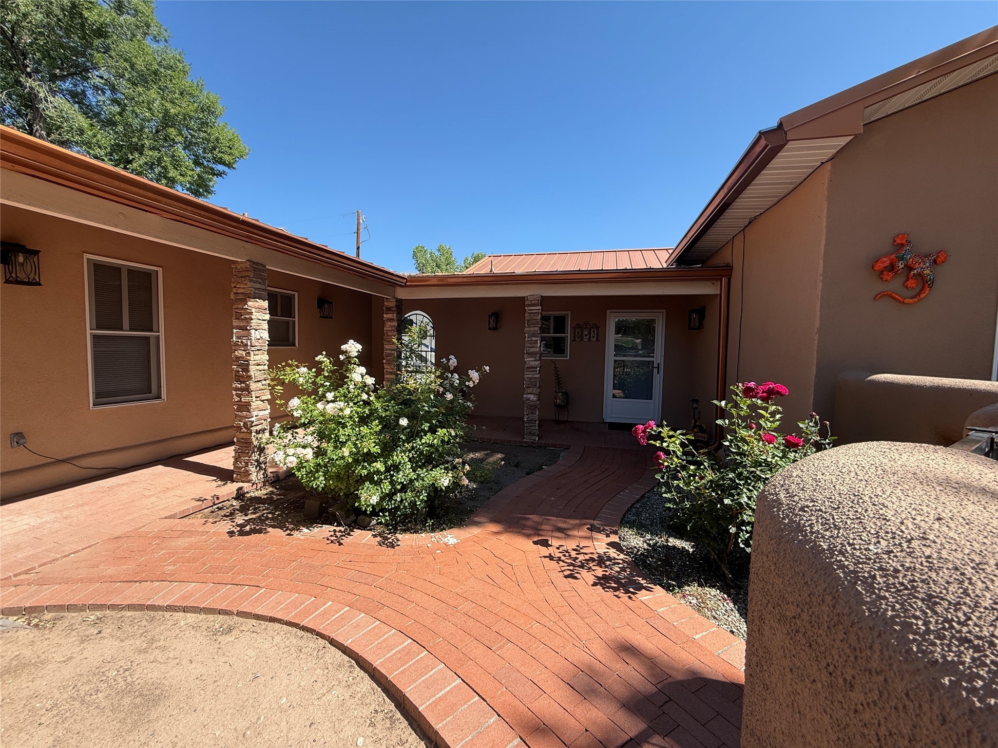 Welcome to this beautifully renovated home with a detached guest house, nestled on a half acre in the peaceful community of Sombrillo. The spacious main home features high vaulted ceilings with exposed beams, a generous open-concept living and dining area, and tasteful tile flooring throughout. The chef's kitchen has been fully updated and offers both style and functionality. The main house includes 2 bedrooms and 2 fully remodeled bathrooms.The detached guest house provides 2 additional bedrooms and 1 bathroom--perfect for guests, rental income, or multi-generational living. Enjoy the fully enclosed walled courtyard and a covered outdoor entertaining area, ideal for gatherings or quiet evenings. Additional features include: Private well and irrigation rights. Recent renovations: new roof, new windows, updated 220 electrical system. Remodeled kitchen and bathrooms in both homes. Tankless water heaters in both main and guest houses. Refrigerated air in the main house and three mini-splits in the guest house. Completely fenced property with latilla fencing on the side and back, rock wall with custom metal gates in front. Landscaped yard with sprinkler system for grassy areas. Designated concrete area for RV/camper parking. This move-in ready property offers a unique blend of modern upgrades and peaceful rural charm--don't miss your opportunity to own a versatile home in a serene setting.