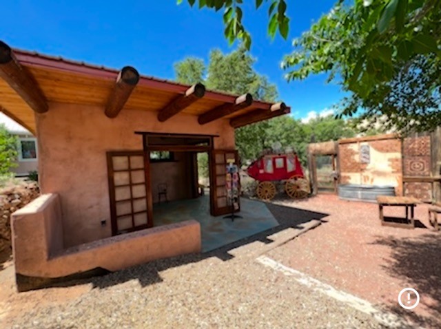 Rare opportunity to own the only two adjoining undeveloped commercial lots in Madrid's business district along the historic Turquoise Trail. Located at 2881 & 2883 B State Hwy. 14, these properties offer 140 feet of highway frontage with excellent visibility and high daily traffic. Each lot is approximately 8,000 sq. ft., with utilities (water and power) at the property lines and the potential to build up to 2,400 sq. ft. per lot (to be verified with SF County if of material concern). There's ample space for required off-street parking. Included with 2881 is a 200 sq. ft. studio built with 12" pumice and concrete walls, vigas, French doors, thick wood jambs, and a 200 sq. ft. concrete patio. Both parcels are currently rented month-to-month to Connie's Photo Park and Old West Photography, with rental agreements set to terminate at closing. Personal property, including the Gypsy Wagon, stagecoach, camper, costumes, and photo props, are not included in the sale. A standout investment in one of New Mexico's most popular artistic and tourist destinations. The Live work and commercial designations make these lots highly usable. It's rare to find two lots together in the townsite of Madrid. This opens up the possibilities due to current building and us regulations, single lots are hard to develop. Sold as one.