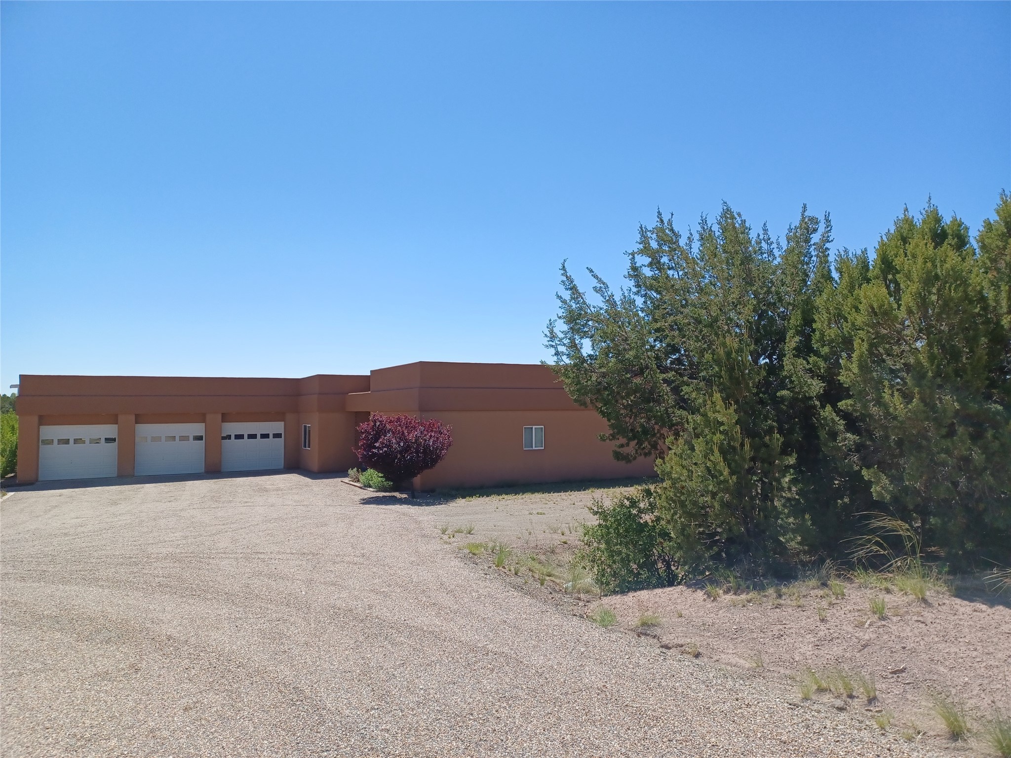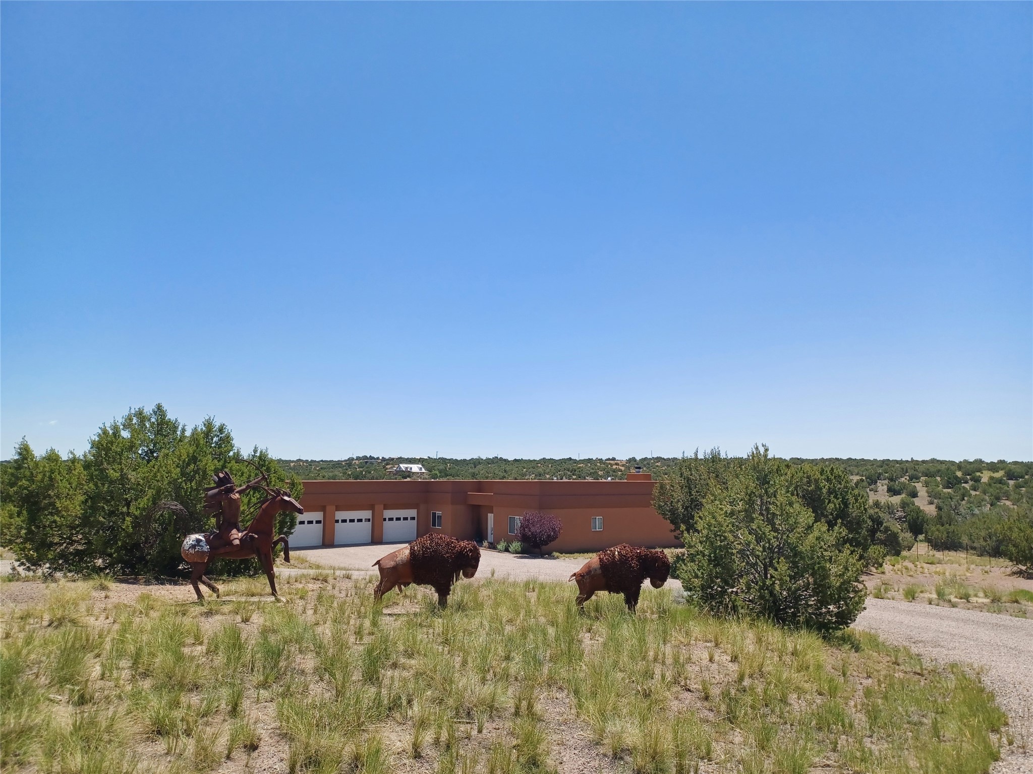 Welcome to the exceptional property located at 64 Coyote Trail in Santa Fe County. Situated on over 20 acres, this distinguished luxury home represents a meticulously planned and executed estate, achieving complete independence from fossil fuels. The residence features a contemporary geothermal system for heating and cooling, effectively replacing propane and natural gas, alongside a substantial solar photovoltaic array that not only powers the home but also contributes energy back to the grid. The property maintains a connection to PNM to ensure continued electric service. Furthermore, a private well and septic system enhance this home's self-sufficiency, resulting in remarkably low operating costs throughout the year.The residence encompasses 3,619 square feet and includes three bedrooms and three bathrooms. The master suite is particularly noteworthy, featuring two separate, luxurious ensuite bathrooms on opposing sides, all wheelchair accessible as the rest of the home. Additional interior features include a wood burning fireplace and a formal dining room. The property also boasts a generous 1,786 square foot temperature controlled garage, suitable for 6 + vehicles or use as a workshop. Constructed with superior quality on a concrete slab, this remarkable home reflects uncompromising standards.I invite you to schedule a private viewing of this unique property at your earliest convenience. Please be advised that showing times are limited, and the listing Broker is required to be present for all appointments. There is not a for sale sign on the street and the gate remains locked except for confirmed showings.