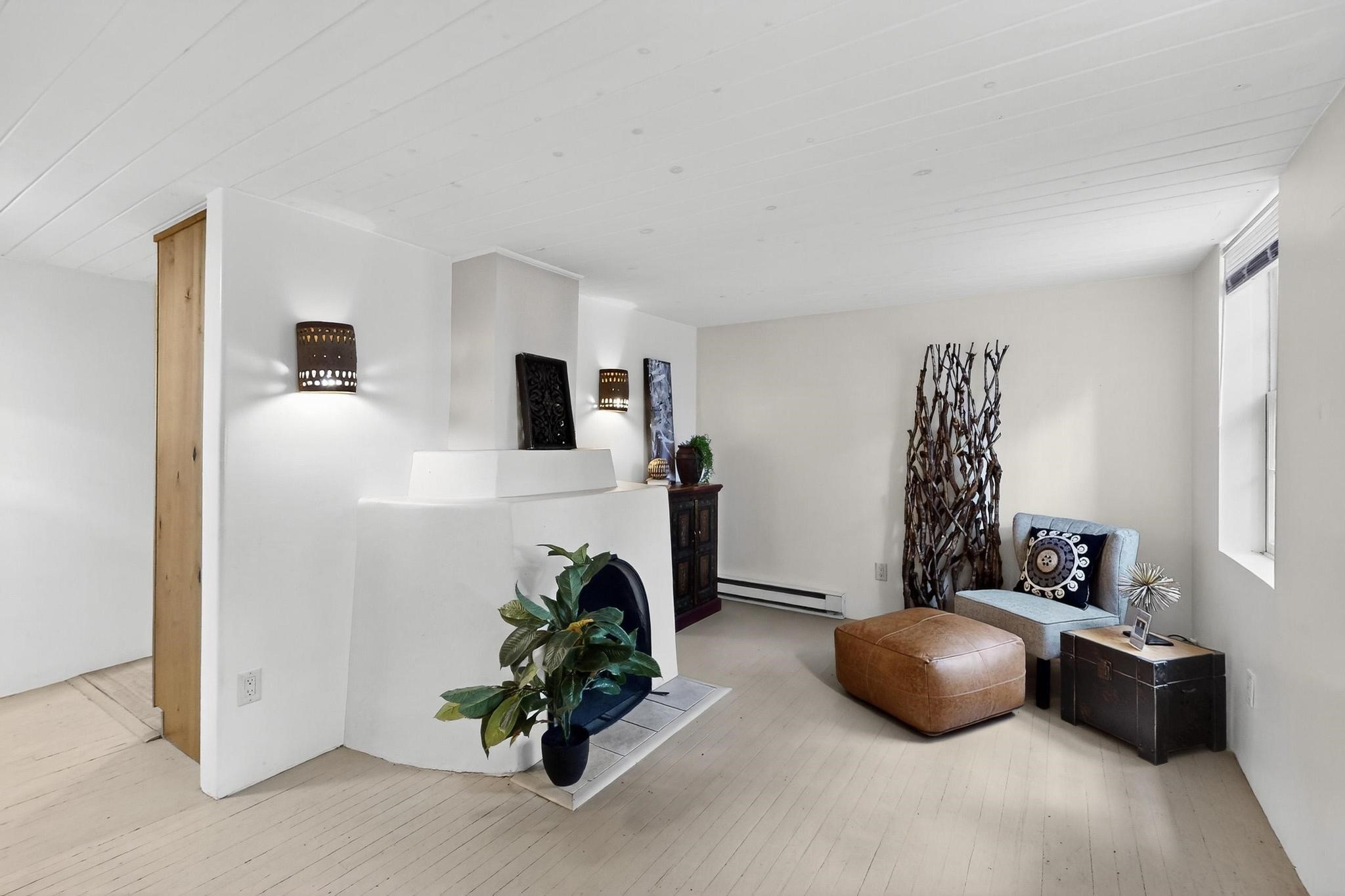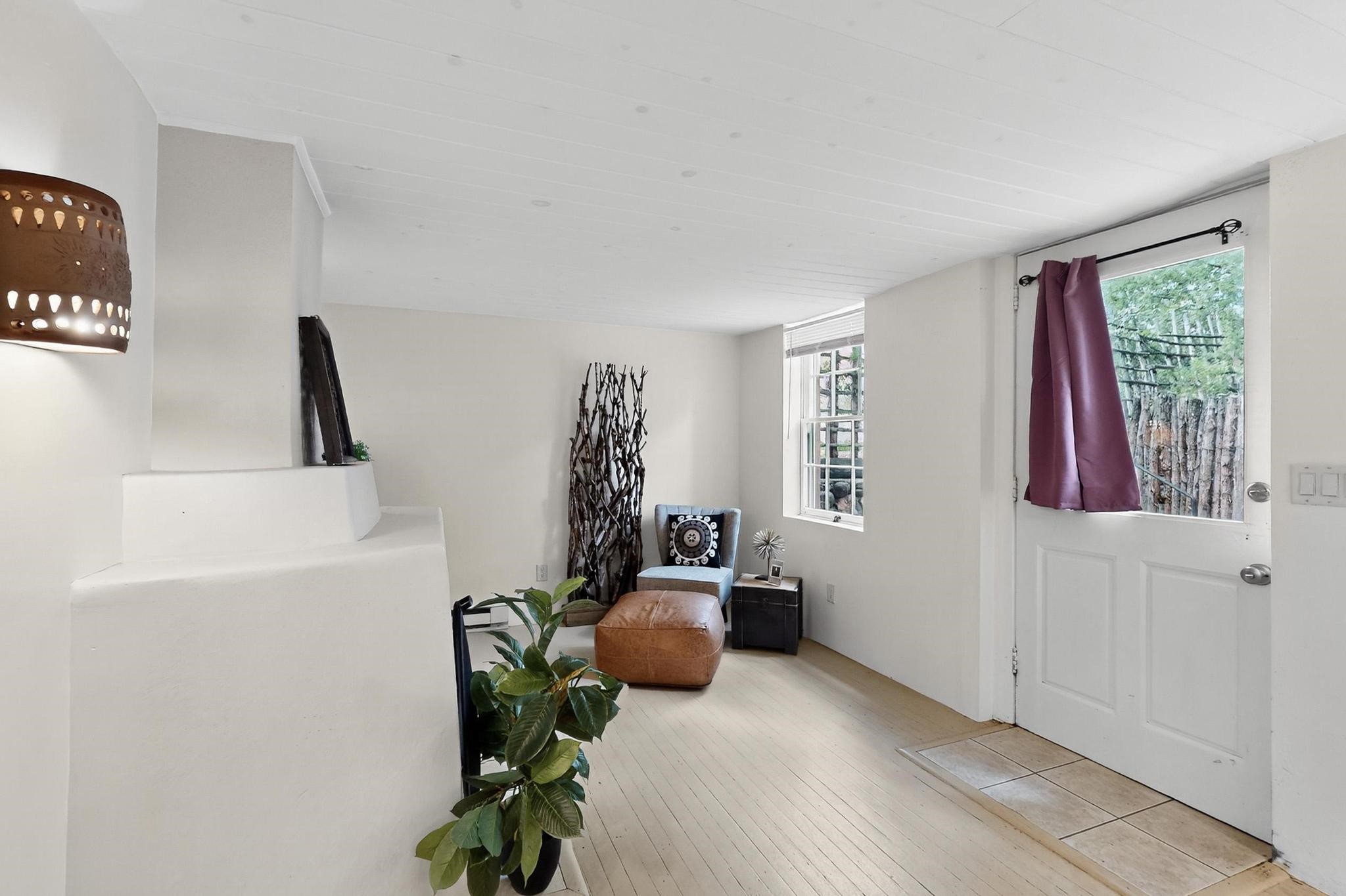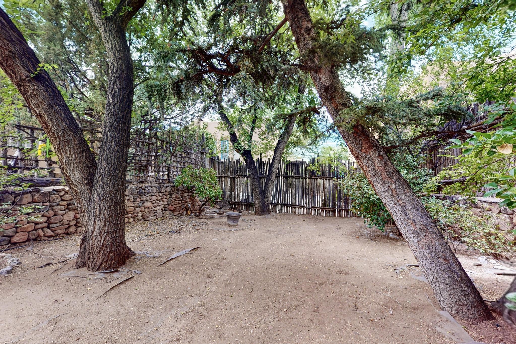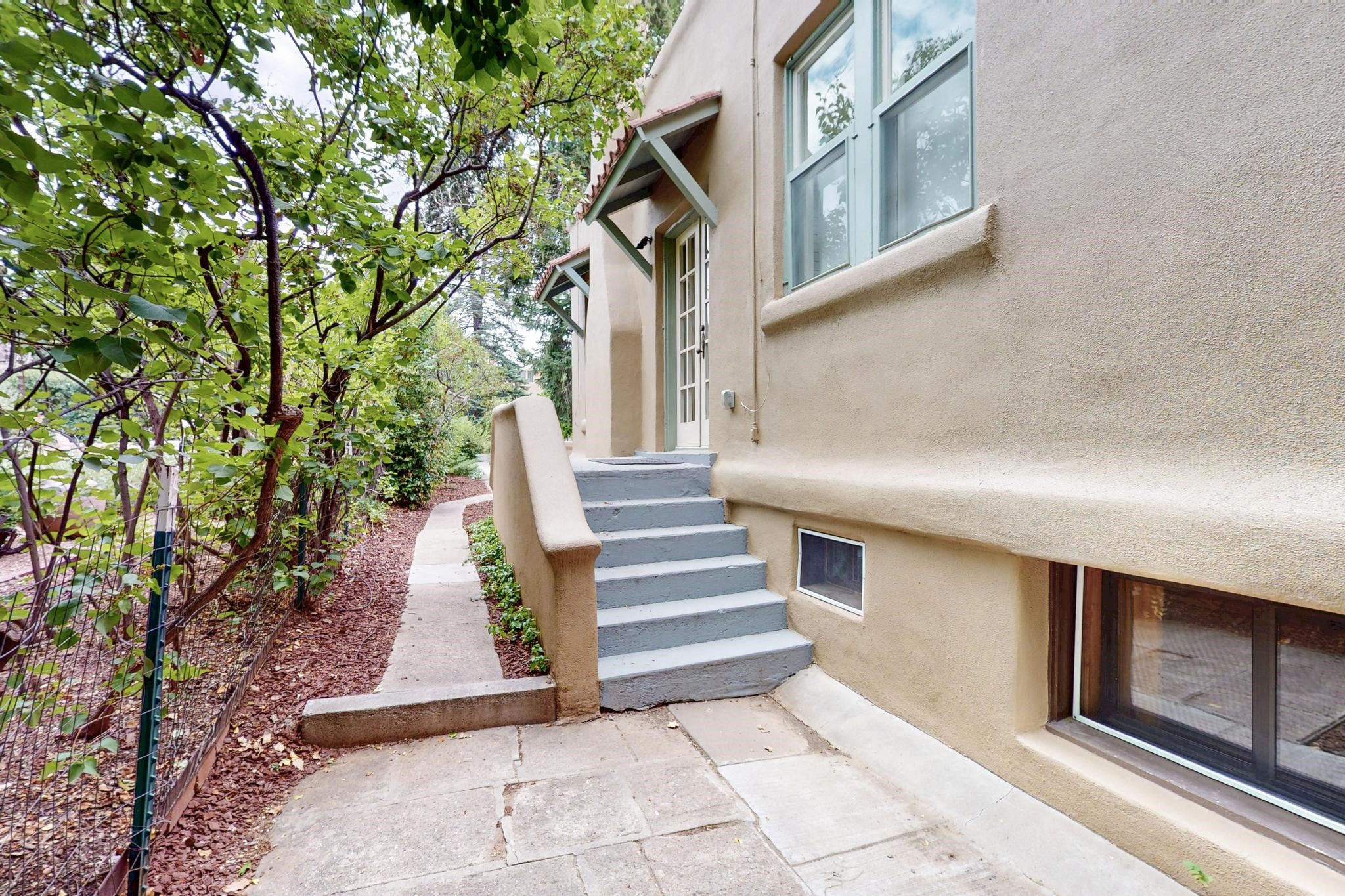 Bright Beautiful Condo with Casita in desirable South Capital in a beautiful small compound with mature trees and close proximity to the Plaza. This former residence was built in 1940 and has been converted into condos consisting of five units. These two units offer so many possibilities, live in one and rent the other, use one as for guests when they visit, or to have a parent close by. A very good price when divided by two units in the desirable South Capital. The main Condo 1A, 1 Bd, 1 bath, welcomes you as you enter through the french doors into a bright large living room with tall windows, wood floors, hand-hewn beams and a grand fireplace. The adorable kitchen has a country copper sink, granite countertop, lively deep red lower cabinets and light wood upper cabinets. Casita 1B, 1 bd, 1 bath has painted wood floors, an impressive fireplace, charming kitchen, and separate entrance. Each unit has its own private courtyard, they are the only ones in the compound that have this feature. This rare opportunity should not be missed. HOA fees include all utilities for both units, Electric, gas, water, maintenance, landscaping and insurance, the amount varies based on usage etc and is billed every 6 months.
