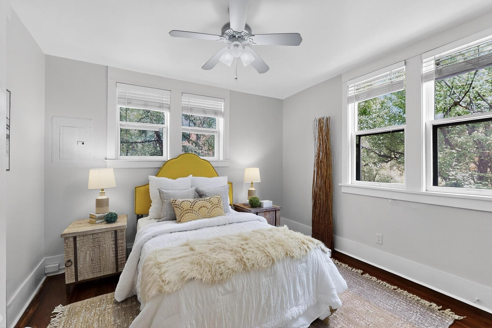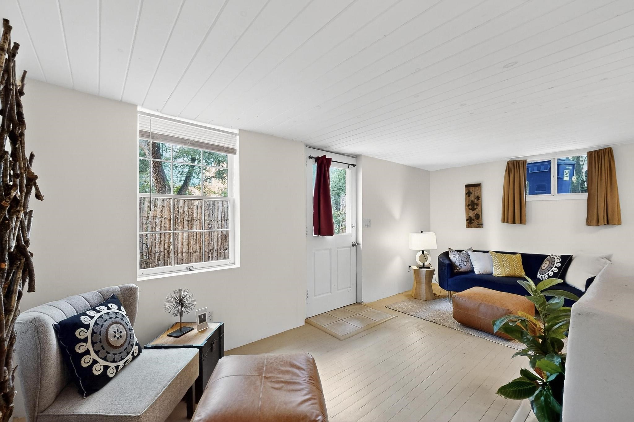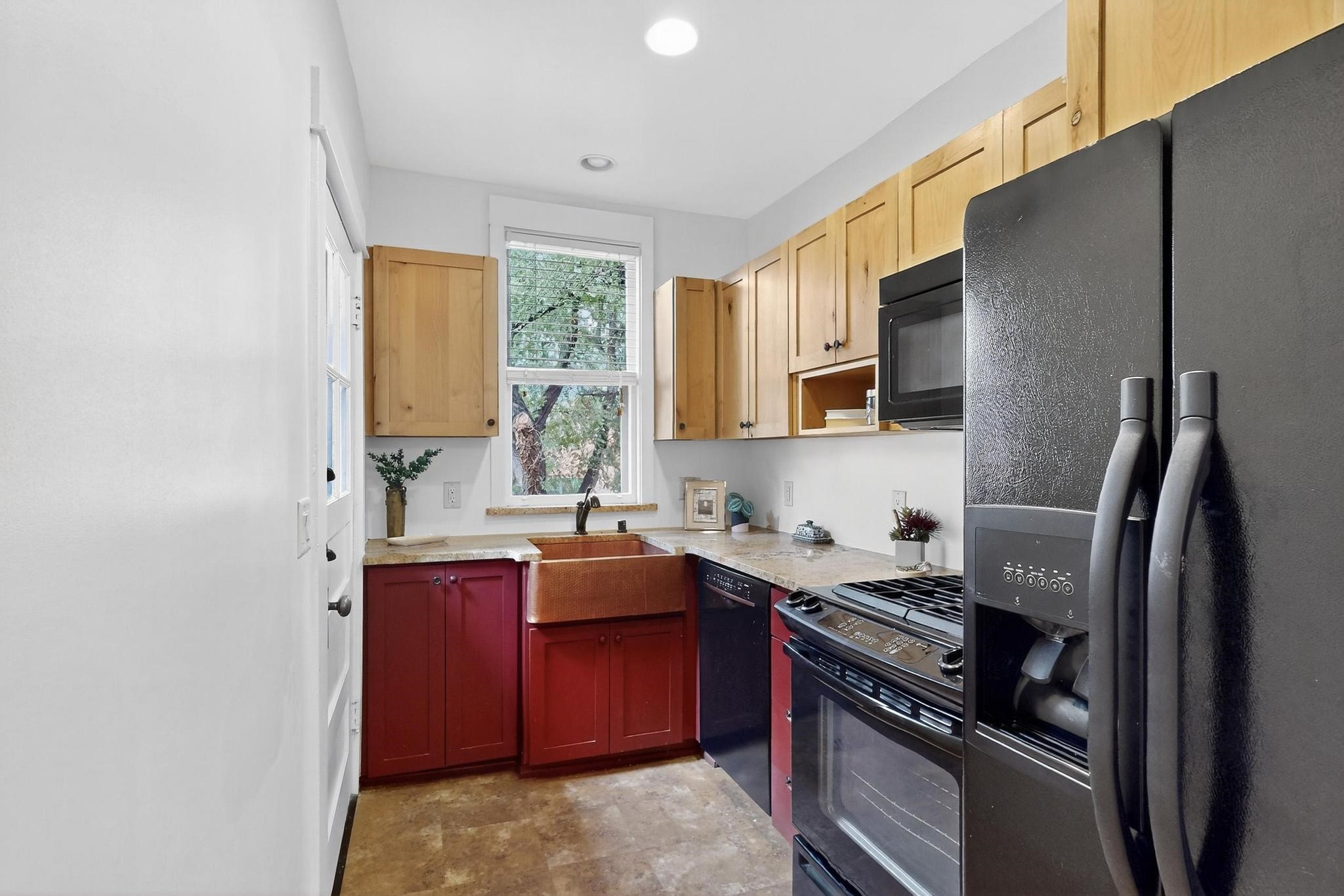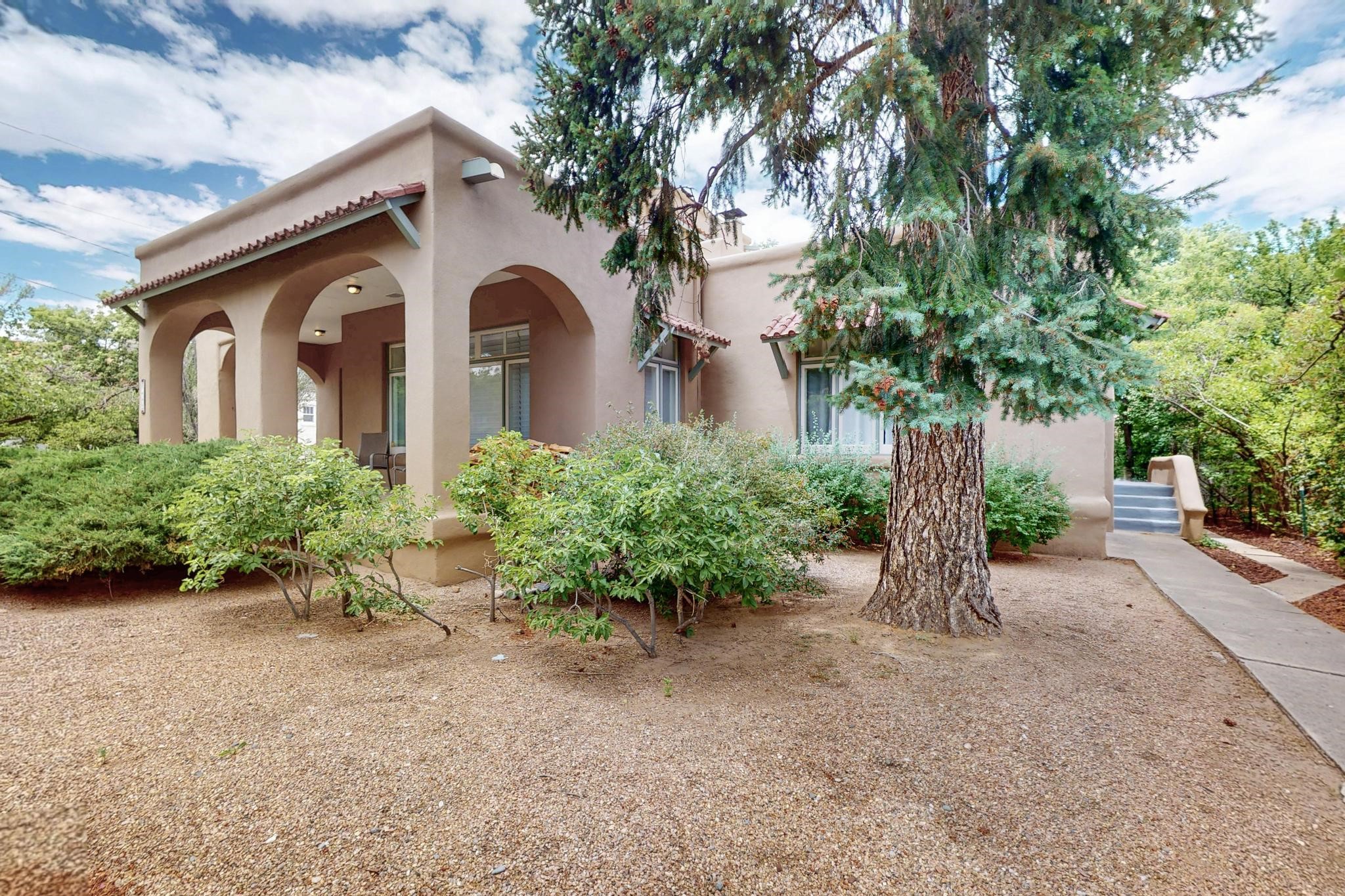 Bright Beautiful Condo with Casita in desirable South Capital in a beautiful small compound with mature trees and close proximity to the Plaza. This former residence was built in 1940 and has been converted into condos consisting of five units. These two units offer so many possibilities, live in one and rent the other, use one as for guests when they visit, or to have a parent close by. A very good price when divided by two units in the desirable South Capital. The main Condo 1A, 1 Bd, 1 bath, welcomes you as you enter through the french doors into a bright large living room with tall windows, wood floors, hand-hewn beams and a grand fireplace. The adorable kitchen has a country copper sink, granite countertop, lively deep red lower cabinets and light wood upper cabinets. Casita 1B, 1 bd, 1 bath has painted wood floors, an impressive fireplace, charming kitchen, and separate entrance. Each unit has its own private courtyard, they are the only ones in the compound that have this feature. This rare opportunity should not be missed. HOA fees include all utilities for both units, Electric, gas, water, maintenance, landscaping and insurance, the amount varies based on usage etc and is billed every 6 months.