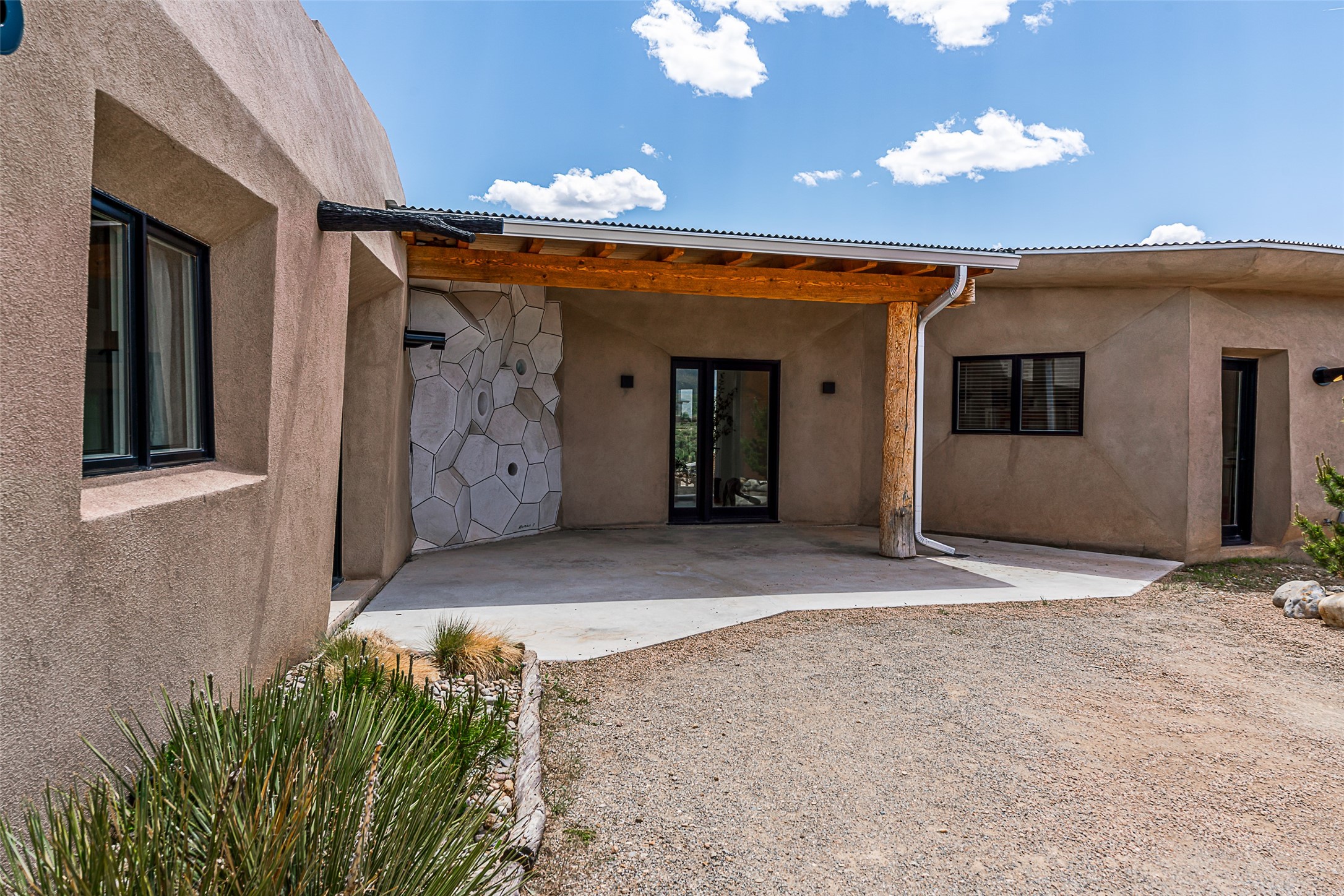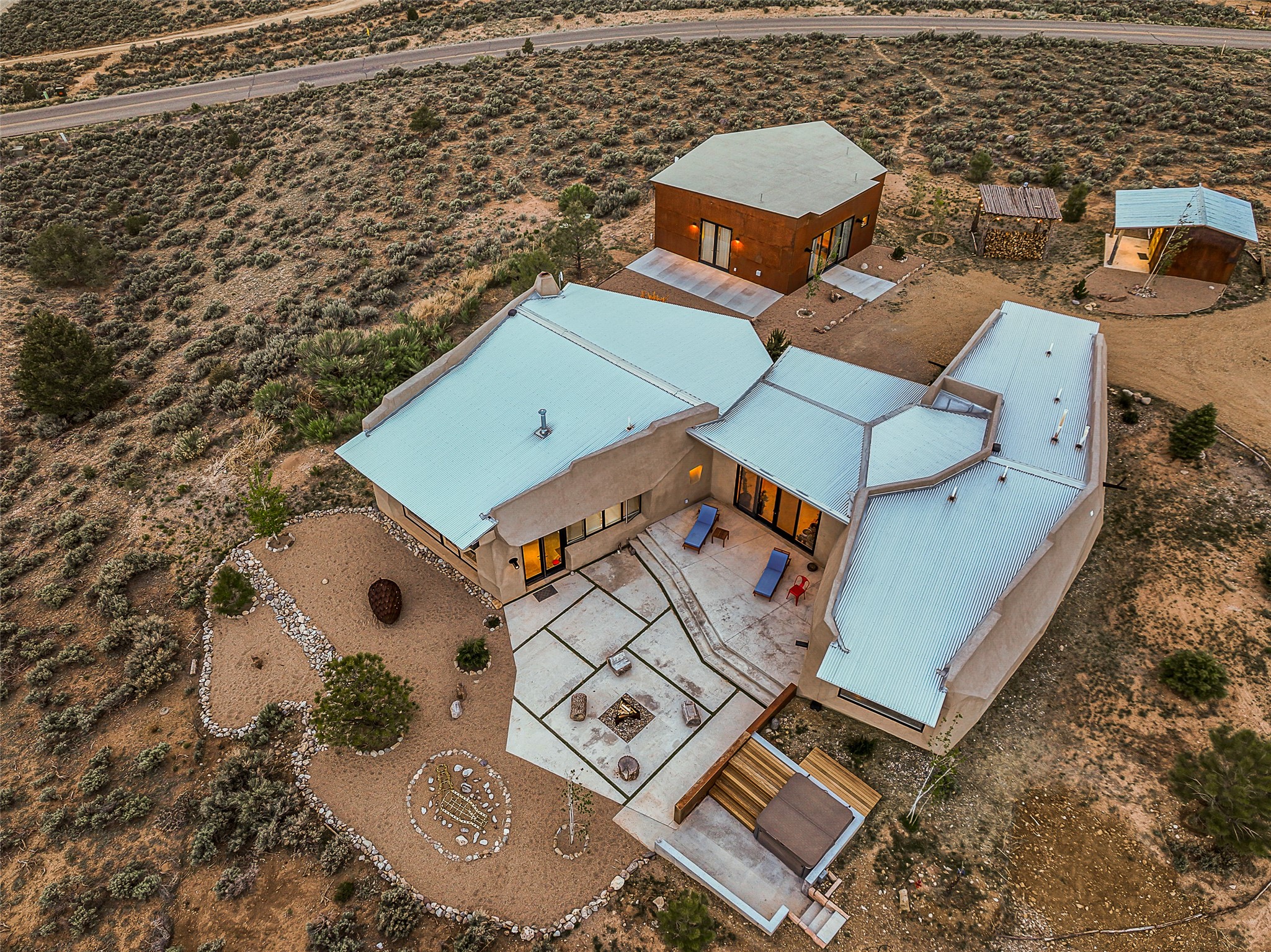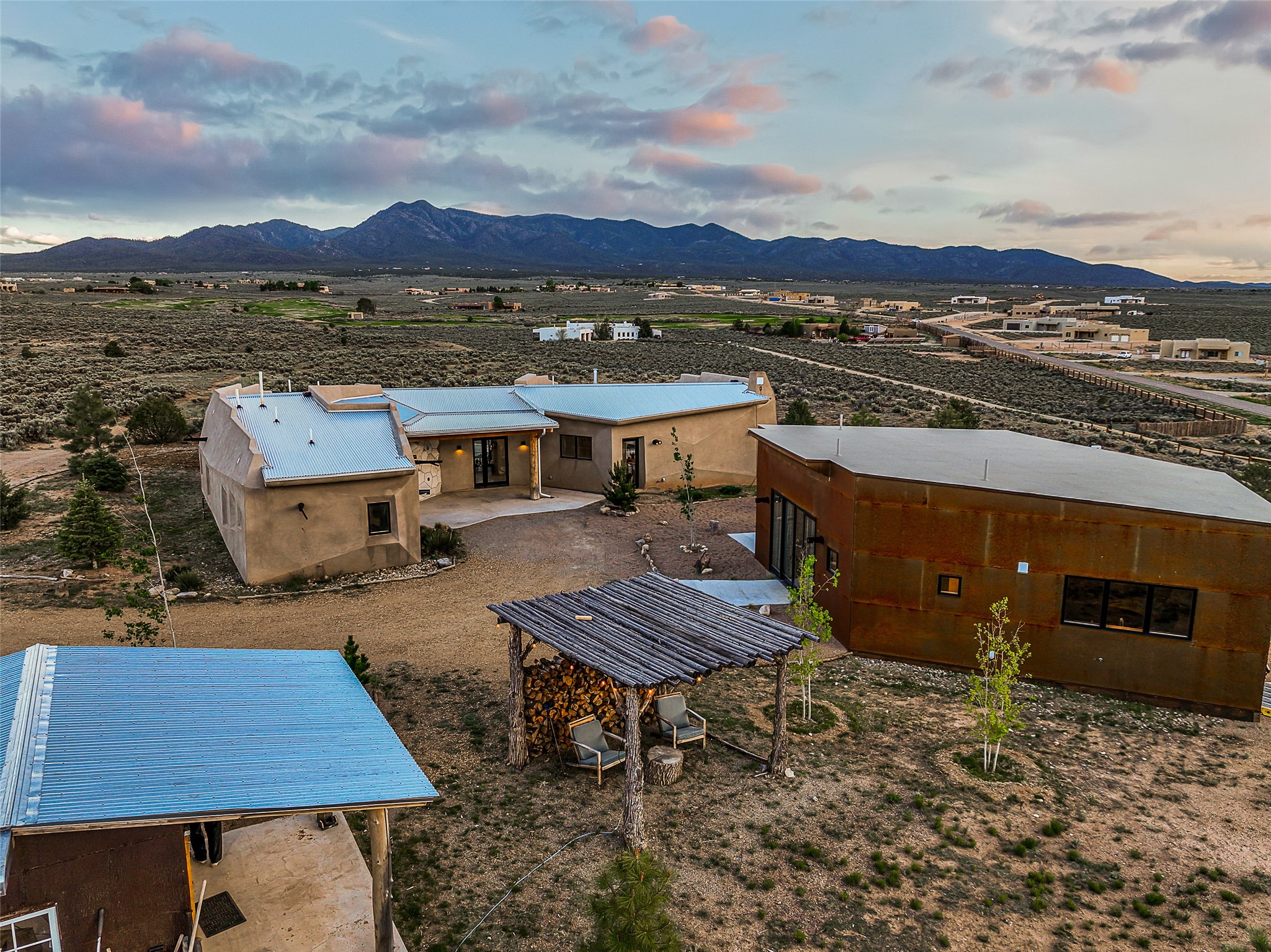 Live inside a work of art in this Artist's Dream Dwelling in Taos. Welcome to ATOMICA- a home unlike any other- where art, nature and architecture meet in perfect, unconventional harmony. Designed and built by internationally acclaimed visionary artist Allan Packer, this inspiring Taos retreat is anything but ordinary. The property consists of a house, a guesthouse, and a studio on 3 acres. Organic, off beat and unconventional in the best possible way. Sculpted thick pumice walls and large windows incorporate and frame the stunning views into a magical, serene space imagined to inspire. The layout defies expectation- fluid and intuitive, built to honor light, shadow and the surrounding land. The main house consists of 2 suites radiating off a large great room made up of an impressive kitchen space and a cozy sunken living room anchored by a whimsical fireplace. Step right out onto the stunning back patio with a firepit, hot tub and jaw dropping views in every direction. The guesthouse is fully equipped with a kitchen and has an established history of rental income. Set atop a peaceful rise, tucked near the edge of the Rio Grande del Norte National Monument, you're just minutes from breathtaking hikes where bighorn sheep roam, epic mountain biking trails, and the quiet power of the river below. The home also overlooks the 16th hole of the Taos Country Club and golf course, blending wild nature with wide-open fairways. This is not just a home-it's a living, breathing work of art. It's a space for dreamers, makers and seekers. Whether you're an artist, writer, hardcore recreationalist or someone simply craving authenticity and soul in a sea of sameness, this home offers something rare: a chance to live in art, not just hang it on the wall.One-of-a-kind. Off the beaten path. Totally Taos. Serious inquiries only. Magic lives here.