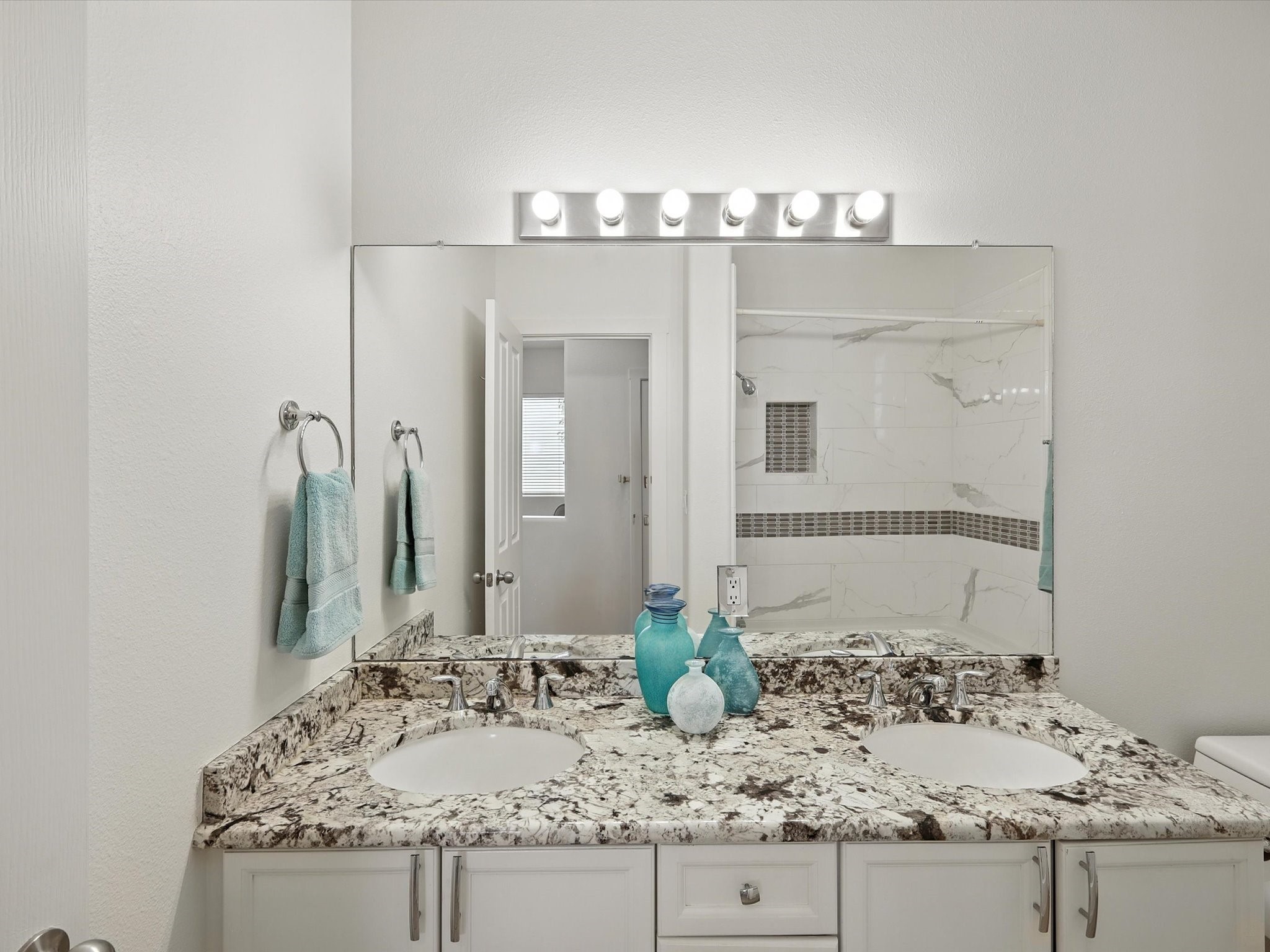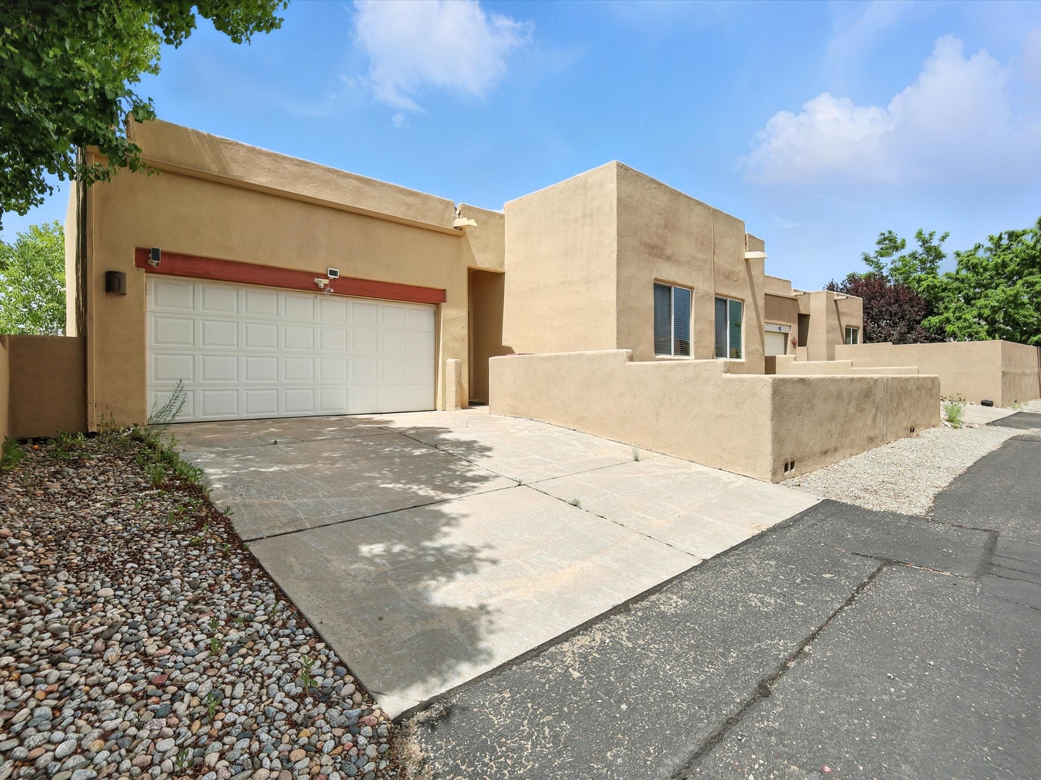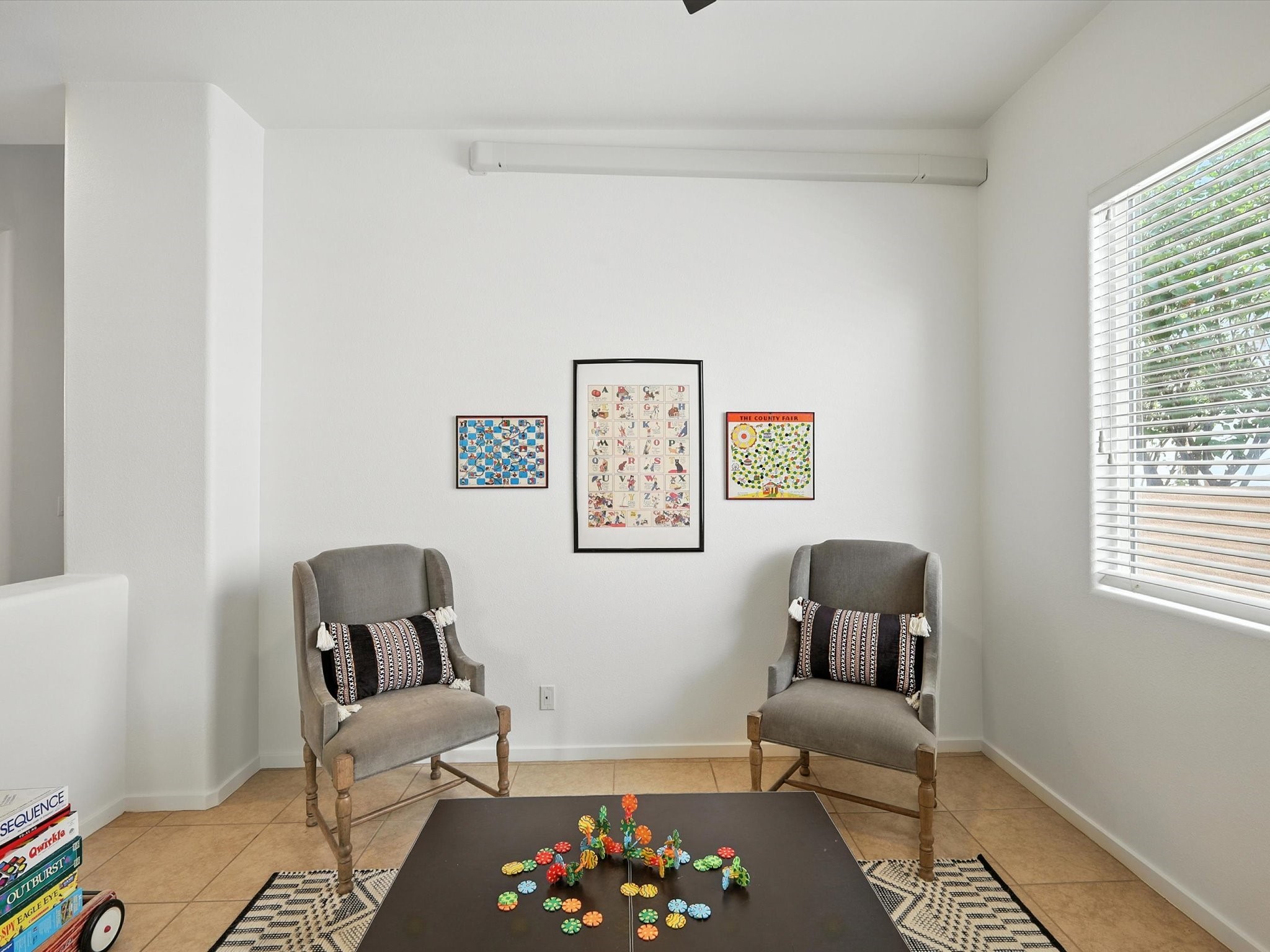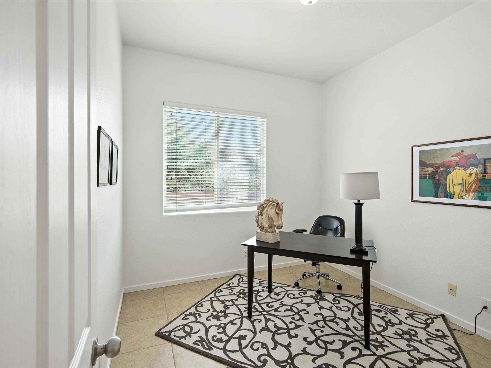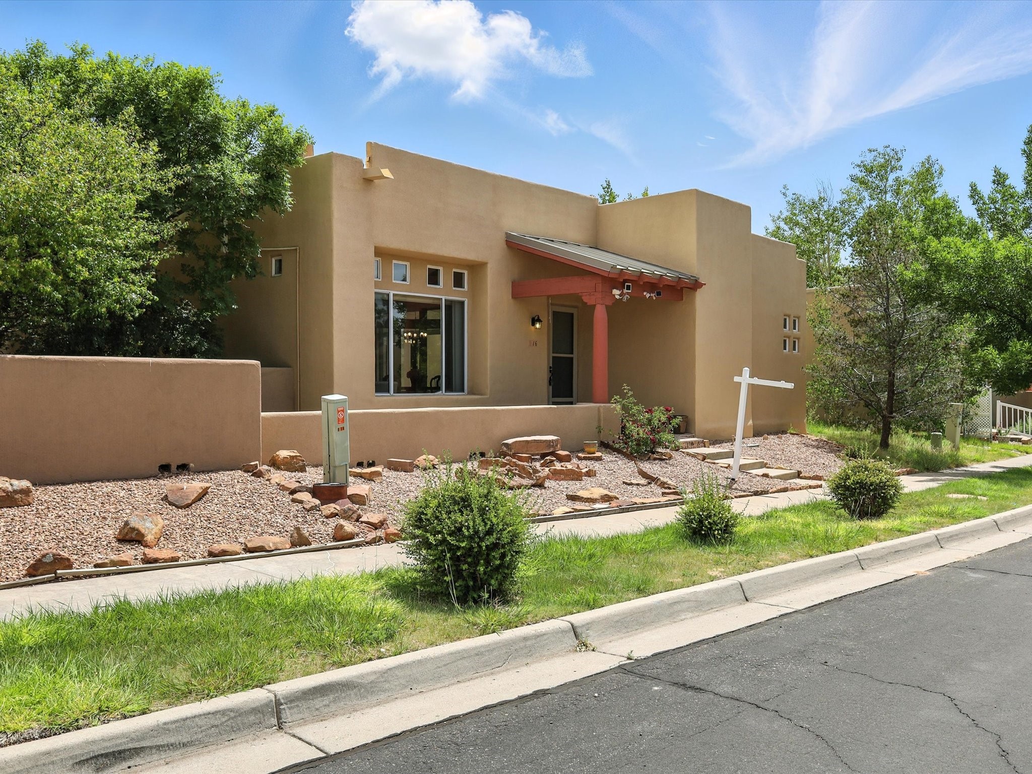 Newly staged and great new price, take another look! Exceptional property in Rancho Viejo, near trail access! Meticulously cared-for home greets you with Santa Fe charm, showcased by the stunning exposed Vigas & expansive ceilings in the living room. The seamless flow from the living room to the formal dining area boasts picturesque windows that overlook a beautifully landscaped backyard, inviting an abundance of natural light. Retreat to the primary suite, conveniently located off the living room, where you'll find direct access to a covered patio & the serene backyard. The luxurious primary bathroom features a separate jetted tub, a stylish shower, granite countertops with dual sinks, & a spacious walk-in closet. Discover a gorgeous kitchen that is both spacious & functional - highlighted by granite countertops, undermount lighting, stainless steel appliances, & a large island. This culinary haven opens to a generous family room, exposed Vigas & a cozy corner gas fireplace, creating the perfect setting for gatherings. Sliding doors from the family room lead to the expansive covered patio, ideal for entertaining. The other wing has a guest bathroom with granite countertops and a custom tub/shower, along with two well-appointed guest bedrooms that provide excellent separation from the primary suite. There is also a versatile bonus room suitable for an office, gym, theater, or other uses. The laundry room boasts upper cabinets & a utility sink, with direct access to both the garage & a secondary walled-in yard. The outdoor space of this property is truly a highlight, featuring a custom covered patio spanning over 600 sq. ft., perfect for entertaining, seamlessly flowing into a beautifully landscaped yard complete with artificial turf, lush shrubs, & an aspen tree. NEW ROOF IN 2024! Located within the Rancho Viejo community, enjoy access to parks, miles of scenic walking trails, and breathtaking views. Come experience the beauty of this Santa Fe gem today!