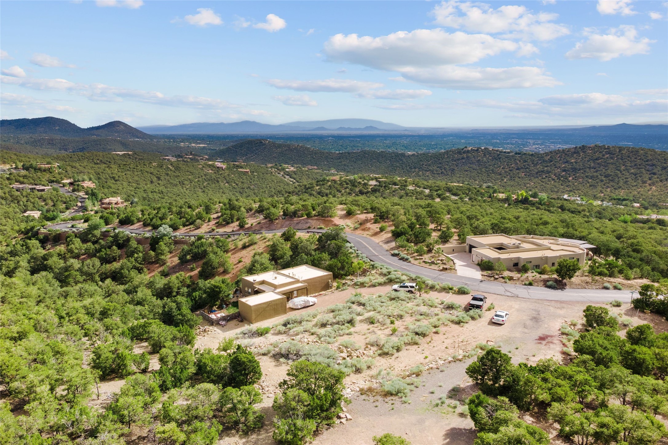 The second smallest lot in High Summit, being offered together with the smallest lot in High Summit. Relatively flat and buildable with good access. Elevation of 7400 feet allows for an Ortiz/Sandia view corridor AND a Jemez view corridor. Lots 8 and 9 must be purchased together and they each have an 1100sf minimum build size. Owner is in process of combining these two lots at the County. HOA has verbally approved the conjoining and anticipates an 1800-2000sf build. No new building envelope. Setbacks apply.
