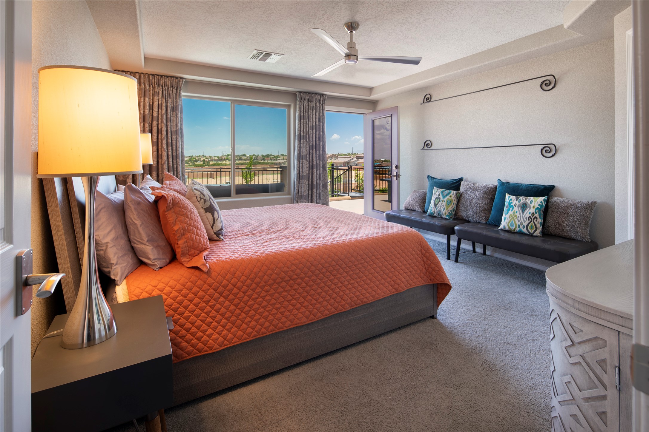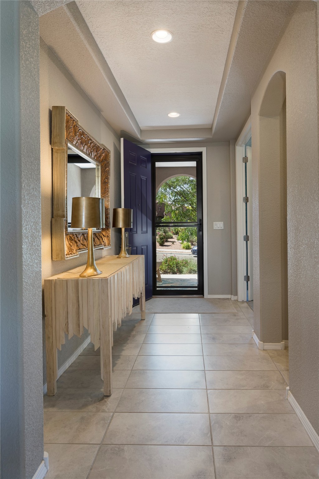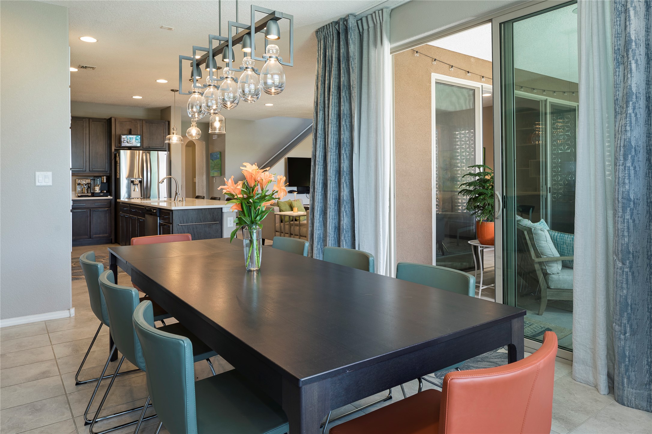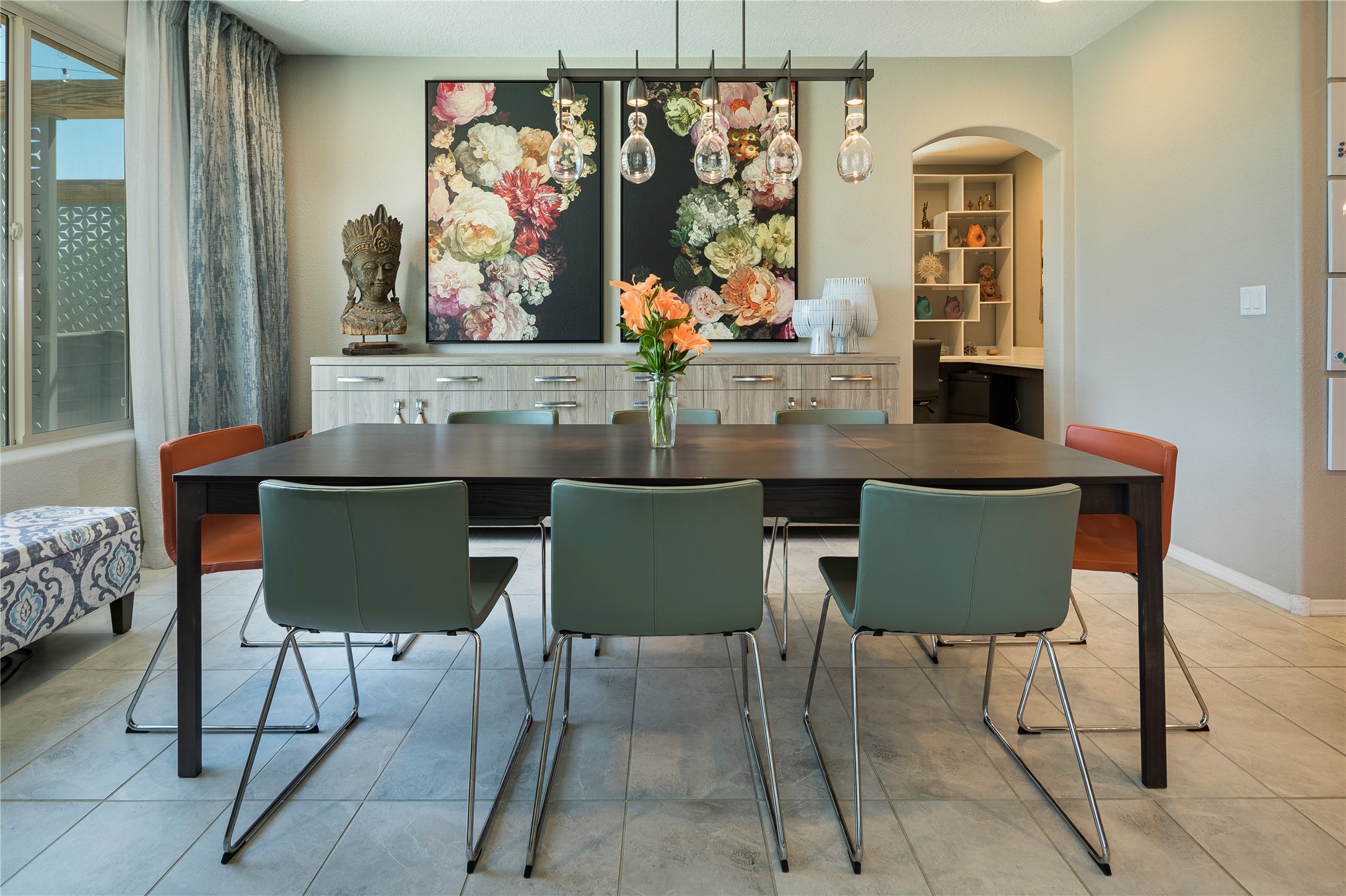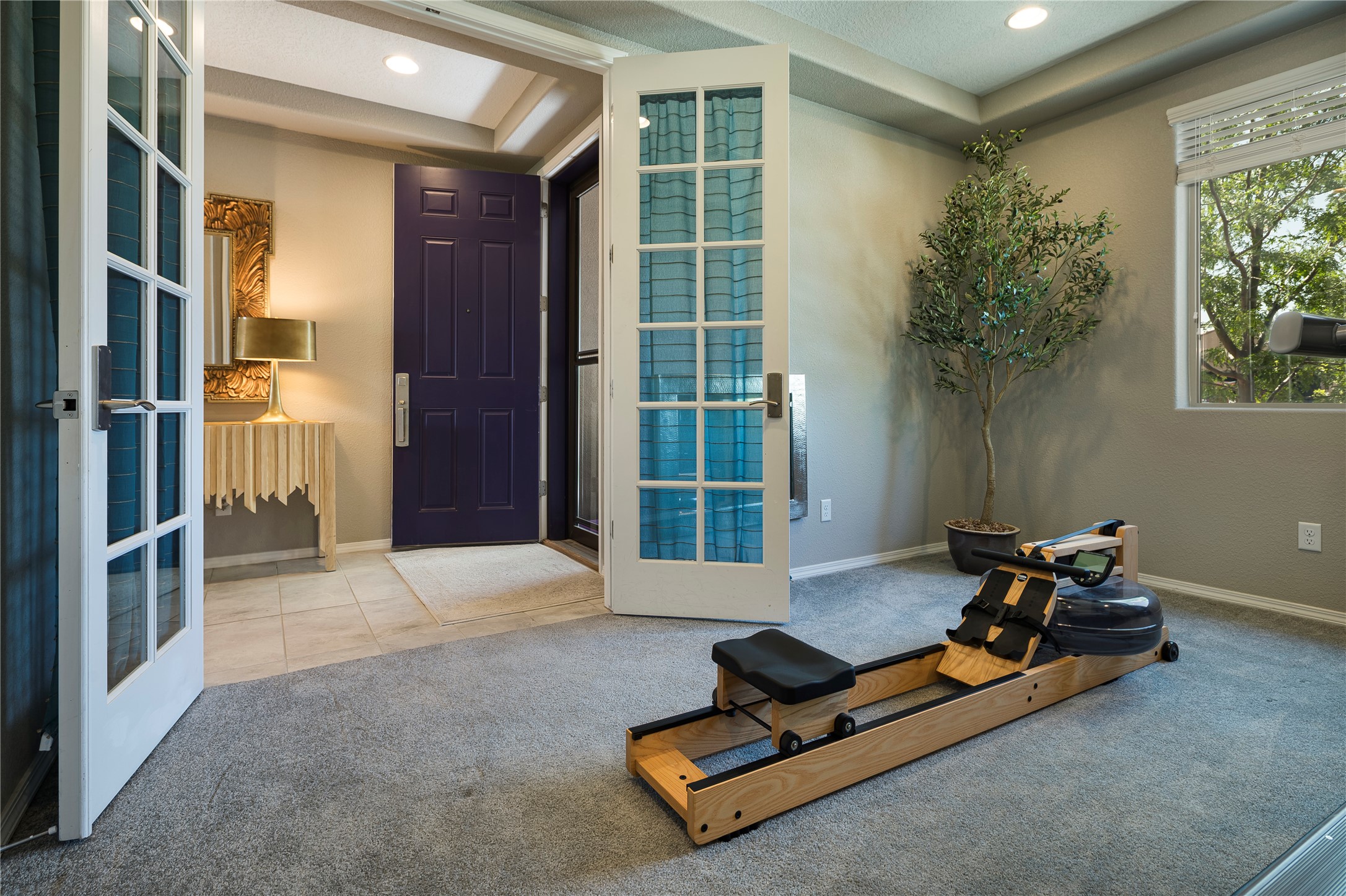 This fine home dazzles under the sure hand of its designer owner. The floorplan is a deft blend of elegance and comfort. Its light, open feel includes defined yet versatile spaces that serve a range of lifestyle needs. On the first floor is a bedroom with ensuite bath. The handsome Cook's Kitchen, with quartz countertops, stainless steel appliances, and adjacent Butler's pantry/office, overlooks the chic living area, with fireplace. The dining room feels at once spacious and intimate. Both living and dining rooms open to the splendid backyard with arching grape vines, a trellised wall of trumpet vines, sprays of ornamental grass, a stretch of turf, raised beds and a newer hot tub. A spiral staircase connects this enchanting oasis with the upper deck, off the Primary Bedroom, with long range views of several mountain ranges. The second story's flexible layout includes a large den or office, a sizable craft room, and two additional bedrooms. Come experience this inviting Las Soleras home, conveniently located close to Presbyterian Hospital, shopping, restaurants and major transportation routes.