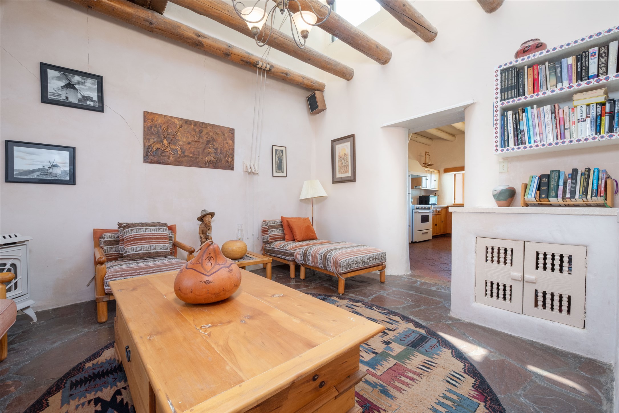 La Cienega Vineyard Estate - Four Parcels with Adobe Homes, Studios & Acequia Water Rights. Discover a unique opportunity in the heart of historic La Cienega--a vibrant 6-acre vineyard comprising four separately deeded parcels, rich with potential and authentic New Mexico charm. Anchored by two traditional adobe homes, the estate is steeped in regional character and surrounded by natural beauty. The main house features 3 bedrooms, 2 baths, and showcases classic Santa Fe style with brick floors, vigas, and elegant touches throughout. The adobe main residence is a quintessential historic home in the La Cienega Village. The second adobe home offers additional living space or rental income potential. In addition to the homes, the property includes a partially completed two-story apartment--ready for your finishing touches--and several studio structures that could be transformed into creative workspaces, studios, rentals or other uses associated with the Vineyard. The well-maintained vineyard is nourished by valuable acequia water rights, ensuring sustainable growth and offering agricultural possibilities for wine production, agritourism, or farm-to-table ventures. With flexible uses and multiple dwellings already in place, this rare offering is ideal for a variety of uses--live/work, multi-generational living, a creative retreat, or a boutique vineyard business. Properties with this combination of history, water, and opportunity are seldom available in La Cienega