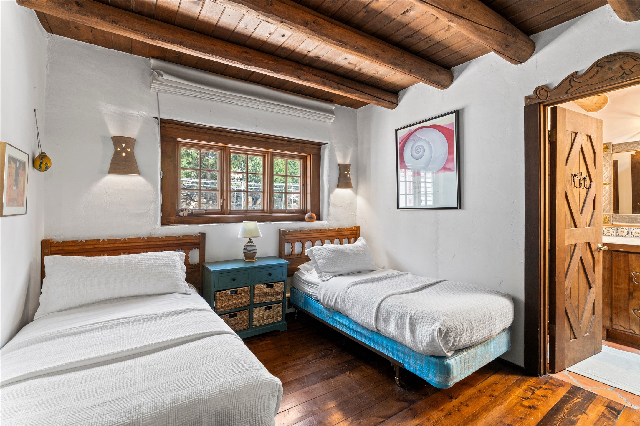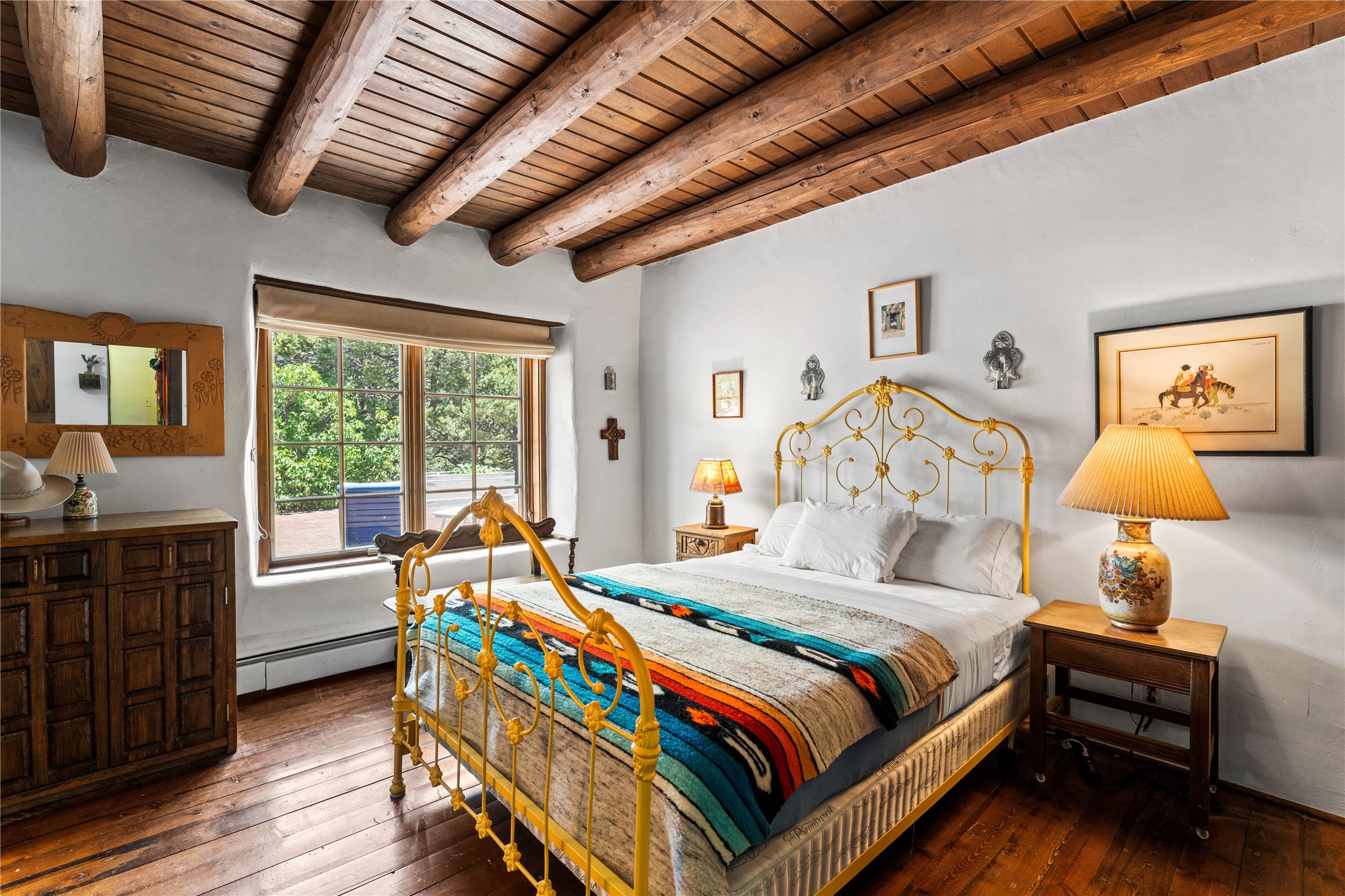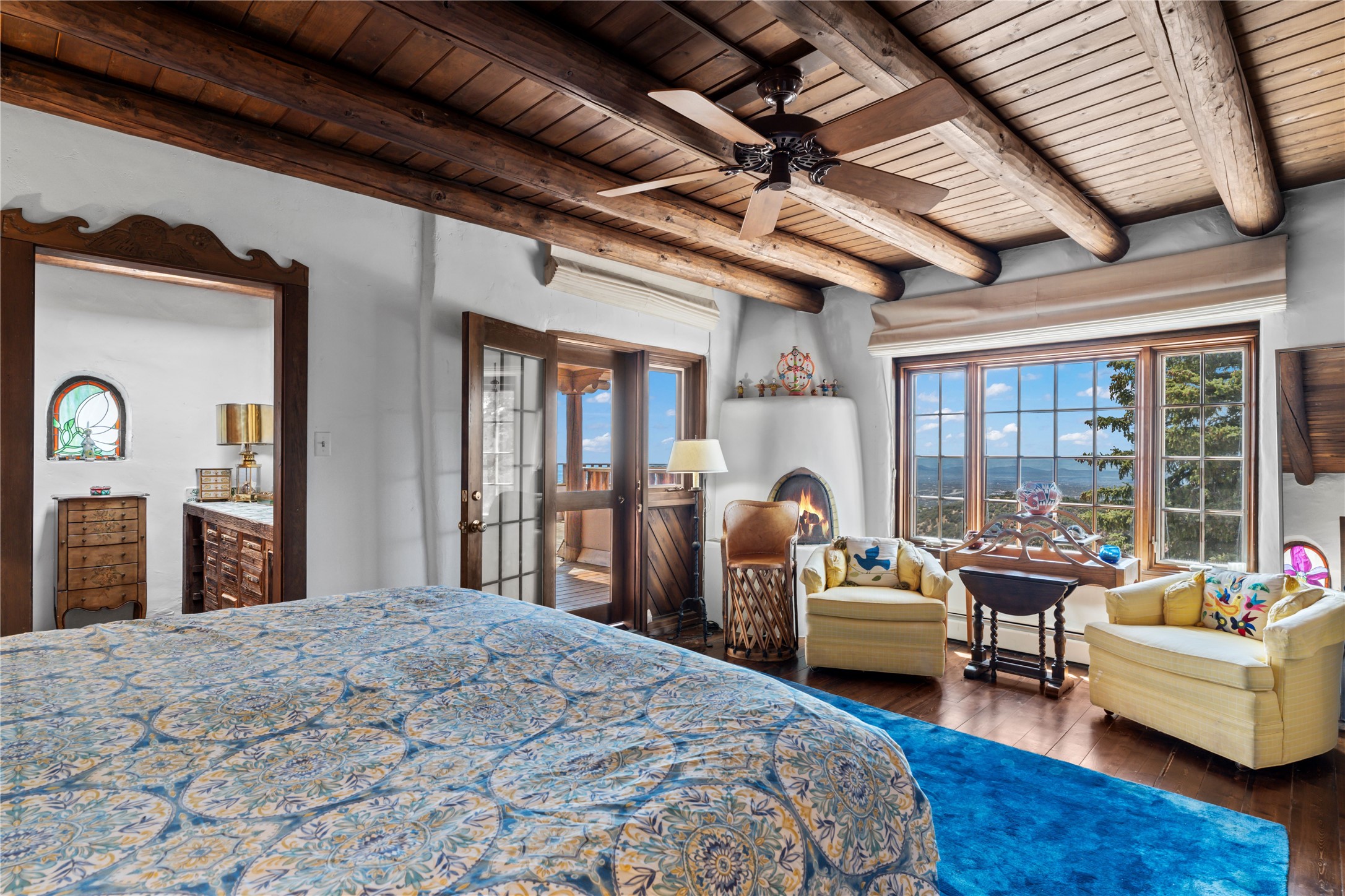 Authentic Vintage Santa Fe Retreat | Ideal Short-Term Rental or Mountain EscapePerched high in the Sangre de Cristo foothills, just above and across from 10,000 Waves, this iconic Santa Fe mountain home captures the magic of a Santa Fe lodge with all the feel-good vibes on an acre of pine-studded, sought-after Hyde Park Estates, perfectly situated between the heart of downtown Santa Fe and Ski Santa Fe--an ideal base for outdoor adventures, summer camp-style gatherings, or cozy winter lodge getaways.The best views in Hyde Park Estates, classic thick adobe walls, arched doorways, and hand-carved woodwork create an experiential ambiance.Expansive windows and multiple decks open to panoramic mountain views stretching all the way to Colorado. Watch dramatic storms roll in or unwind to vibrant sunsets. Inside, the flexible floor plan features four bedrooms and three baths, designed for both privacy and connection. Multiple kiva fireplaces, a formal living and dining area, and a penthouse-style owner's suite with sweeping northern views make this home a true mountain sanctuary. Nearly every room opens to outdoor spaces, inviting a seamless indoor-outdoor lifestyle--perfect for entertaining, yoga mornings, or quiet reflection by the fire.The spacious brick patio sets the scene for outdoor dining, stargazing, or a future outdoor kitchen. Mature native landscaping, and stone walls abound. For garden lovers, La Casa de la Familia is a paradise. Enjoy a thriving vegetable and flower garden, producing everything from tomatoes and basil to lilacs and sunflowers. Mature pion trees yield fresh pine nuts, while the automatic irrigation system keeps it all flourishing with ease. With updated appliances, disciplined maintenance, and solar electricity, whether you're looking for a short-term rental investment, a private family retreat, or a base camp for adventure, 2137 Paseo Ponderosa offers an opportunity to own a piece of Santa Fe's mountain magic. Check out the video tour!