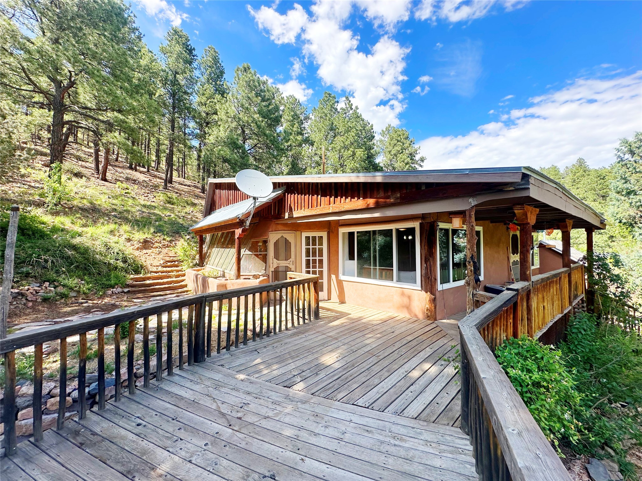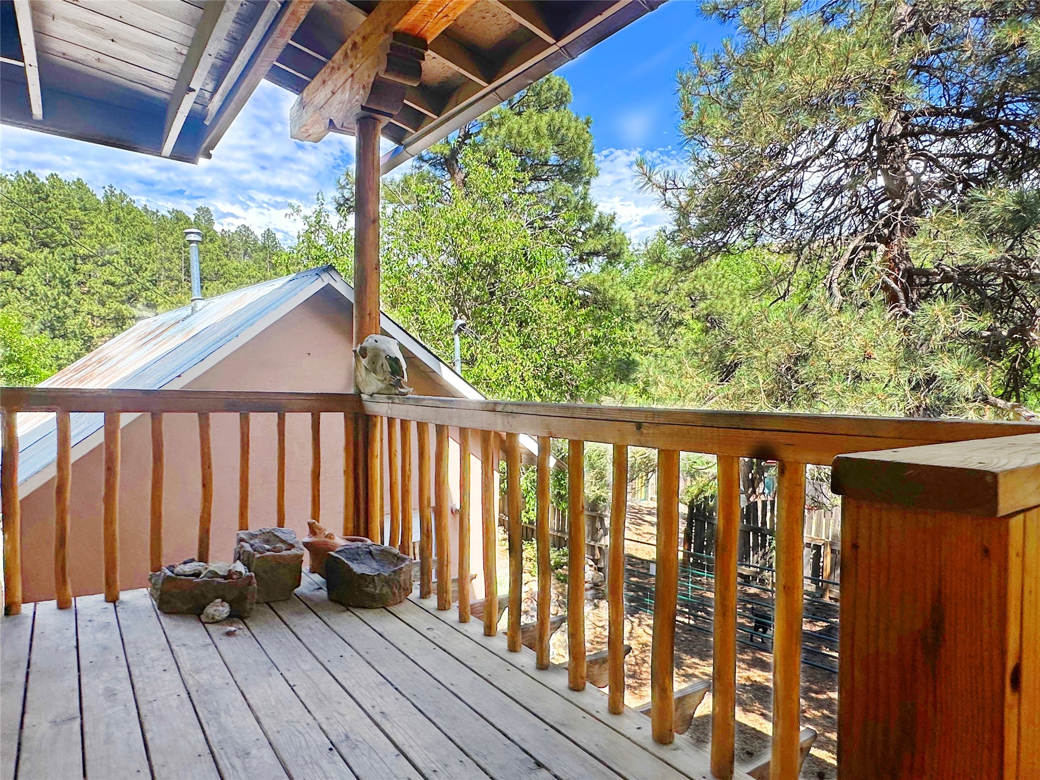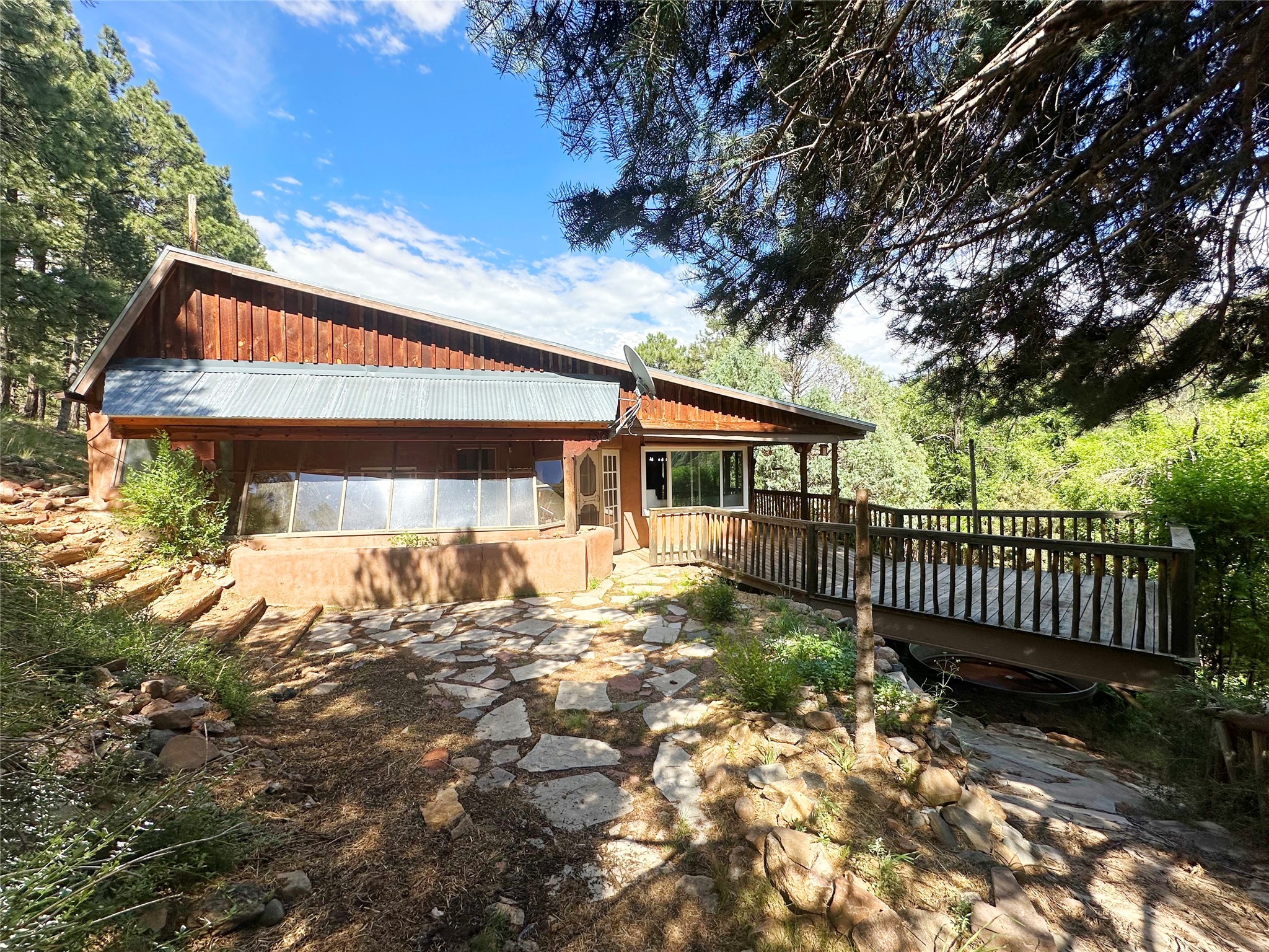 Located on 1.3 wooded acres in Montezuma, just minutes from Las Vegas, this unique mountain retreat offers views of the dramatic Montezuma rock face and easy access to nearby hot springs. The 2-bedroom, 2-bathroom home is filled with charm and character, featuring hardwood floors, three fireplaces--including one in the guest room--and abundant natural light throughout. The primary suite includes an ensuite bathroom and private balcony. A sun-filled solarium offers the perfect space for year-round gardening or a peaceful reading nook. The spacious, finished basement includes a rock-faced fireplace, full bathroom (additional), laundry room, and two bonus rooms--not included in the bedroom count due to ceiling height and egress--but ideal for an office, studio, or craft-room. A separate exterior entrance provides convenience of access. Property has a wraparound deck and an elevated view deck that takes full advantage of the breathtaking natural scenery. The surrounding trees offer privacy and a true sense of seclusion, while still being just minutes from the heart of Las Vegas. A detached workshop adds to the property's functionality, whether you're a hobbyist, artist, or need space for projects. -Recently appraised at 360K (April 2025)- -Assumable VA Loan at 2.875%-