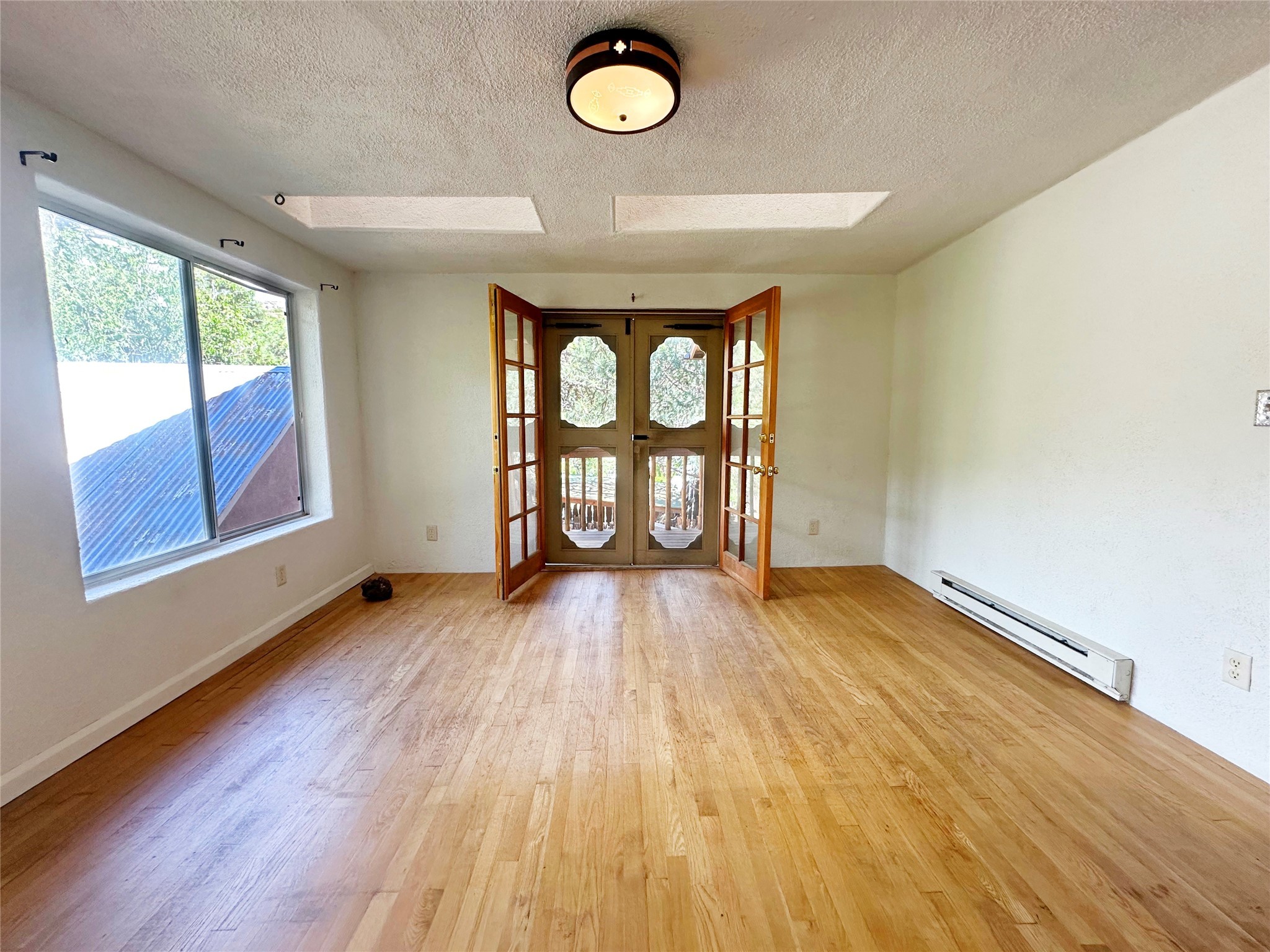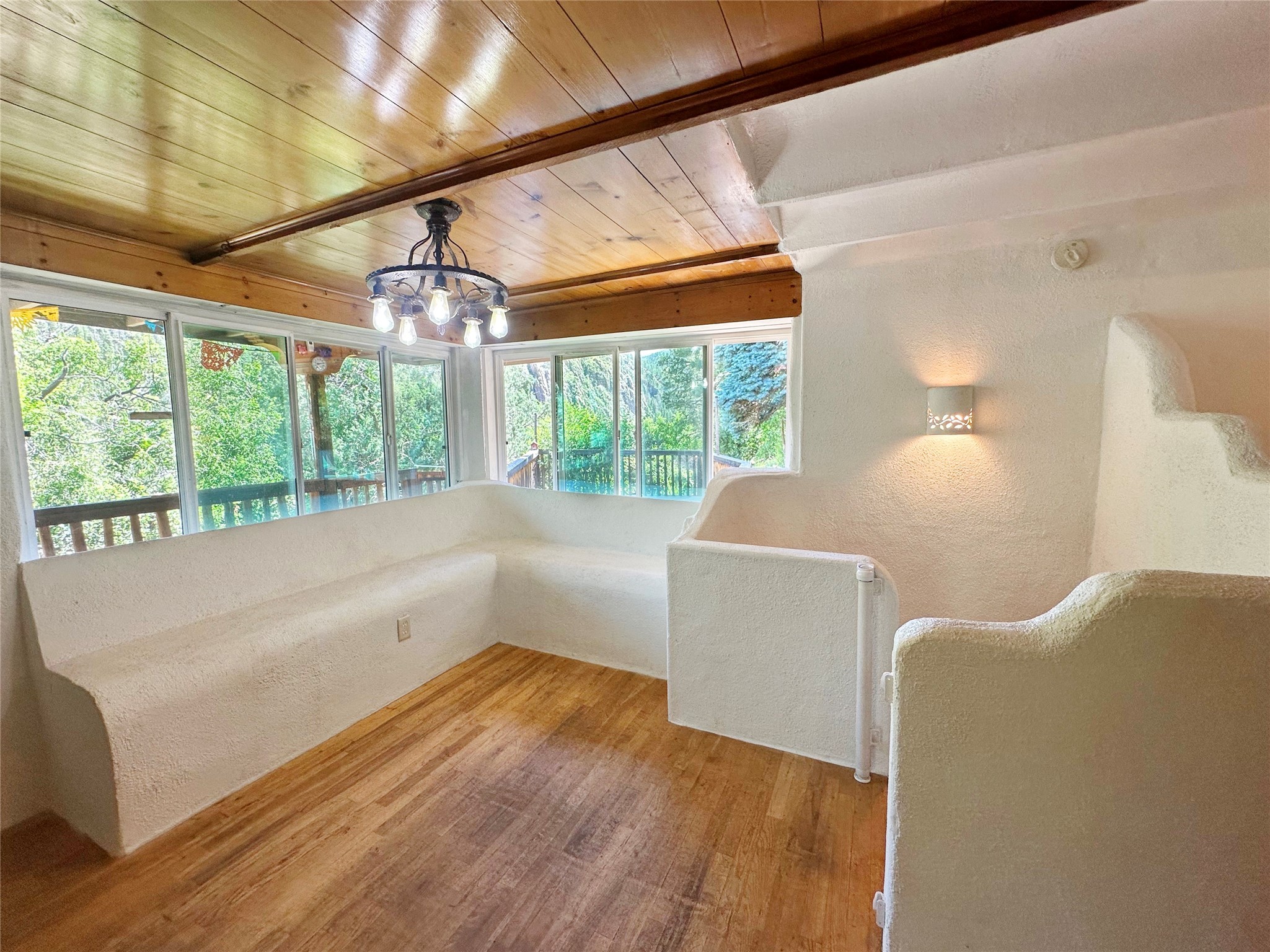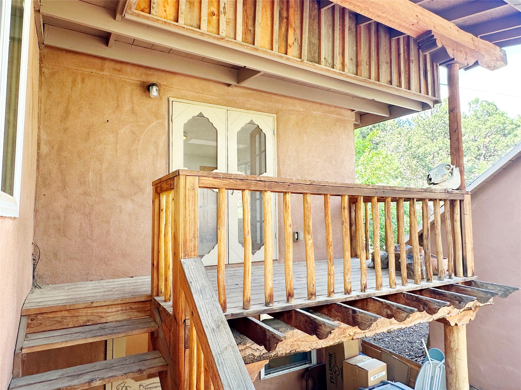 Located on 1.3 wooded acres in Montezuma, just minutes from Las Vegas, this unique mountain retreat offers views of the dramatic Montezuma rock face and easy access to nearby hot springs. The 2-bedroom, 2-bathroom home is filled with charm and character, featuring hardwood floors, three fireplaces--including one in the guest room--and abundant natural light throughout. The primary suite includes an ensuite bathroom and private balcony. A sun-filled solarium offers the perfect space for year-round gardening or a peaceful reading nook. The spacious, finished basement includes a rock-faced fireplace, full bathroom (additional), laundry room, and two bonus rooms--not included in the bedroom count due to ceiling height and egress--but ideal for an office, studio, or craft-room. A separate exterior entrance provides convenience of access. Property has a wraparound deck and an elevated view deck that takes full advantage of the breathtaking natural scenery. The surrounding trees offer privacy and a true sense of seclusion, while still being just minutes from the heart of Las Vegas. A detached workshop adds to the property's functionality, whether you're a hobbyist, artist, or need space for projects. -Recently appraised at 360K (April 2025)- -Assumable VA Loan at 2.875%-
