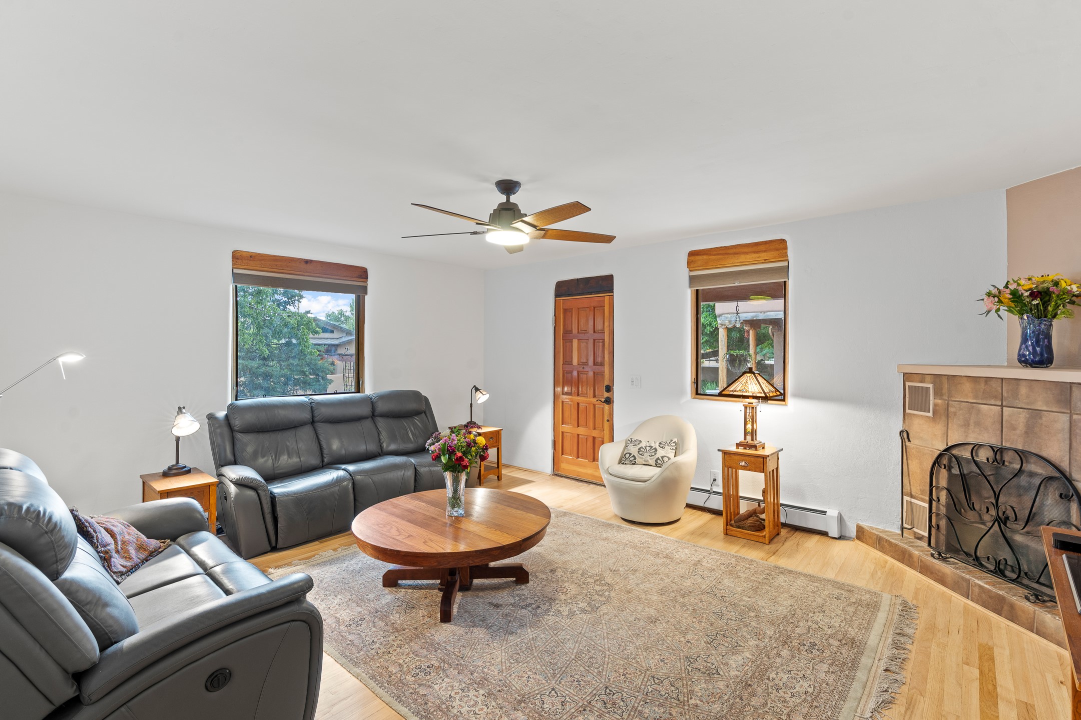 ****Owners may carry with 25% down @ 4.5% P&I, for a monthly payment of $2,853.09 + Plus insurance****Tucked away on a quiet cul-de-sac just behind Whole Foods and mere moments from the vibrant Railyard District and historic Downtown Santa Fe, this inviting 2-bedroom, 1-bath home offers the ideal blend of comfort, character, and convenience. Inside, you'll find gleaming wood floors, and Pella windows that fill the space with natural light. The spacious laundry room offers versatility as a home office or creative studio, perfect for modern living. Enjoy the best of Santa Fe's outdoor lifestyle with both front and back yards--perfect for gardening, relaxing, or entertaining. A detached garage provides additional storage or workspace. High Efficiency boiler and tankless water heater for energy-efficient, on-demand comfort, and a roof under warranty through October 2028. Driveway is shared complete with recorded easement and maintenance agreement. Zoned for the sought-after Wood Gormley school district. This home is a rare opportunity in one of Santa Fe's most desirable and walkable neighborhoods. The house appears to be permit eligible for an STR permit subject to change should someone new apply.